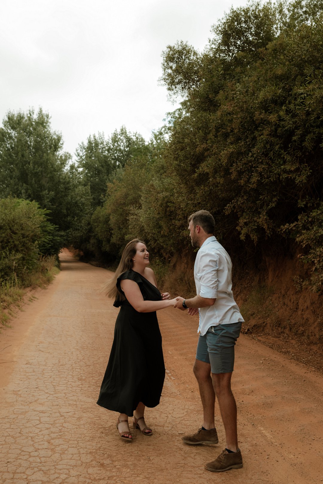 Die ligging vir Mark en Anke se sessie het ’n romantiese atmosfeer geskep. Ons is veral mal oor die ou grondpad, iets wat diep in ’n Afrikaner se hart lê. Die bos het ’n avontuurlike element bygevoeg, terwyl ’n klein tuintjie met pragtige blomme daardie dromerige, sprokies gevoel gegee het.