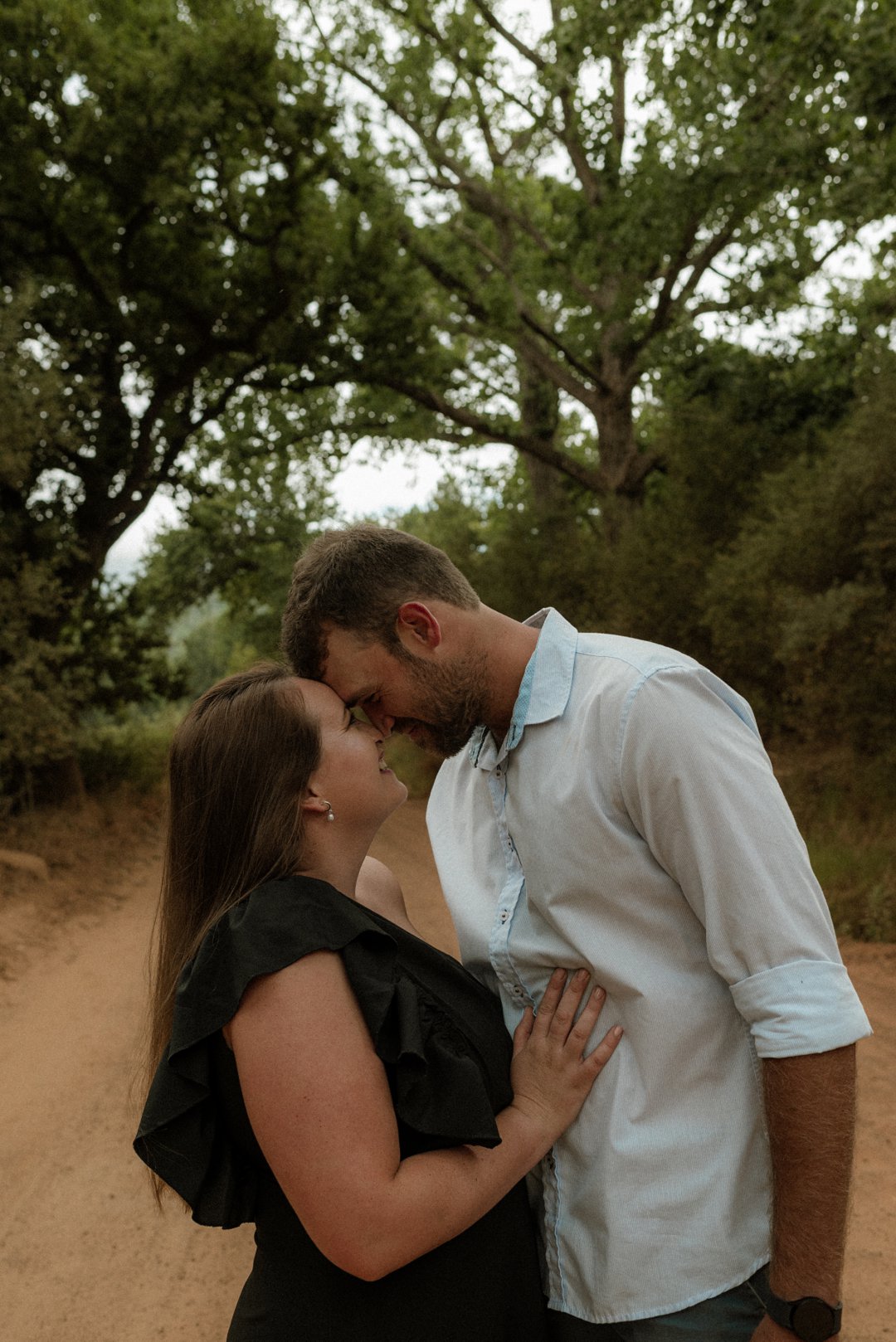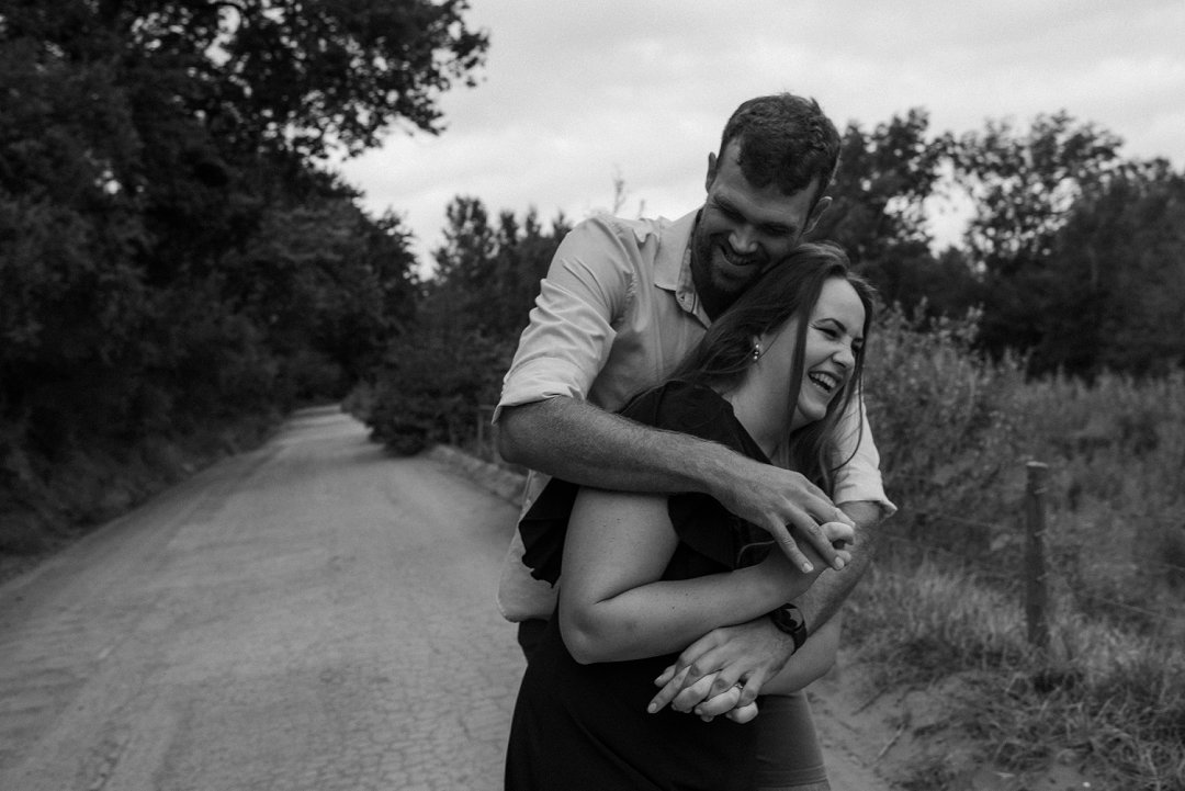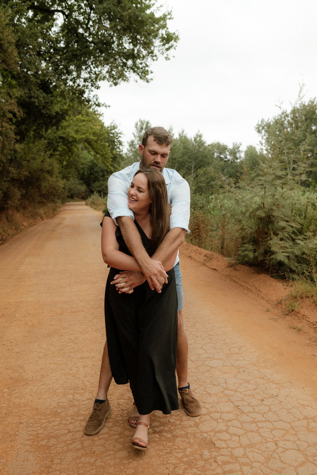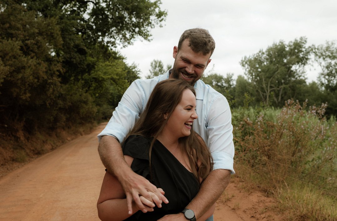 Die ligging vir Mark en Anke se sessie het ’n romantiese atmosfeer geskep. Ons is veral mal oor die ou grondpad, iets wat diep in ’n Afrikaner se hart lê. Die bos het ’n avontuurlike element bygevoeg, terwyl ’n klein tuintjie met pragtige blomme daardie dromerige, sprokies gevoel gegee het.