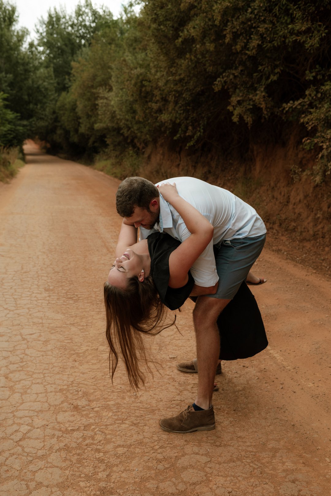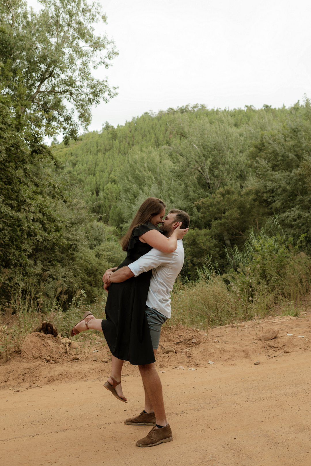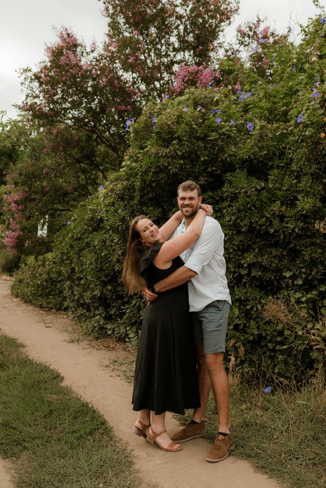 Die ligging vir Mark en Anke se sessie het ’n romantiese atmosfeer geskep. Ons is veral mal oor die ou grondpad, iets wat diep in ’n Afrikaner se hart lê. Die bos het ’n avontuurlike element bygevoeg, terwyl ’n klein tuintjie met pragtige blomme daardie dromerige, sprokies gevoel gegee het.