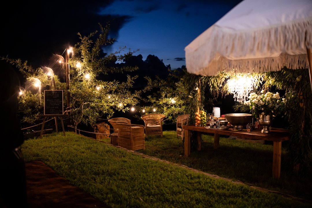 Die trou venue was ‘n stukkie paradys, ‘n plek waar die natuur en liefde saamgevloei het in ‘n betowerende simfonie. Geleë tussen majestueuse berge, omring deur digte groenigheid en die sagte fluistering van die wind, het dit ‘n atmosfeer van vrede en heiligheid geskep. Die smaraggroen kleure van die bruidsgevolg het perfek in die landskap ingevloei. Terwyl die gaste, geklee in aardse kleure van naaswit, grys, houtskool en groen, die natuurlike skoonheid van die omgewing weerspieël het. Die seremonie en onthaal, eenvoudig maar buitengewoon, was ‘n ode aan die suiwerheid van die natuur met wit en groen as die enigste dekor, ‘n simboliese viering van God se skepping en die liefde wat in hierdie idilliese plek gevier is.