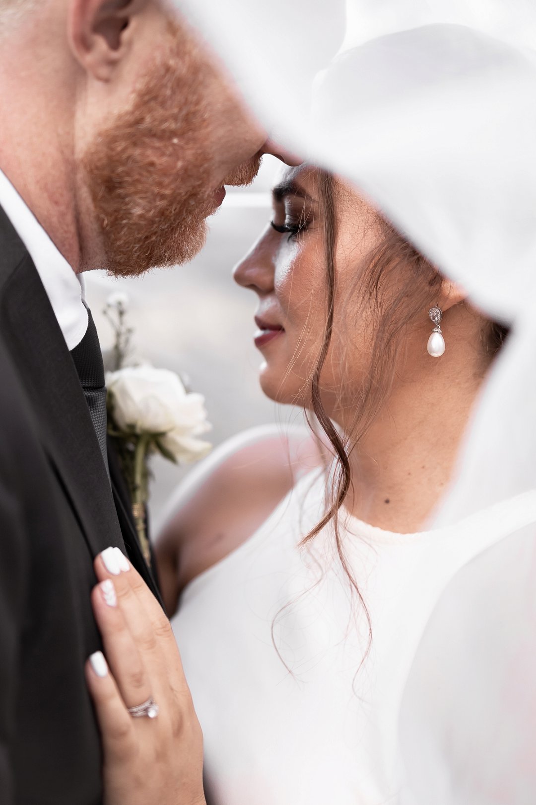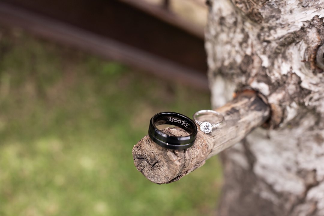 Die troupand dra die erfenis van liefde en toewyding, ‘n kosbare geskenk van Melissa se ma. Hierdie witgoud ring, met sy 18 fyn diamante, het reeds ‘n verhaal van vier dekades se liefde en verbintenis. Nou, as ‘n deel van Ruan en Melissa se reis, bly dit ‘n tydlose simbool van die sterk band wat hulle deel, ‘n herinnering aan die waarde van familie, tradisie en die belofte van ‘n leeftyd saam.