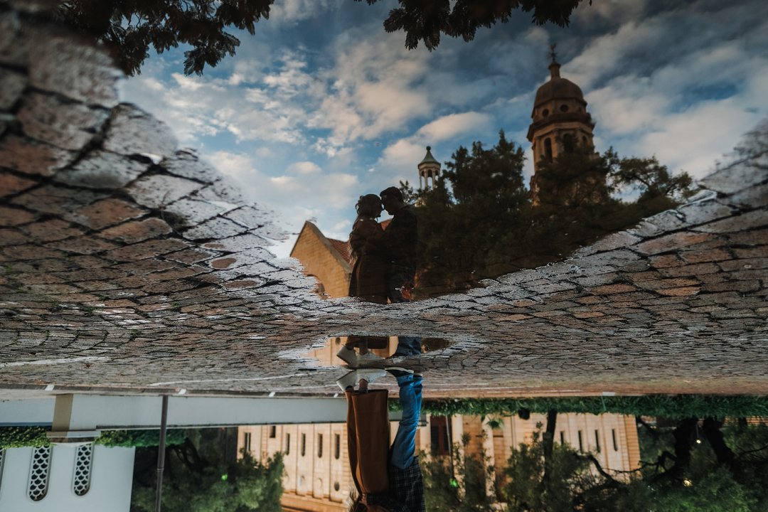 Anje het my toe gekontak en vir my die prentjie verduidelik wat sy sien en dit lyn toe nou presies op met wat ek ervaar het rondom ons troue… Die prentjie wat sy gekry het was ʼn prentjie van hoe die aarde die hemele reflekteer. So het ons gewag toe vir ʼn lekker “Rainy day” sodat ons in die water se refleksie kon fotos neem.