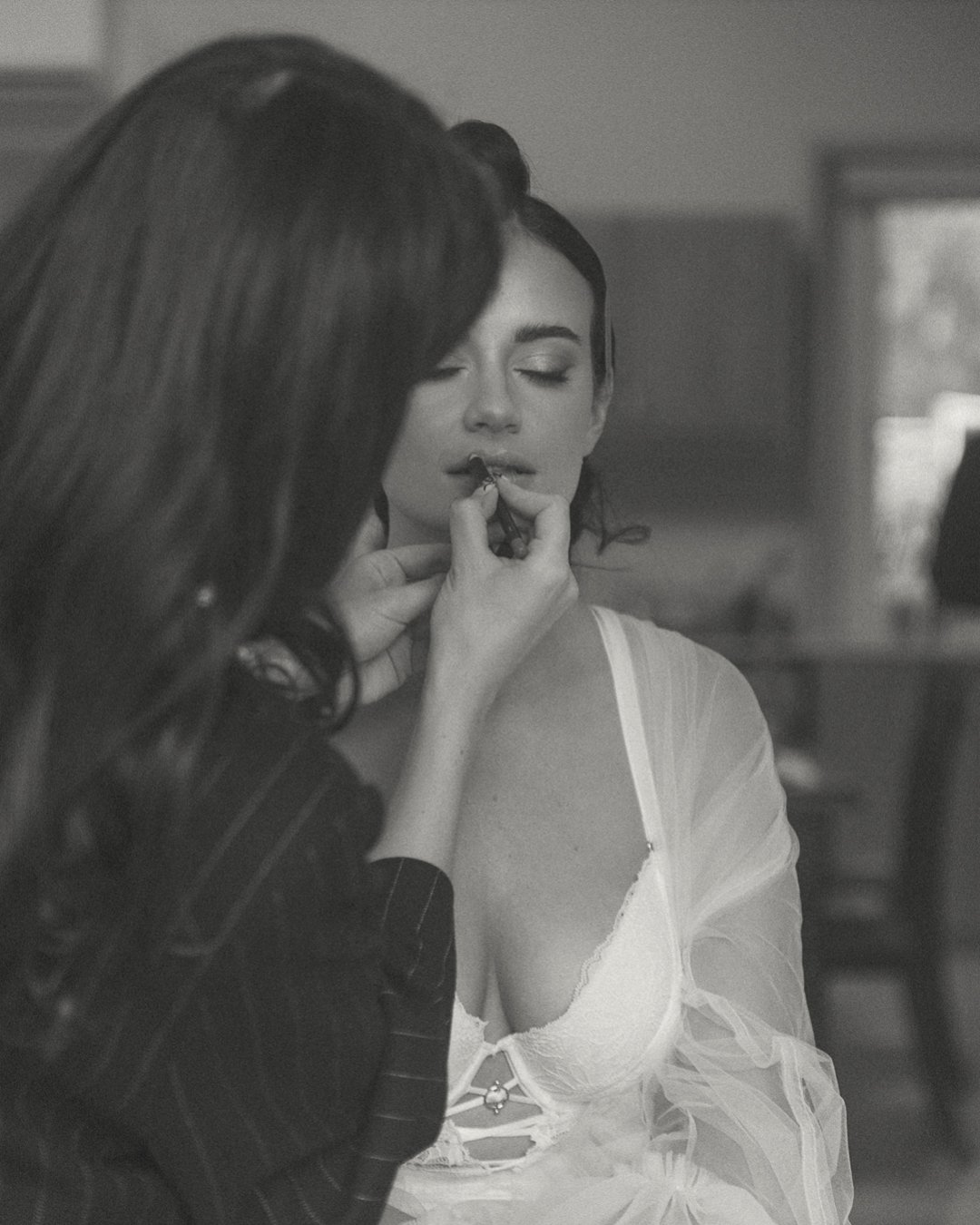 Ek het omtrent 17 rokke aangepas, en teen die einde was ek emosioneel en fisiek uitgeput. Ek het myself altyd in ’n moulose prinsesstyl-rok voorgestel, maar niks het heeltemal reg gevoel nie. Toe, by ons laaste afspraak by Blanco Bridal, het ek die eerste rok van die dag aangetrek, die Aiden-rok, en dadelik in trane uitgebars. Dit was die eerste rok wat werklik soos ek gevoel het.