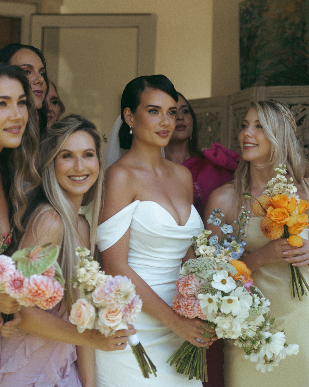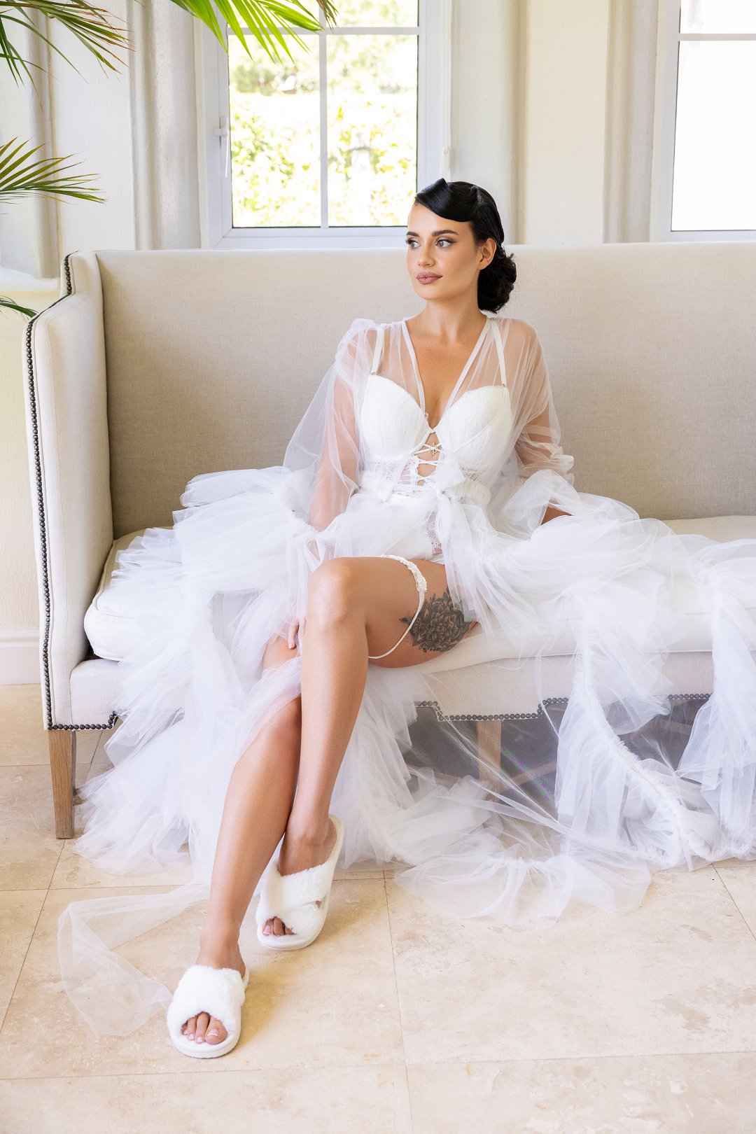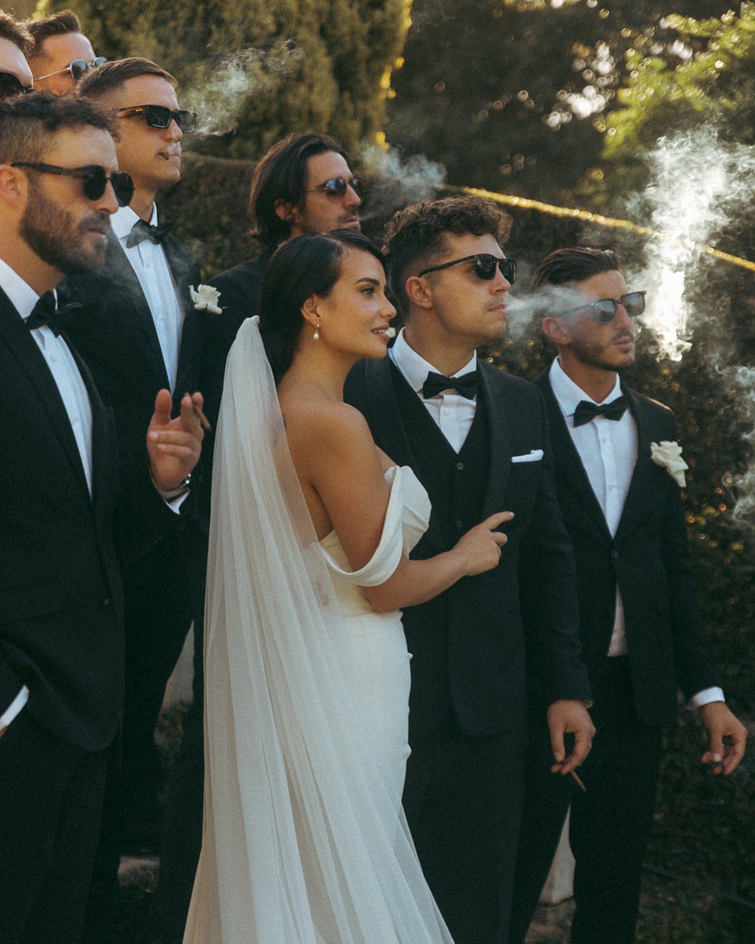 Natuurlik het alles nie seepglad verloop nie. Alexandra moes 17 trourokke aanpas voordat sy dié perfekte een gevind het. Die rok, gemaak van ’n luukse rekbare materiaal, was nie net elegant nie, maar ook ongelooflik gemaklik, vertel sy. Afhaalbare moue,’n gewilde neiging deesdae, het vir haar twee verskillende voorkomste moontlik gemaak.