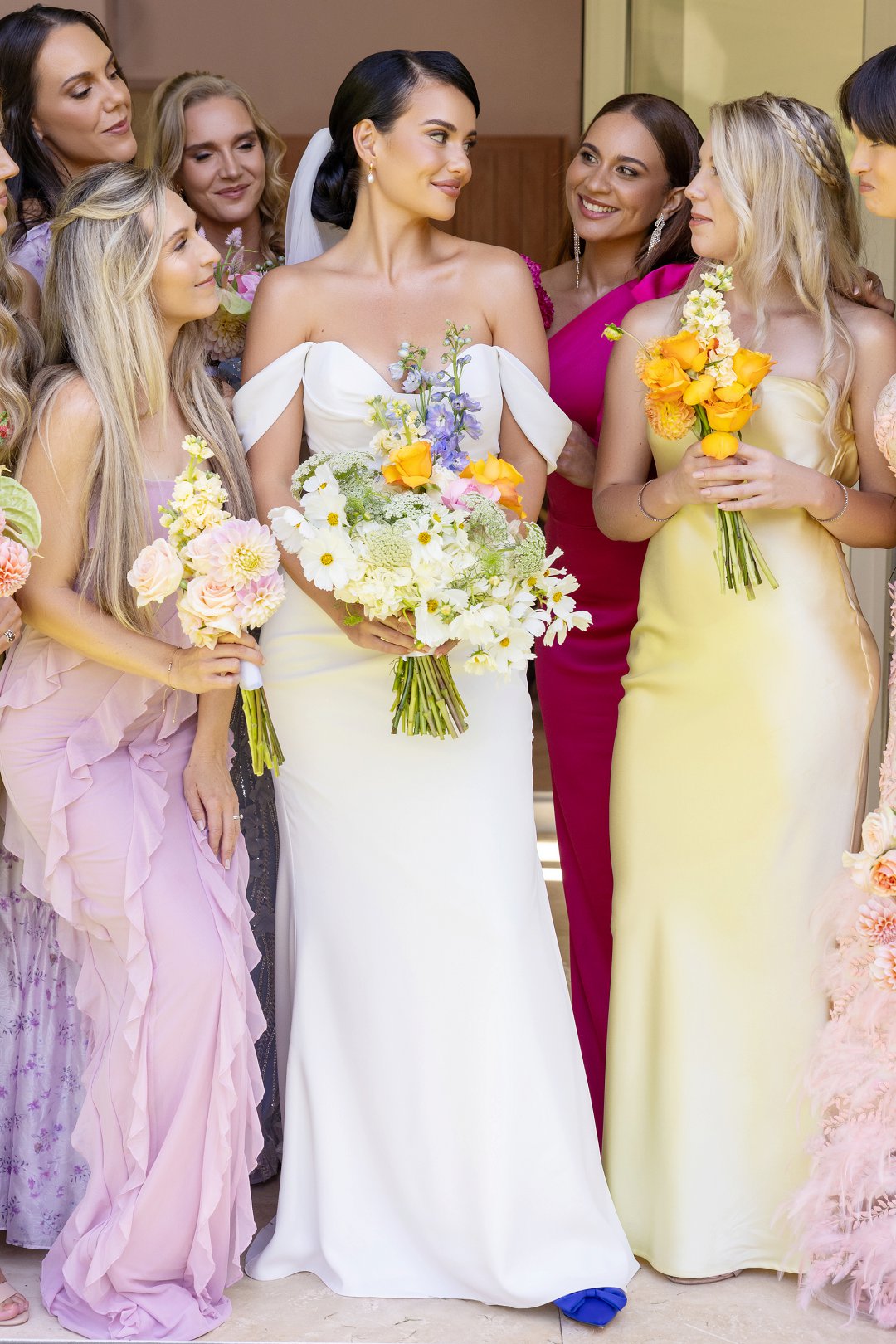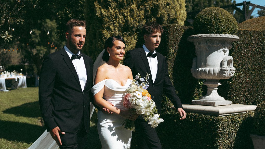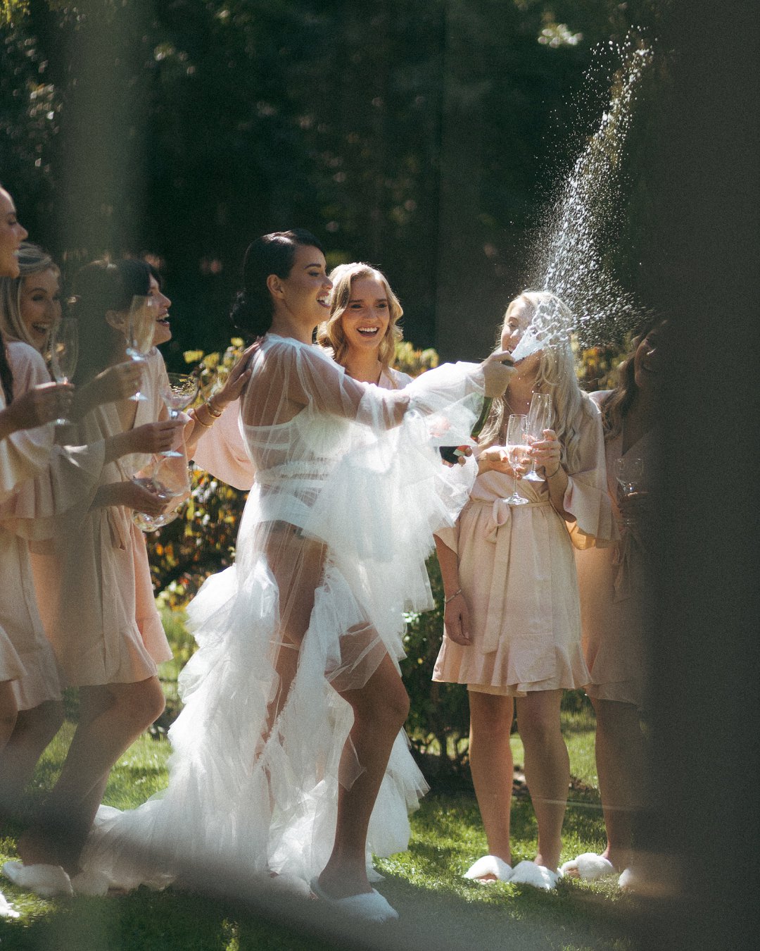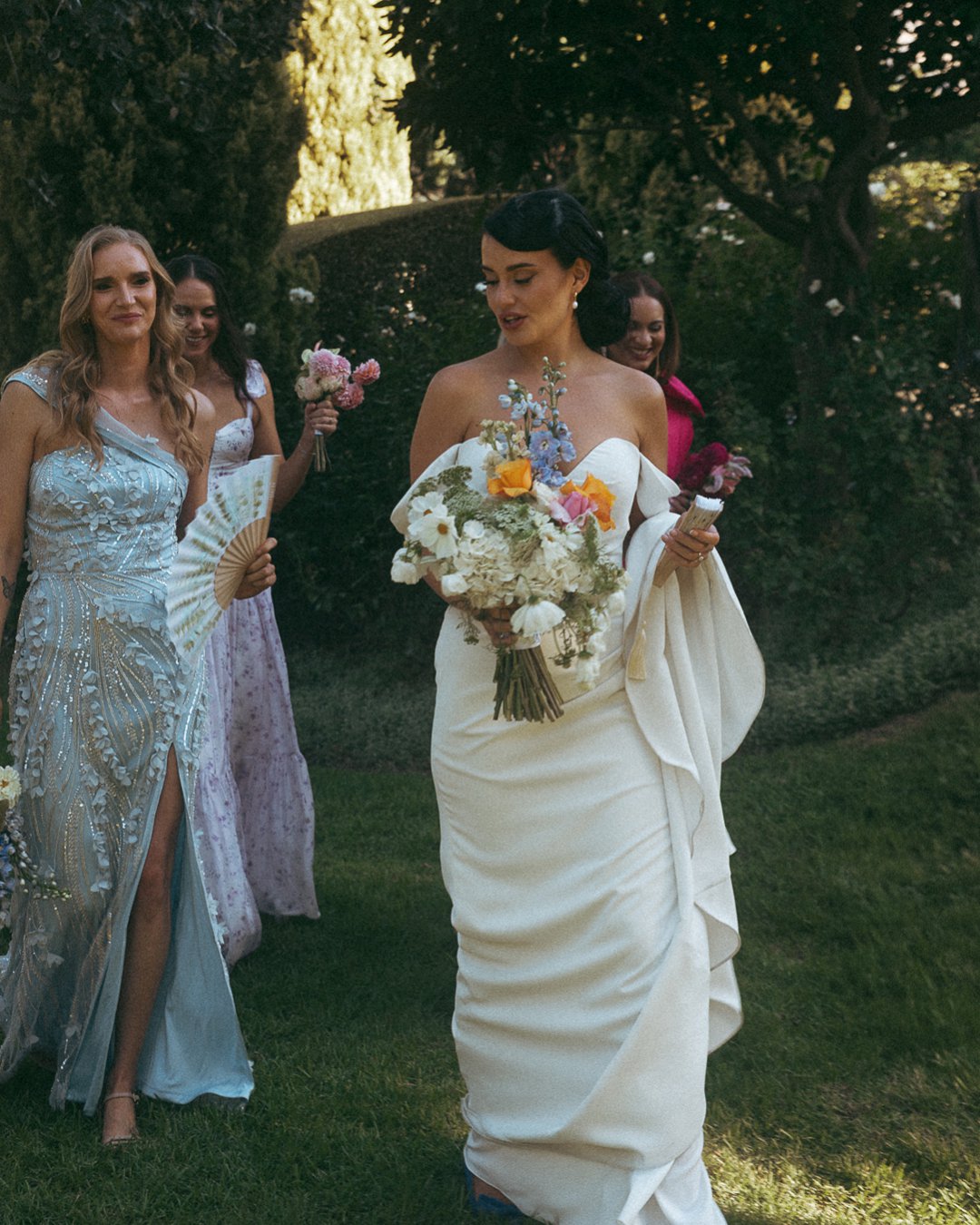 Natuurlik het alles nie seepglad verloop nie. Alexandra moes 17 trourokke aanpas voordat sy dié perfekte een gevind het. Die rok, gemaak van ’n luukse rekbare materiaal, was nie net elegant nie, maar ook ongelooflik gemaklik, vertel sy. Afhaalbare moue,’n gewilde neiging deesdae, het vir haar twee verskillende voorkomste moontlik gemaak.