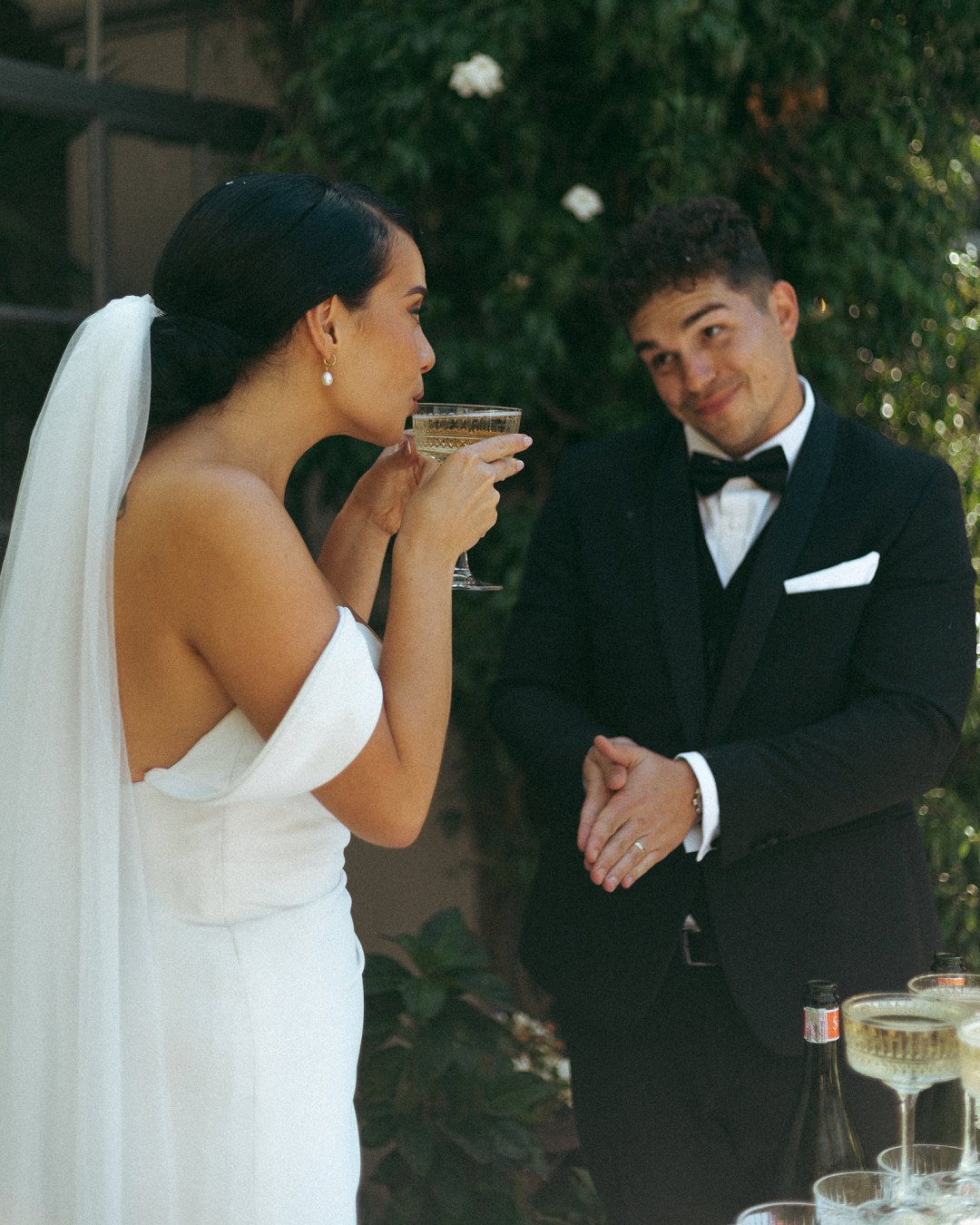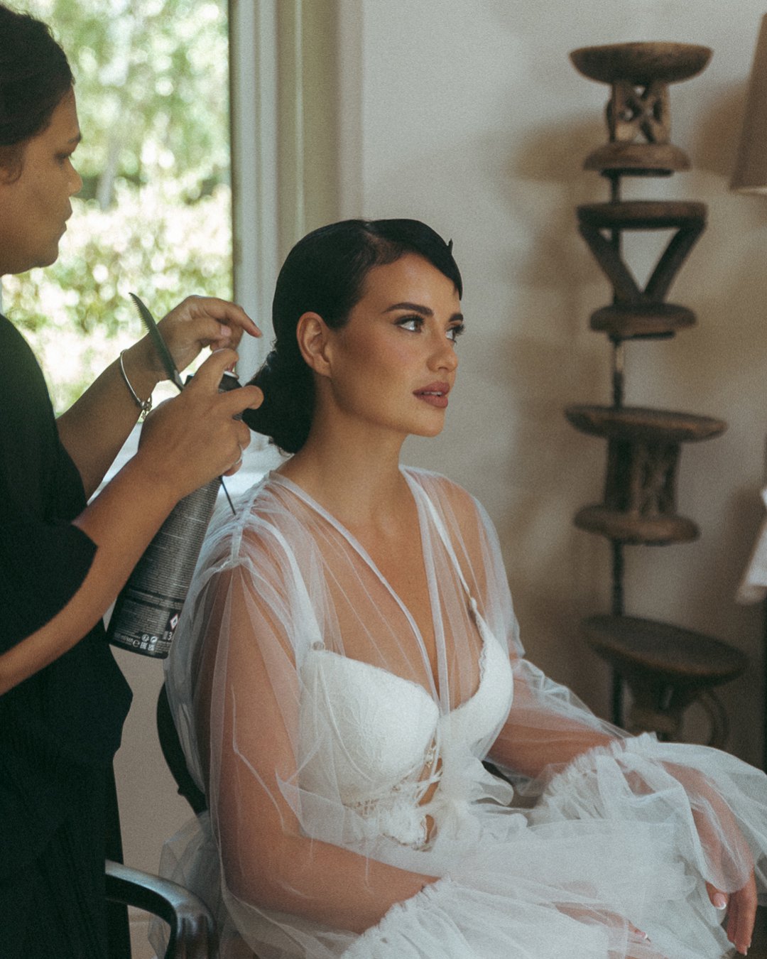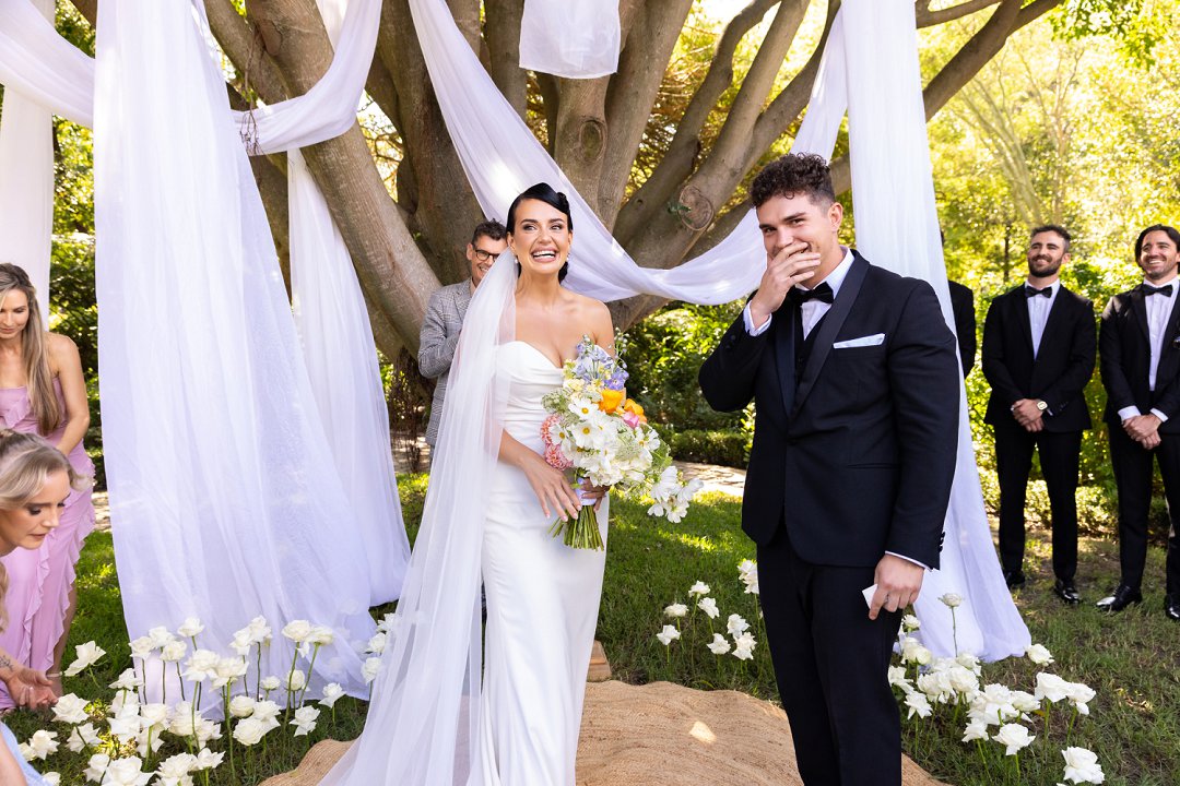 Van die begin af het ons geweet ons wil ’n buitelug troue hê. Ons droom was om onder ’n groot boom te trou, omring deur die natuur, met iets heiligs en gegrond in die hart daarvan. Ons het ’n paar plekke besigtig, maar toe ons Sandstone House in Franschhoek sien, het ons net geweet. Soos jy instap, is daar hierdie ongelooflike boom buite wat ons harte onmiddellik gesteel het, en die venue self het ’n statige herehuis-styl met ’n Toskaanse plattelandse gevoel uitgestraal.