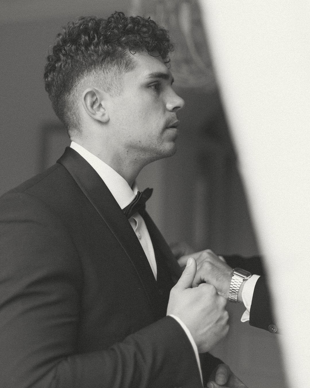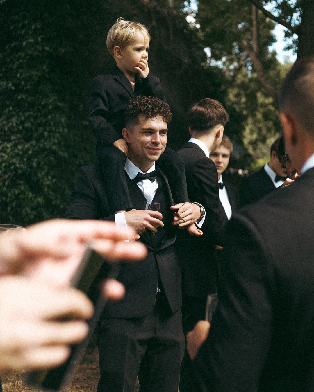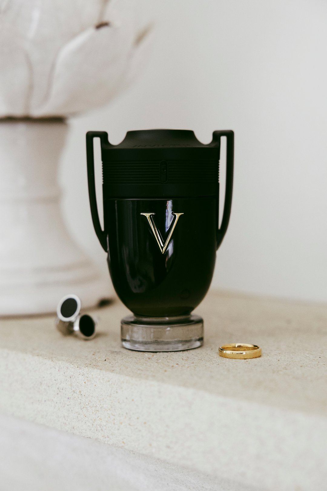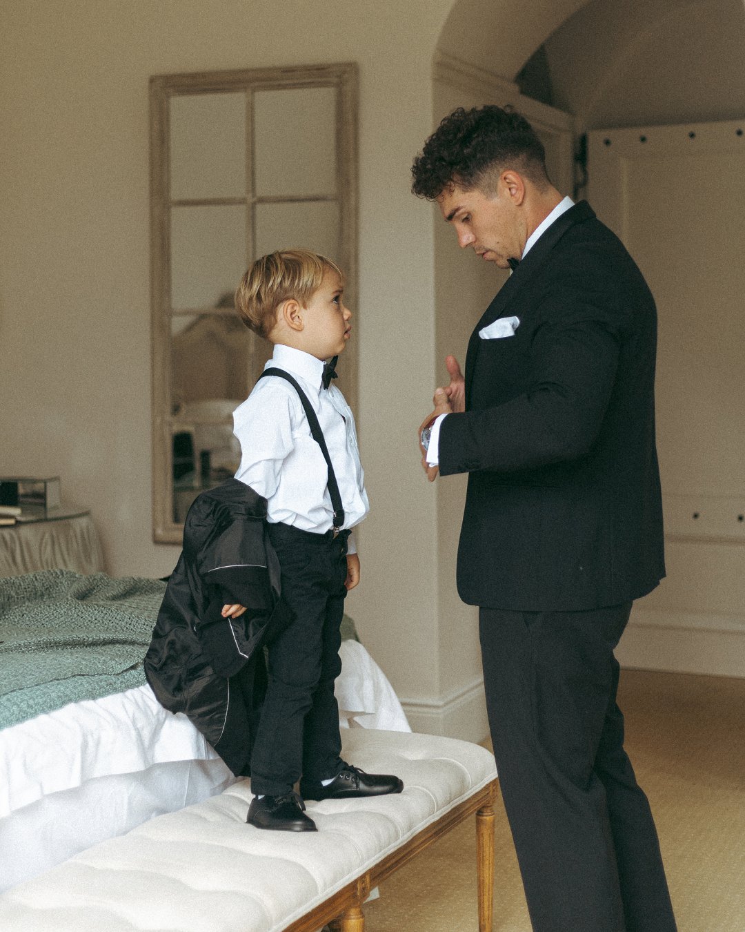 Vir my trouring het ek ’n eenvoudige, gladde goue ring gekies om die verloofring te laat skitter, terwyl dit op die mees subtiele en pragtige manier daarmee saamgaan. Gustaf het ook ’n klassieke goue ring gekies, maar ek het ’n verrassing bygevoeg. Aan die binnekant het ek die woorde “Forever bound, my heart to yours” laat graveer as ’n persoonlike knik na ons liefde en sy gunsteling, Lord of the Rings. Dit is ons stil, klein belofte weggesteek in iets wat hy elke dag sal dra.