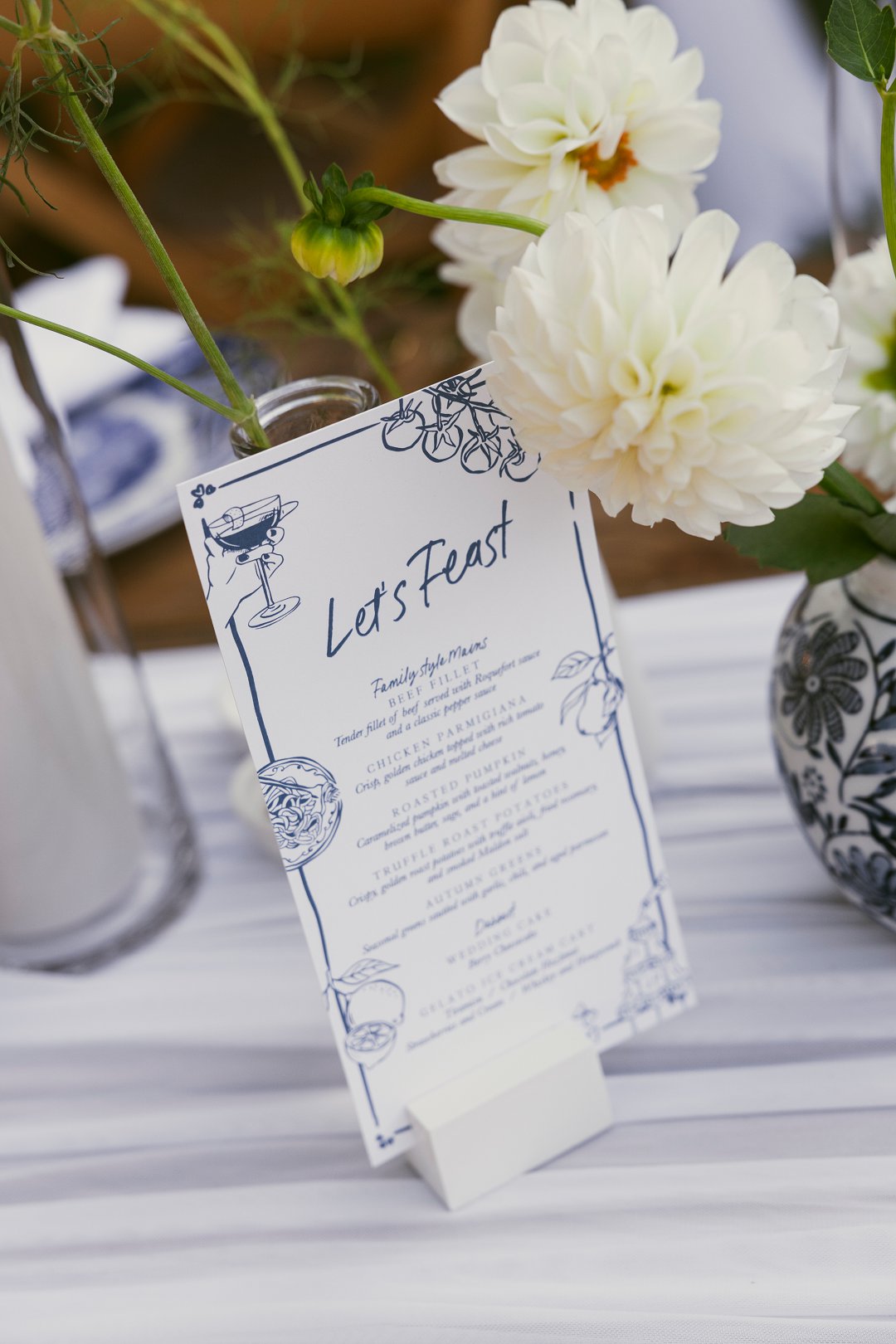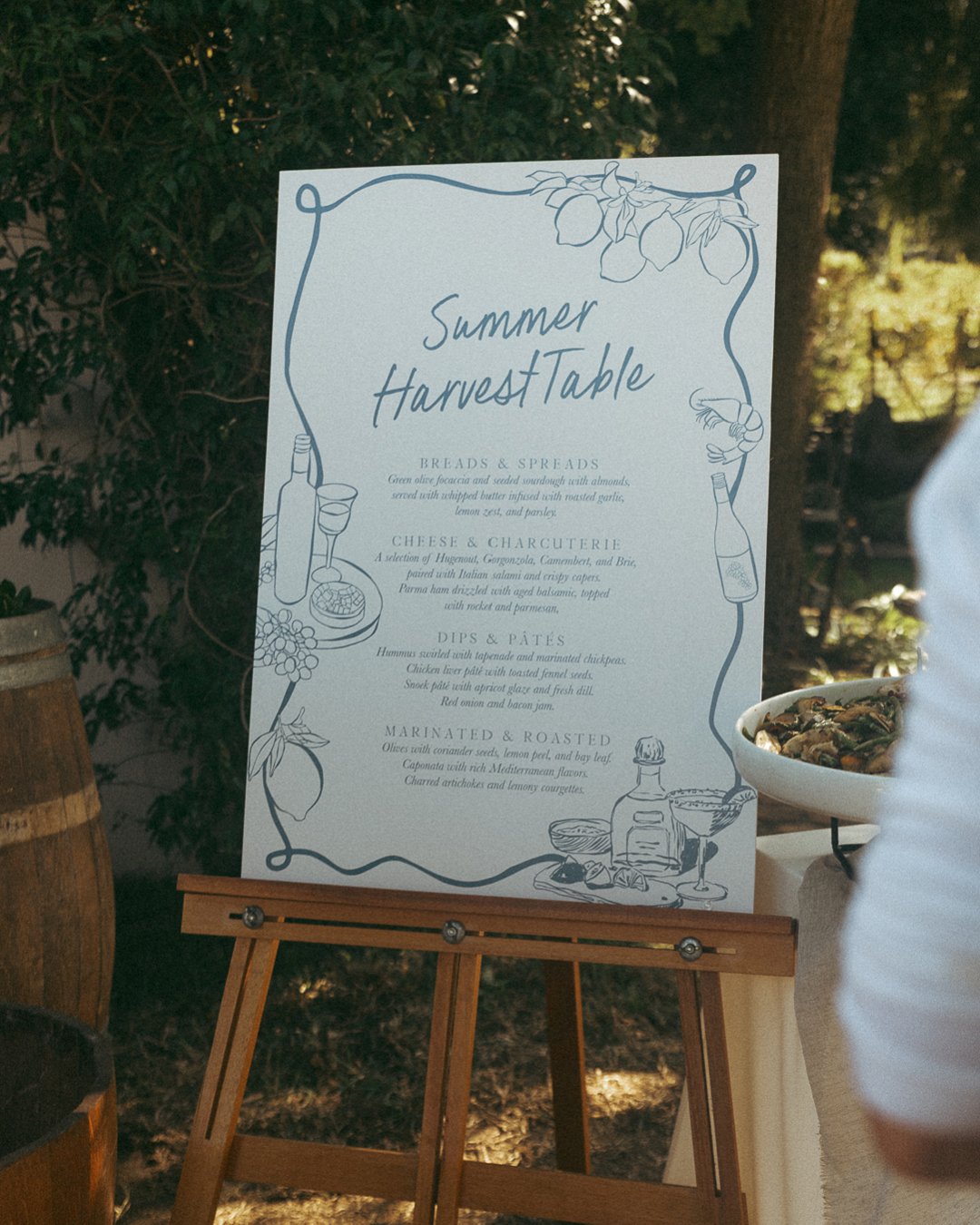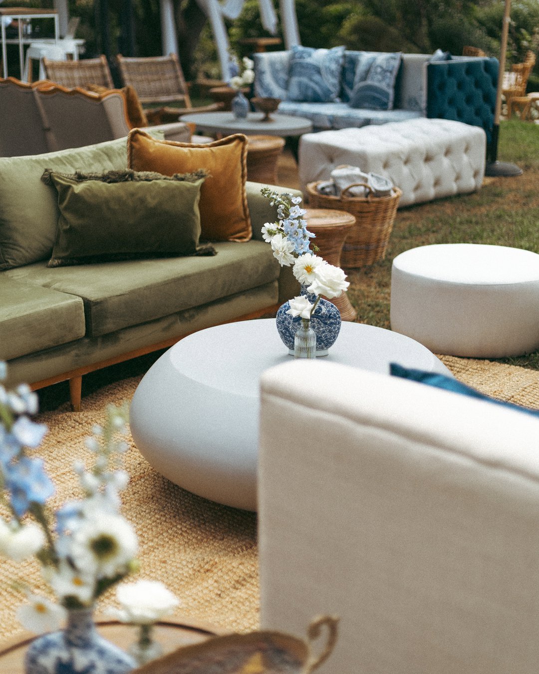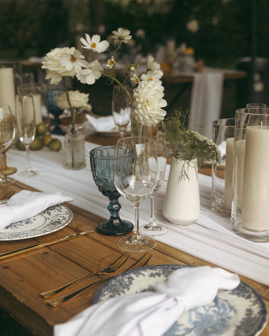 Ek het gekies vir ’n Toskaans-geïnspireerde kleurpalet van Delftsblou aksente, spatsels geel van suurlemoene, aanrakinge van groen, en sagte wit blomme om alles tydloos en vars te hou. Die atmosfeer waarna ons gestreef het was La Dolce Vita elegant, maar ontspanne, vol vreugde en intensie.