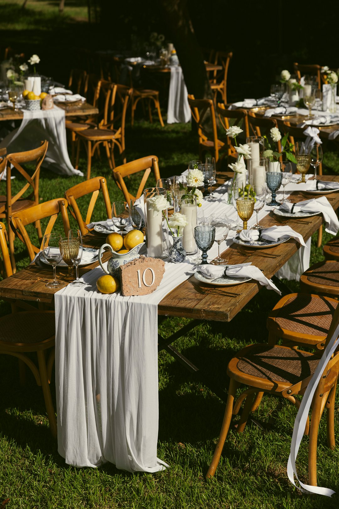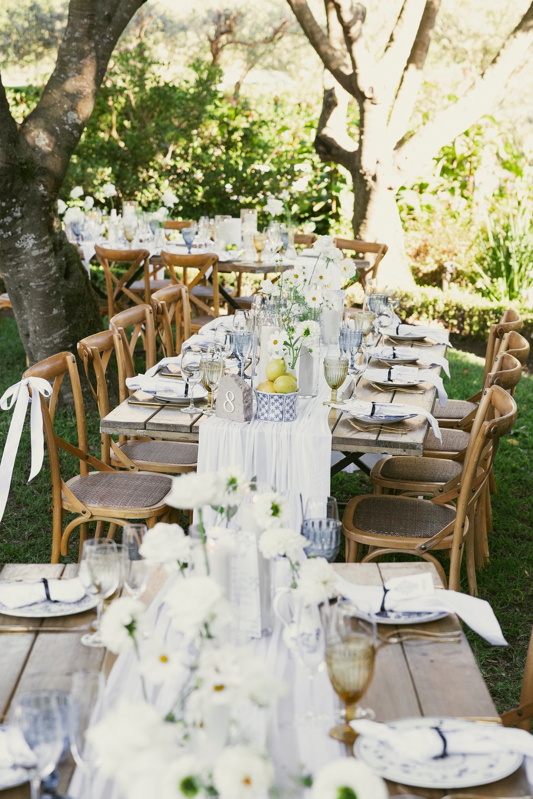 Hul trou kleurpalet is geïnspireer deur Toskaanse prag, met Delftsblou aksente, helder geel vars suurlemoene, en sagte aanrakings van groen. Die styl is afgerond met wit blomme wat ’n tydlose varsheid aan die geheel verleen het.