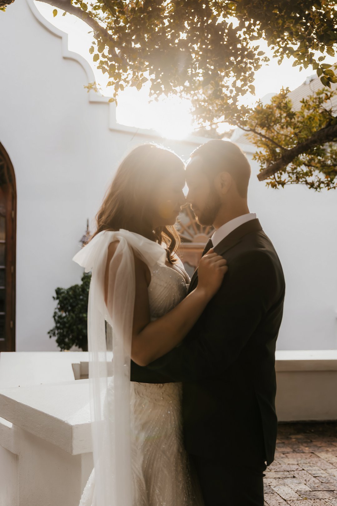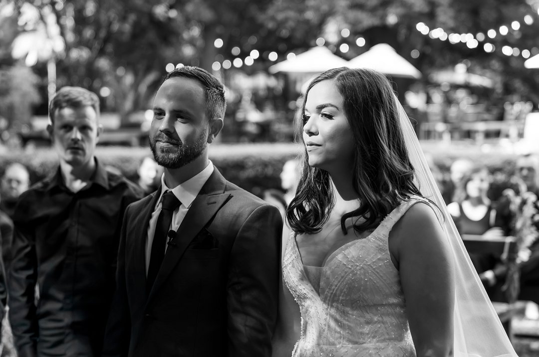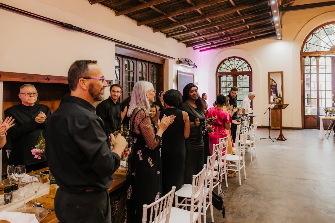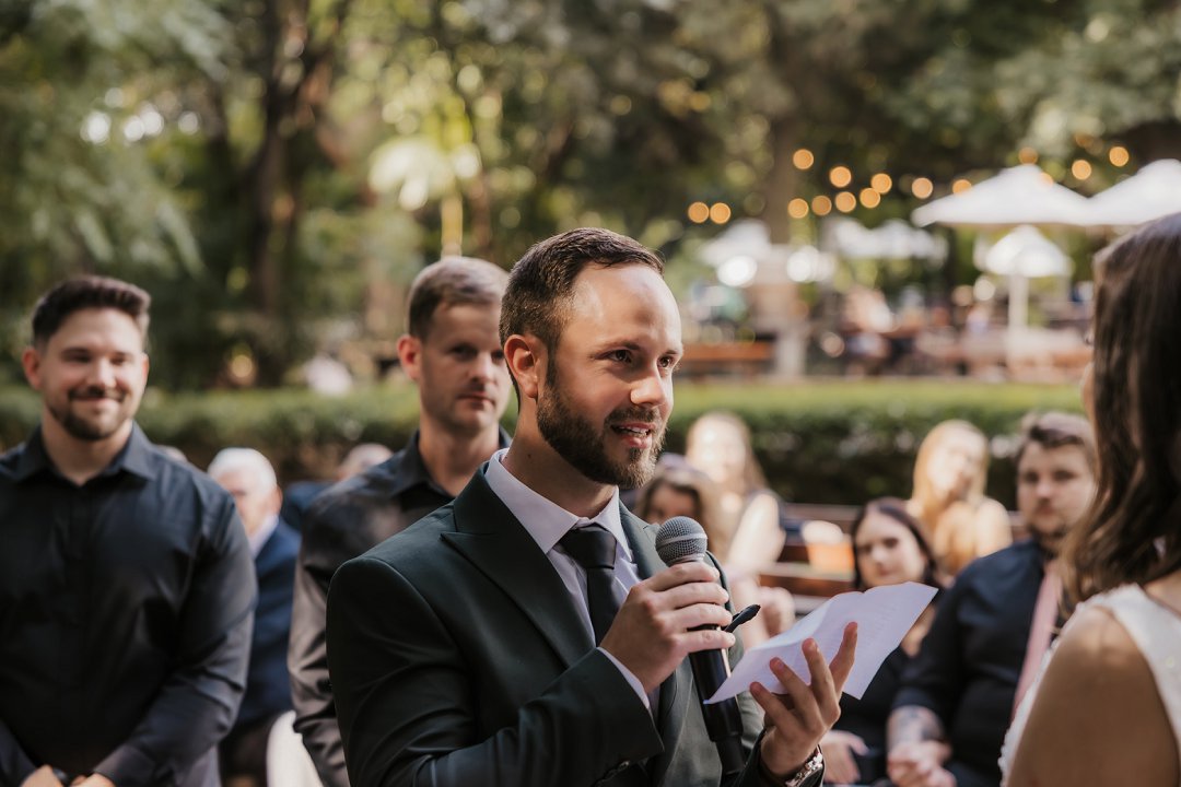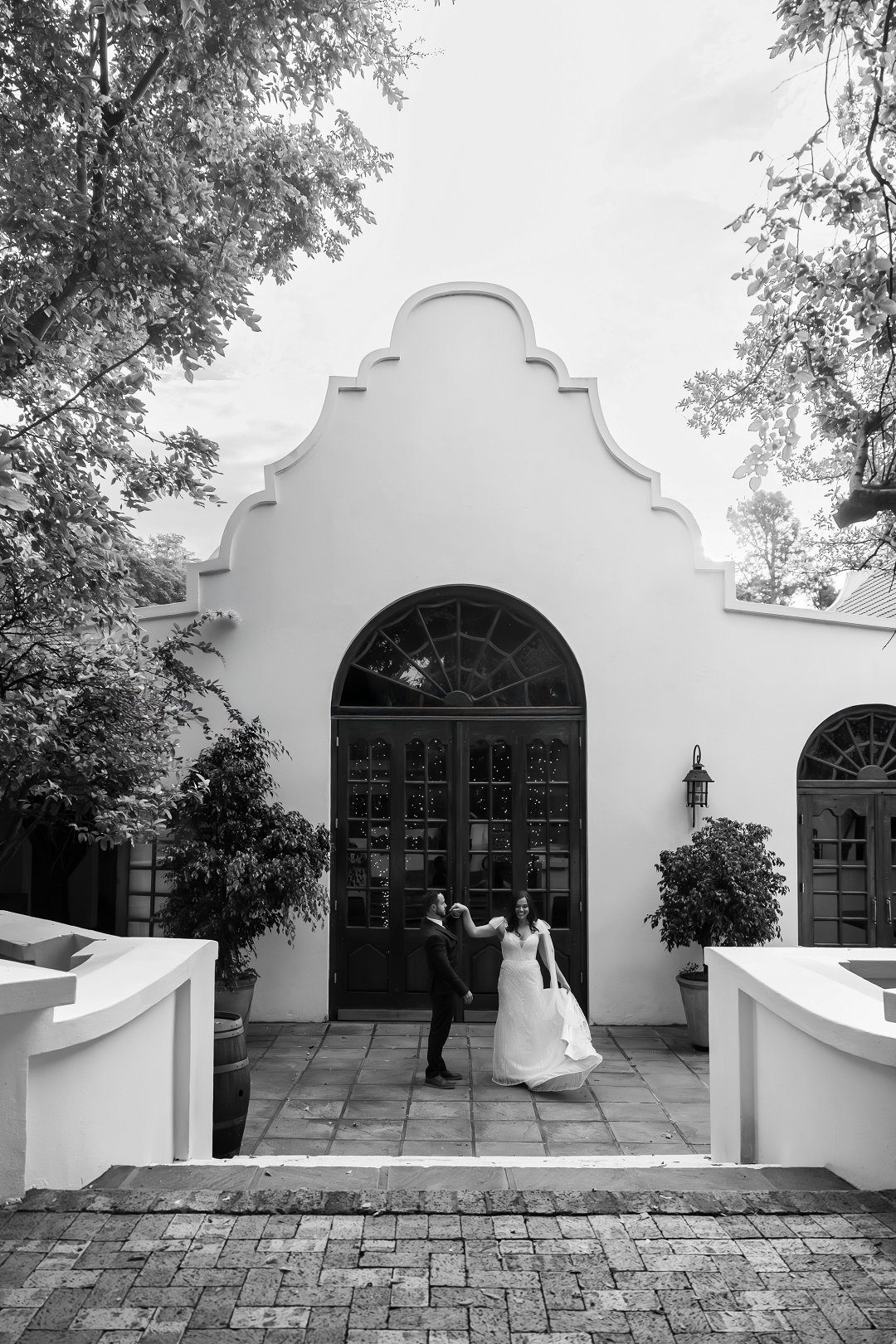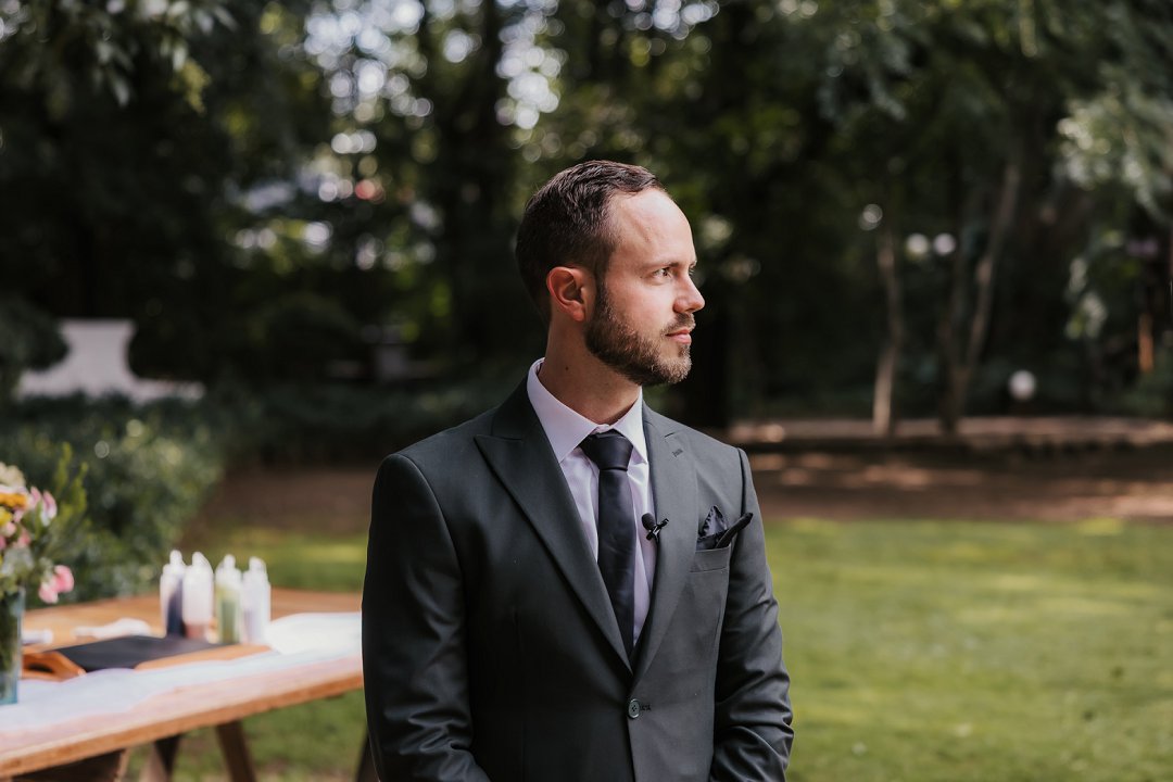 Die huweliksbeloftes is gemaak in die venue se welige tuin, waar groen grasperke en blomryke plantegroei ʼn rustige atmosfeer geskep het. Intiem én feestelik, het geliefdes die paartjie omring in ʼn gees van liefde en samehorigheid. Ná die seremonie is hul fotosessie vasgevang in die sagte sonsaklig, wat die foto’s ʼn romantiese en tydlose gevoel gegee het.