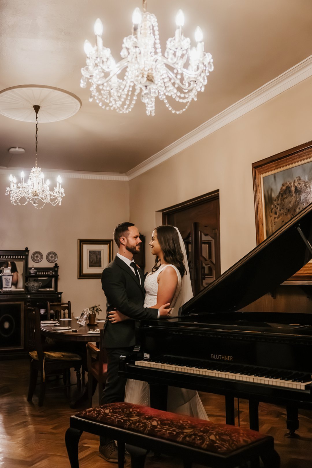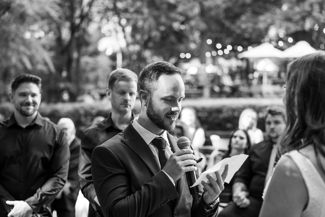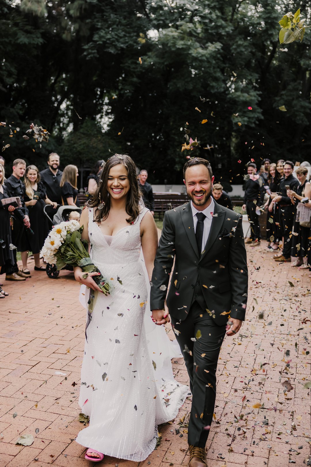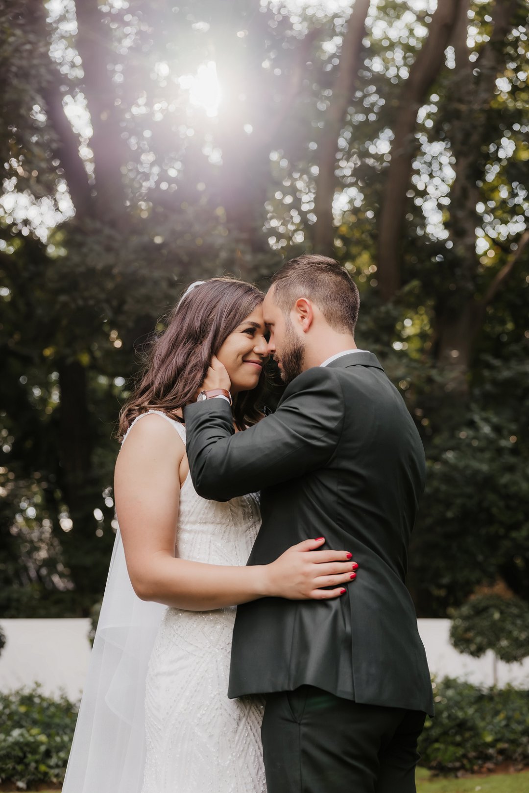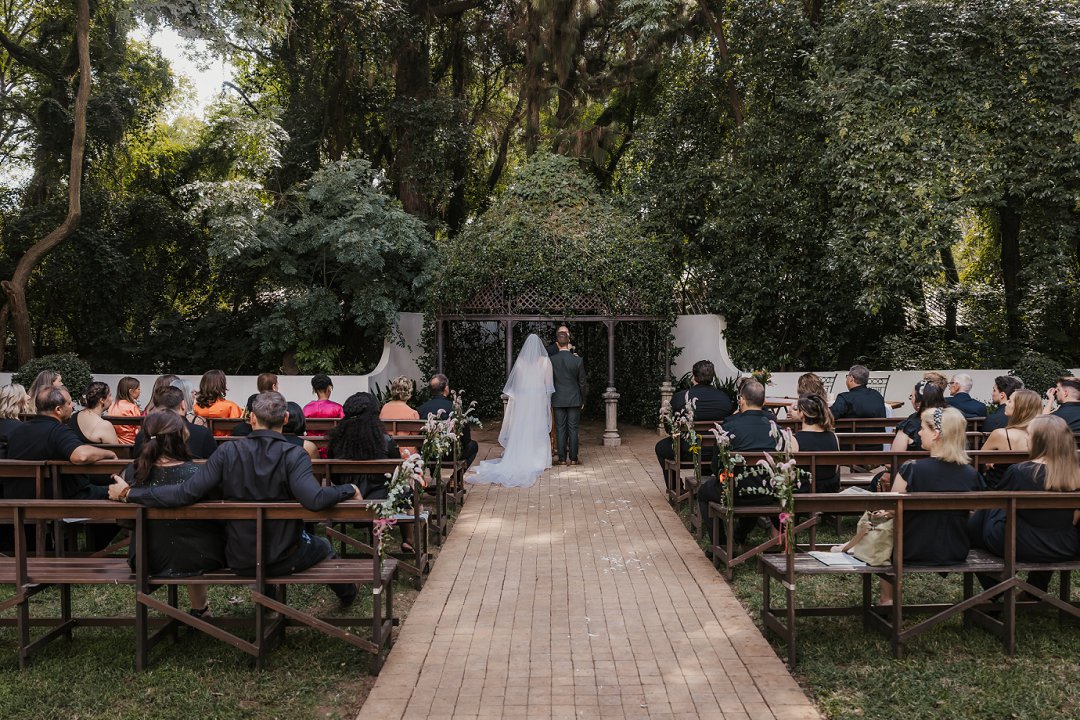 Die huweliksbeloftes is gemaak in die venue se welige tuin, waar groen grasperke en blomryke plantegroei ʼn rustige atmosfeer geskep het. Intiem én feestelik, het geliefdes die paartjie omring in ʼn gees van liefde en samehorigheid. Ná die seremonie is hul fotosessie vasgevang in die sagte sonsaklig, wat die foto’s ʼn romantiese en tydlose gevoel gegee het.