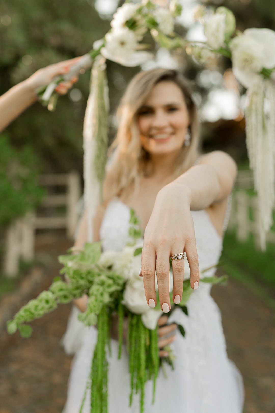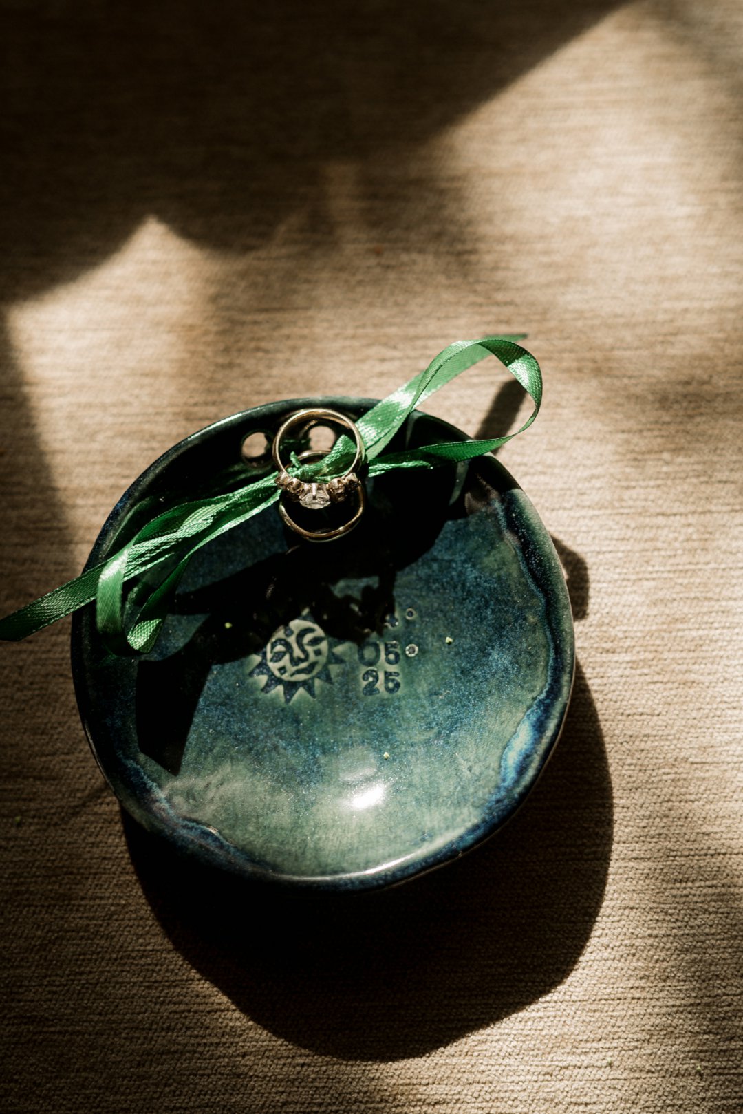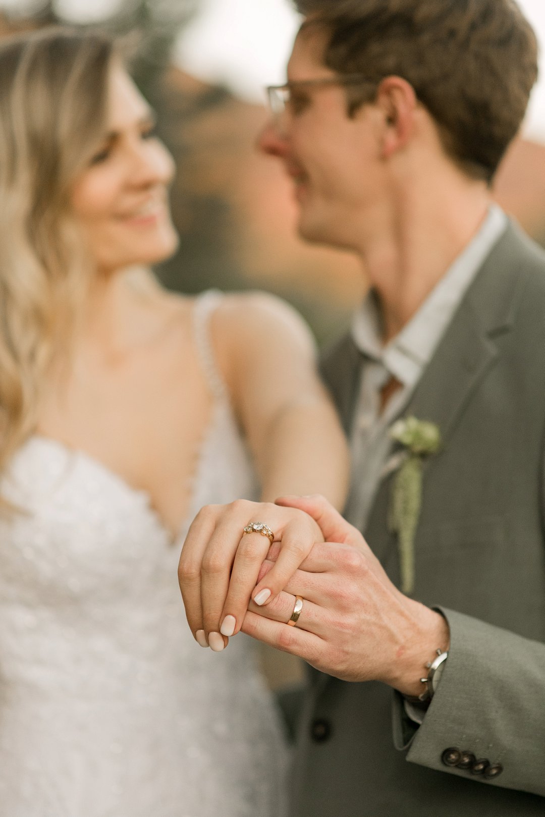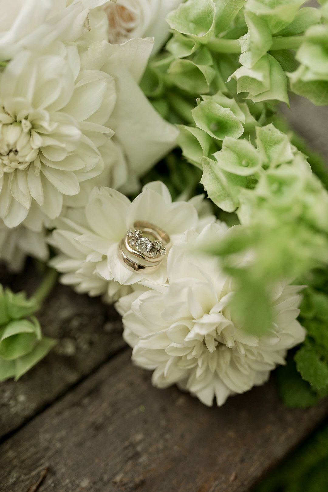 Verloof ring: My tannie het vir my ʼn geel goue ronde natuurlike diamant ring geskenk gegee. Jean het die ring na ‘n juwelier geneem en ses klein diamante by gesit. Die trou ring is ʼn organiese wobble ring wat mooi inskakel met die verloof ring.