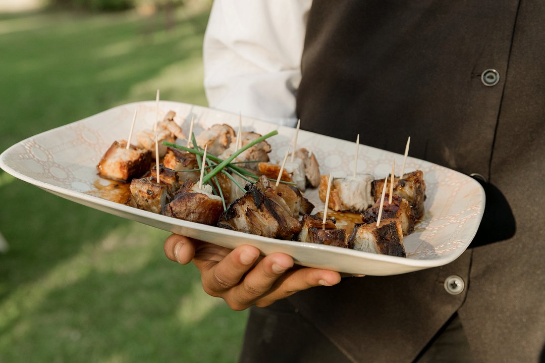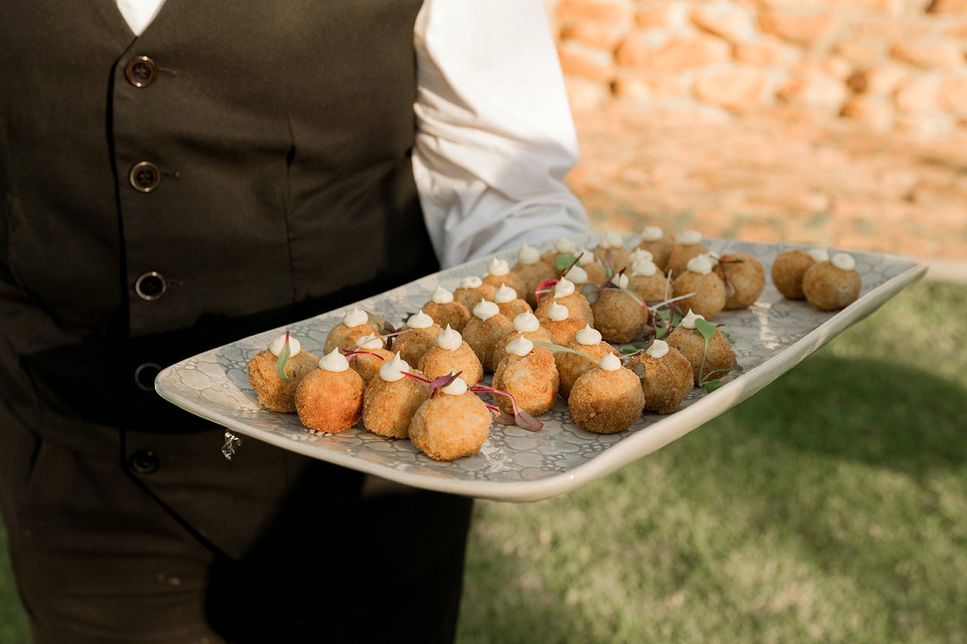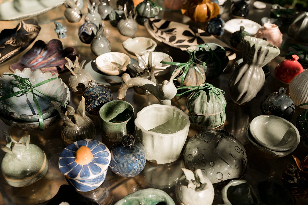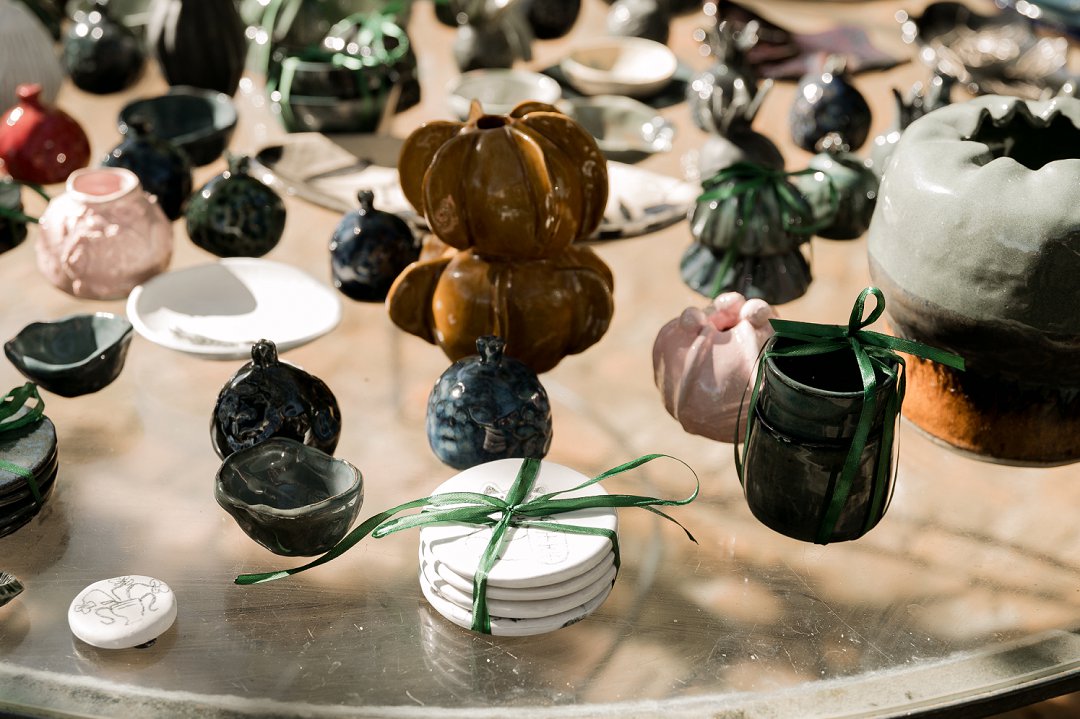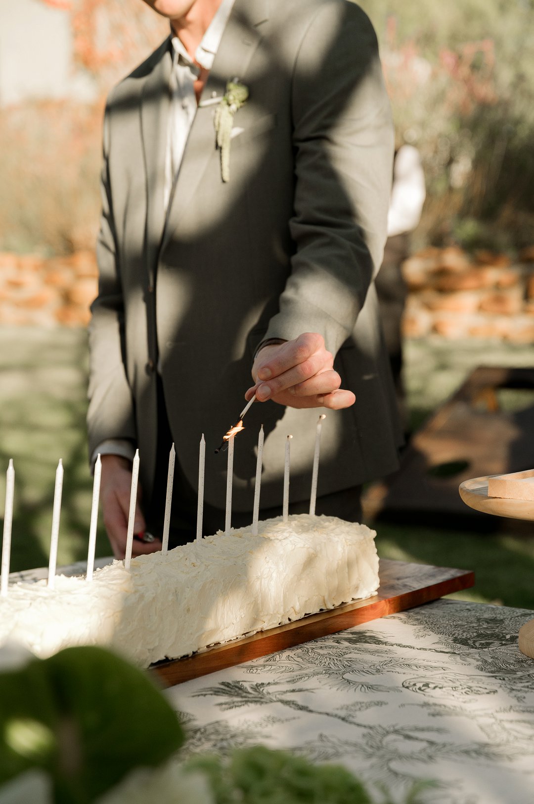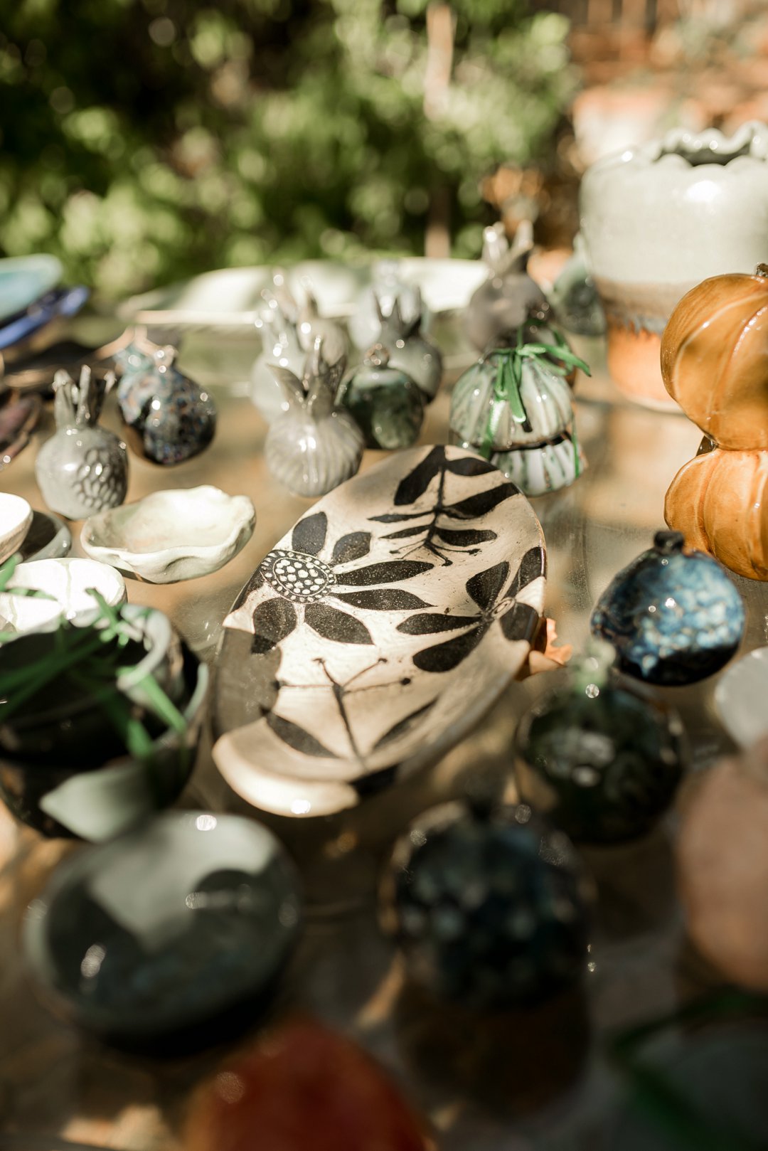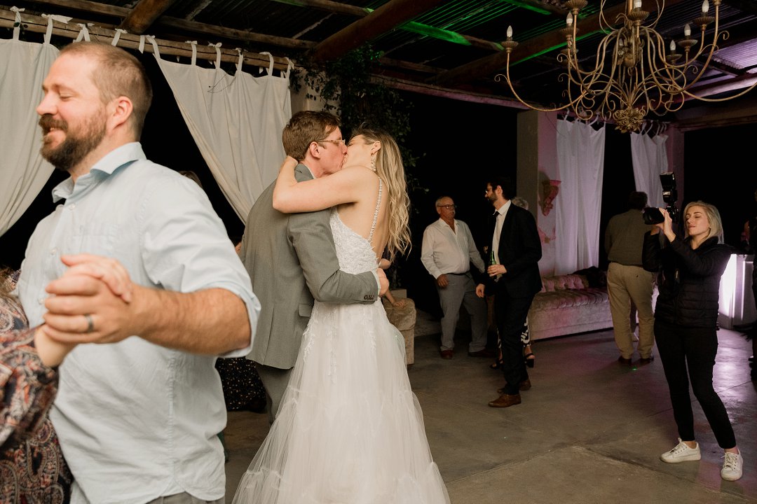 Die tafels was elegant versier met wit tafeldoeke wat tot op die grond gehang het, deurskynende stoele en ’n ontspanne rangskikking van blomme, vrugte en potjies wat die paartjie self gemaak het. Tesame met kerse het lanterns op die tafels ’n unieke en rustige atmosfeer geskep wat die dekor van hierdie troue só besonders gemaak het.