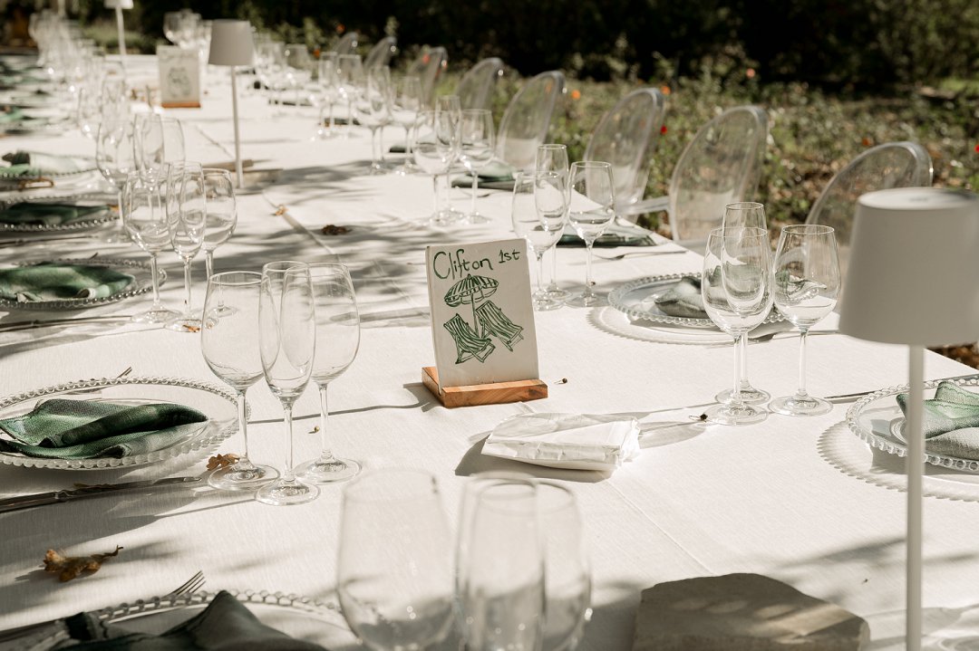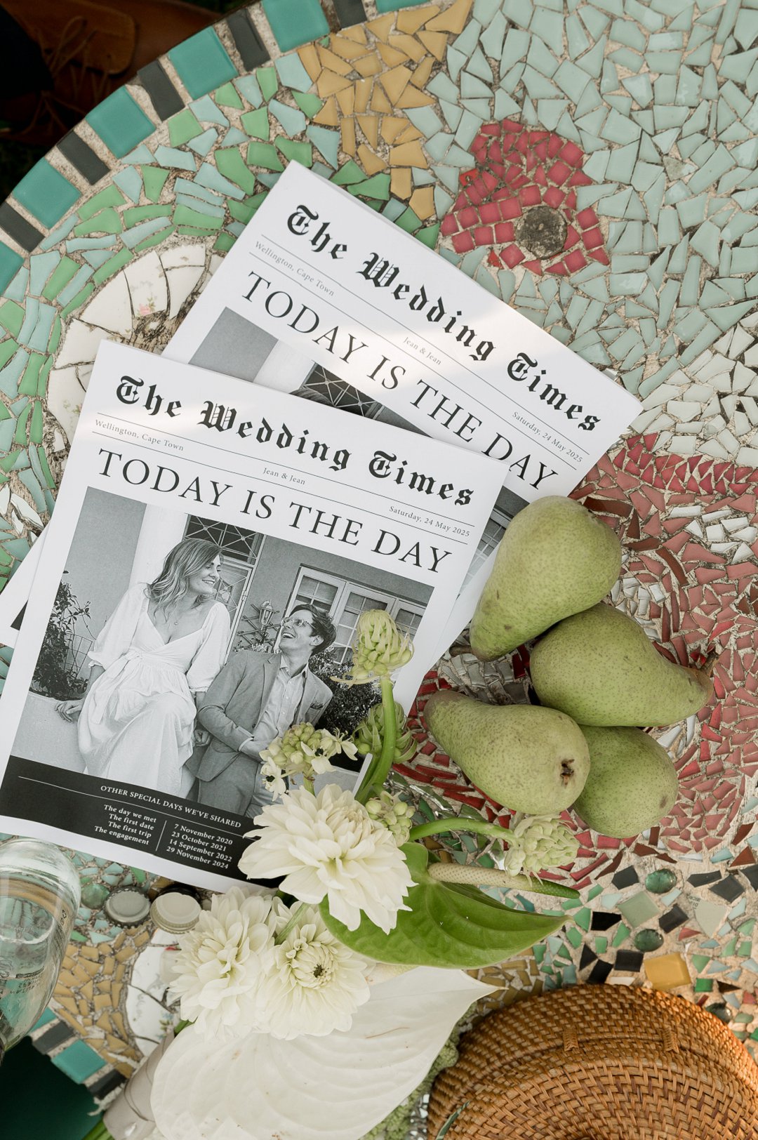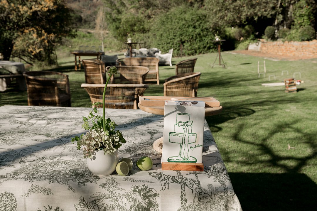Hierdie troue is propvol selfdoen idees en die elemente is net te besonders om vir onsself te hou. Die paartjie het die servette wat op die tafels gebruik is, self laat maak en hulle ontwerp op die lap laat druk vir ’n persoonlike aanraking. Hulle het ook die welkombord self gemaak en saam met die naamkaartjies het elke gas ’n individuele briefie ontvang, ’n gebaar wat moeilik is om te oortref.