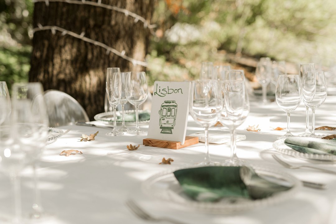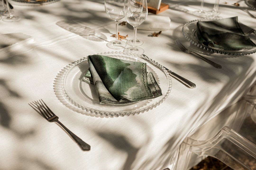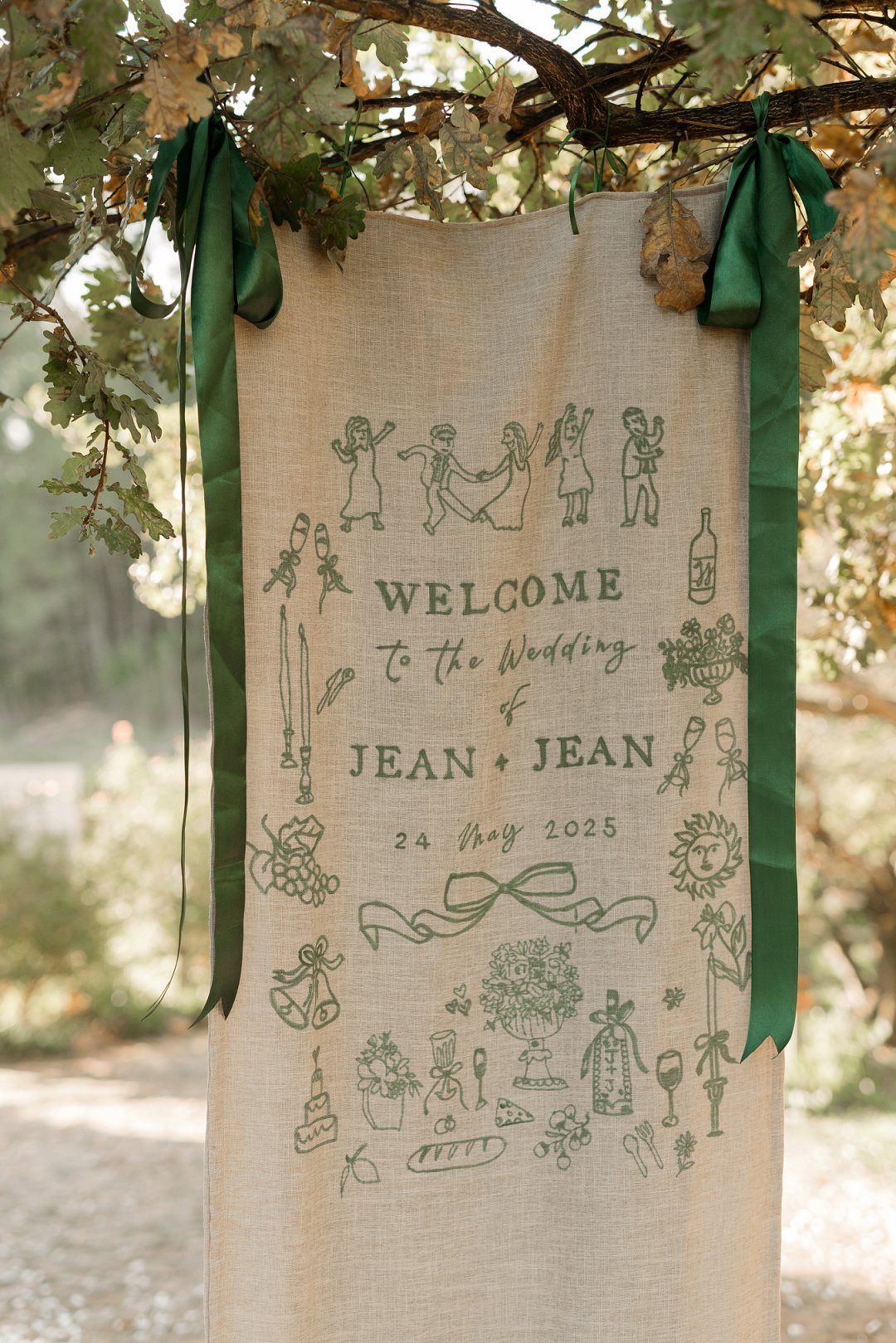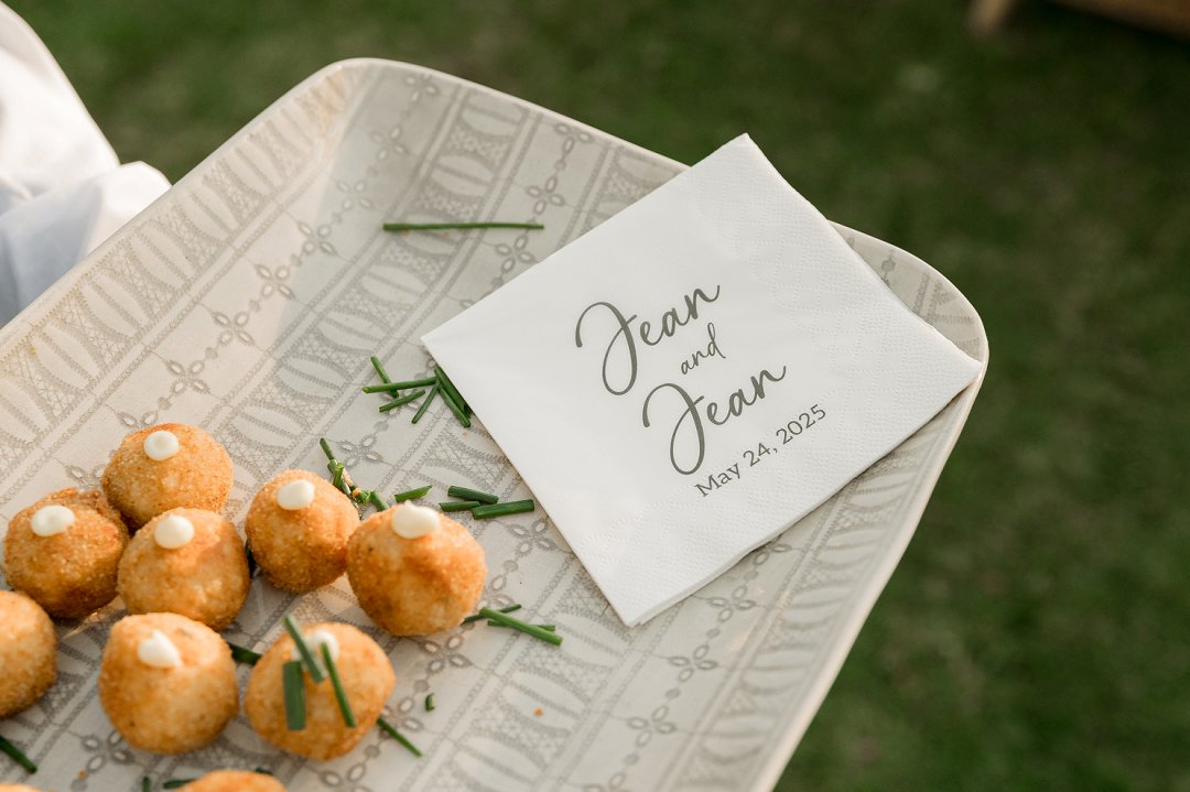 Hierdie troue is propvol selfdoen idees en die elemente is net te besonders om vir onsself te hou. Die paartjie het die servette wat op die tafels gebruik is, self laat maak en hulle ontwerp op die lap laat druk vir ’n persoonlike aanraking. Hulle het ook die welkombord self gemaak en saam met die naamkaartjies het elke gas ’n individuele briefie ontvang, ’n gebaar wat moeilik is om te oortref.