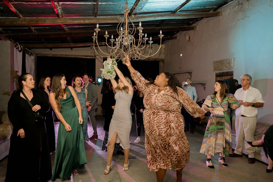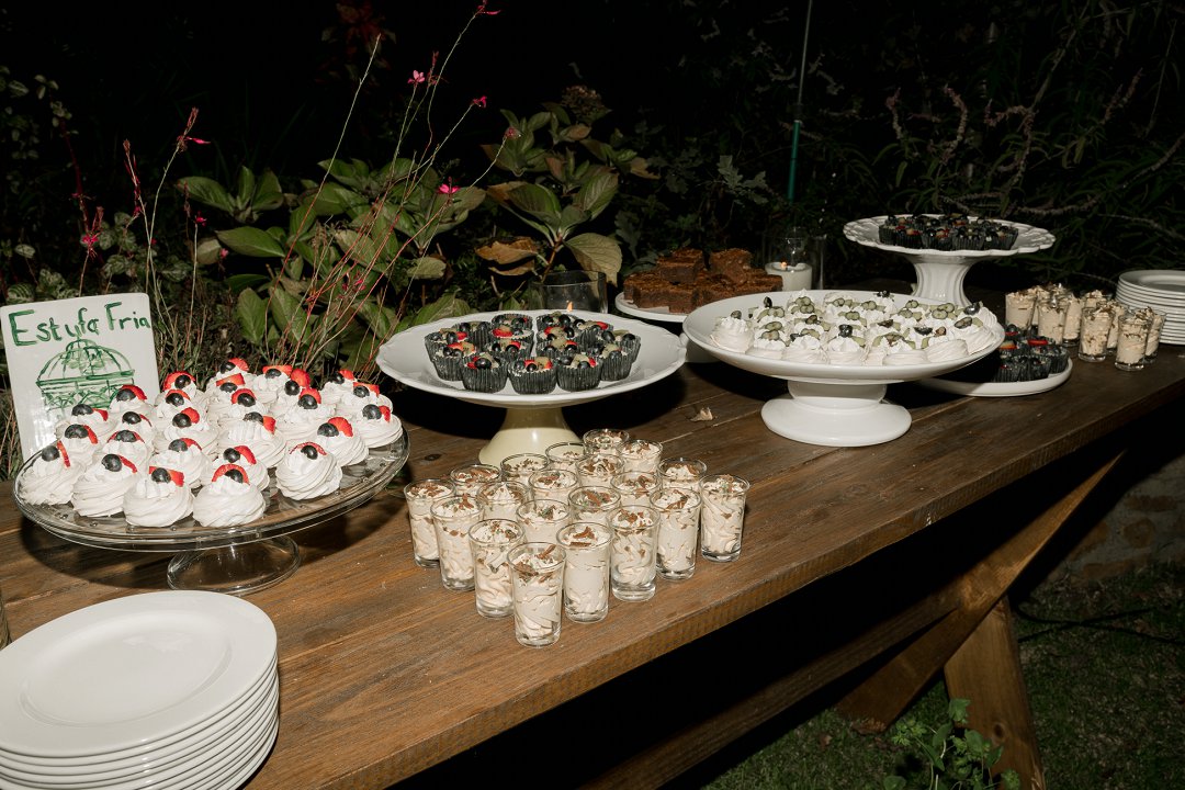Ek wou hê dit moes tydloos en elegant wees, maar steeds persoonlik voel. Ons het dit persoonlik gemaak deur die verwelkoming bord self te maak, naam kaartjies was ‘n briefie vir elke gas. Die tafel servette was selfgemaak sodat ons met die lap ‘n indruk kon maak. Met handgemaakte potjies op die tafels het dit ook meer persoonlik laat voel. Die blomme was krismis rose, anthurium, druiwe en pere, as ook lisianthus, dahlias en irish bells. Natuurlik en ontspanne georganiseer vir ‘n vars en whimsical gevoel.