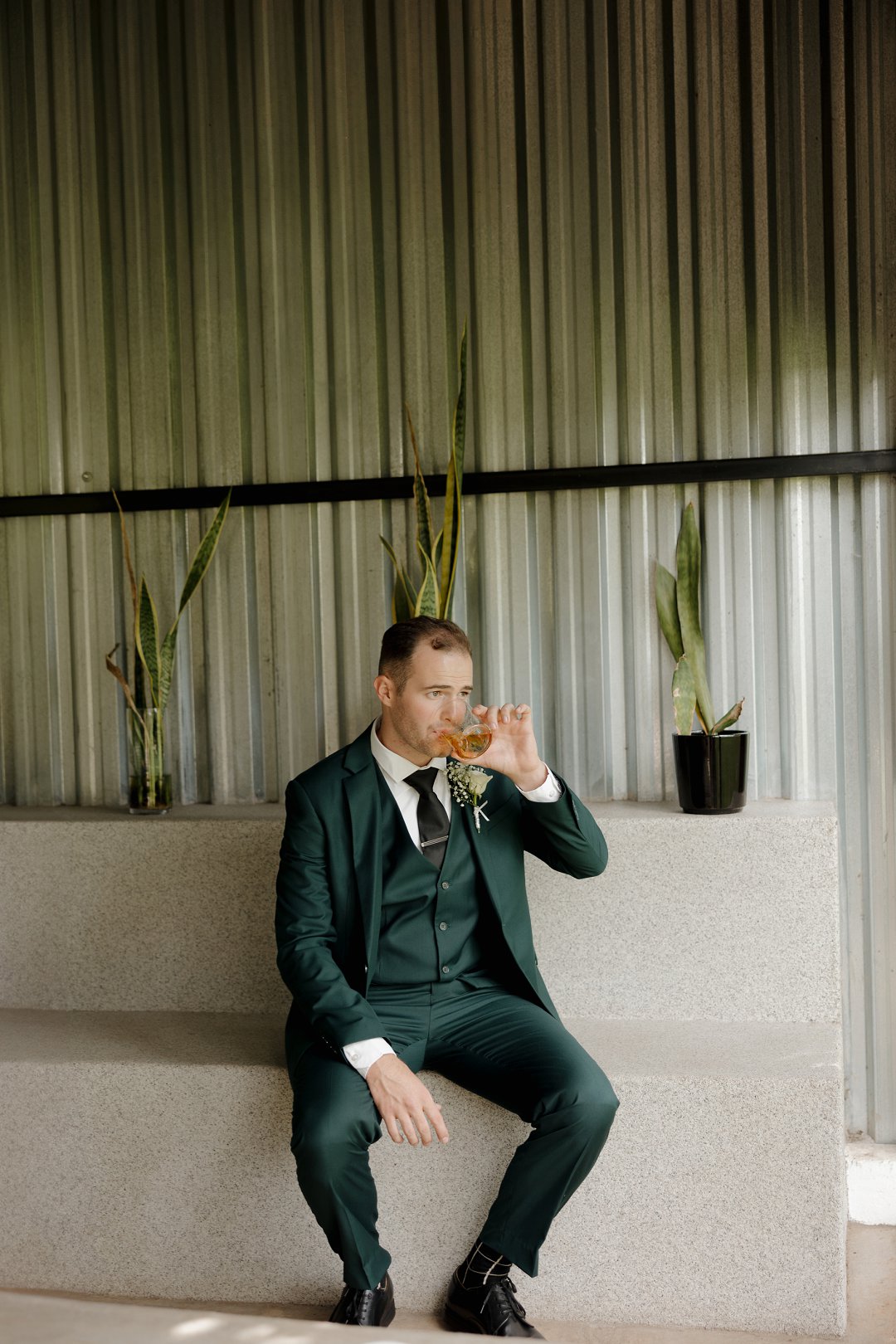 Die bruidegom, sowel as albei ma’s, het pragtige donkergroen uitrustings aangehad wat pragtig uitgestaan het teen die swart kleredrag van die gaste. Ons is eenvoudig verlief op die bruid se rok met die fyn kant detail op die bolyf en moue is asemrowend mooi. Die rok val sag en elegant, en pas haar soos ʼn droom. Sy het ʼn stylvolle wit handruiker met ʼn verskeidenheid wit blomme gedra wat haar voorkoms perfek afgerond het.