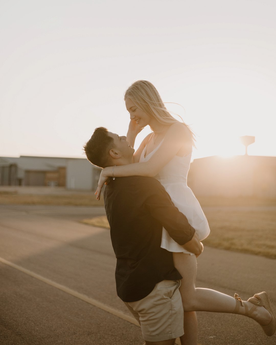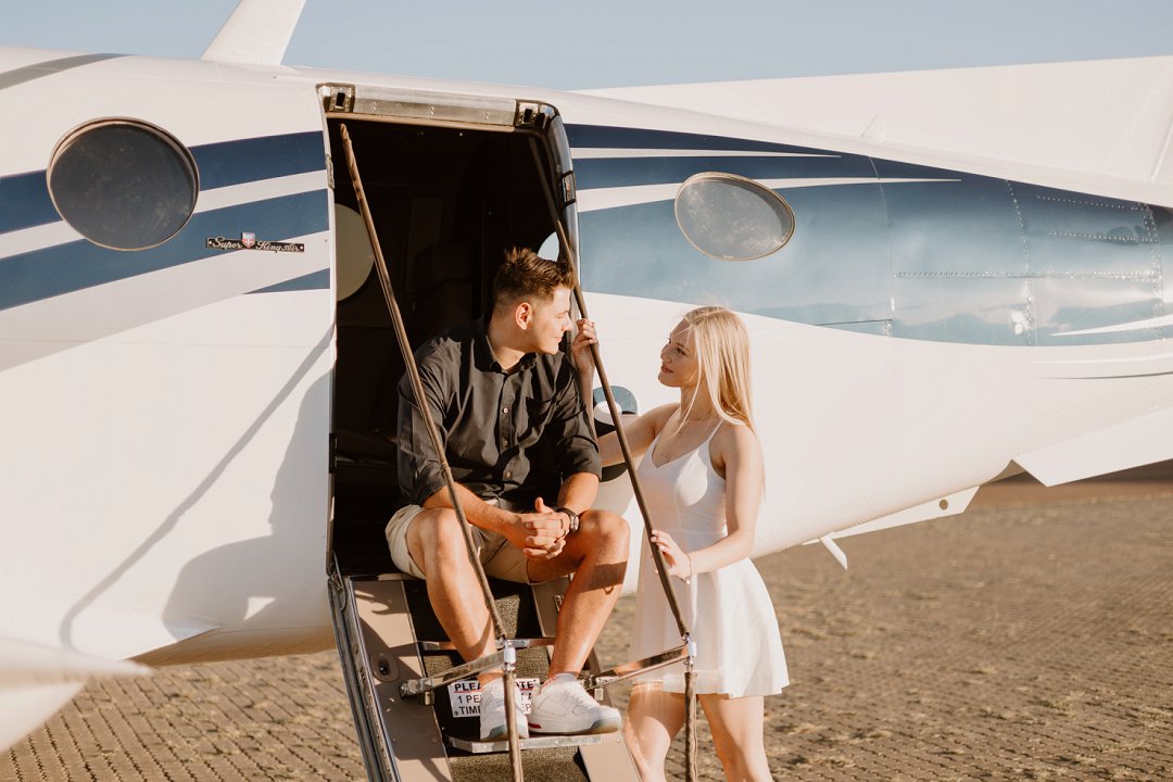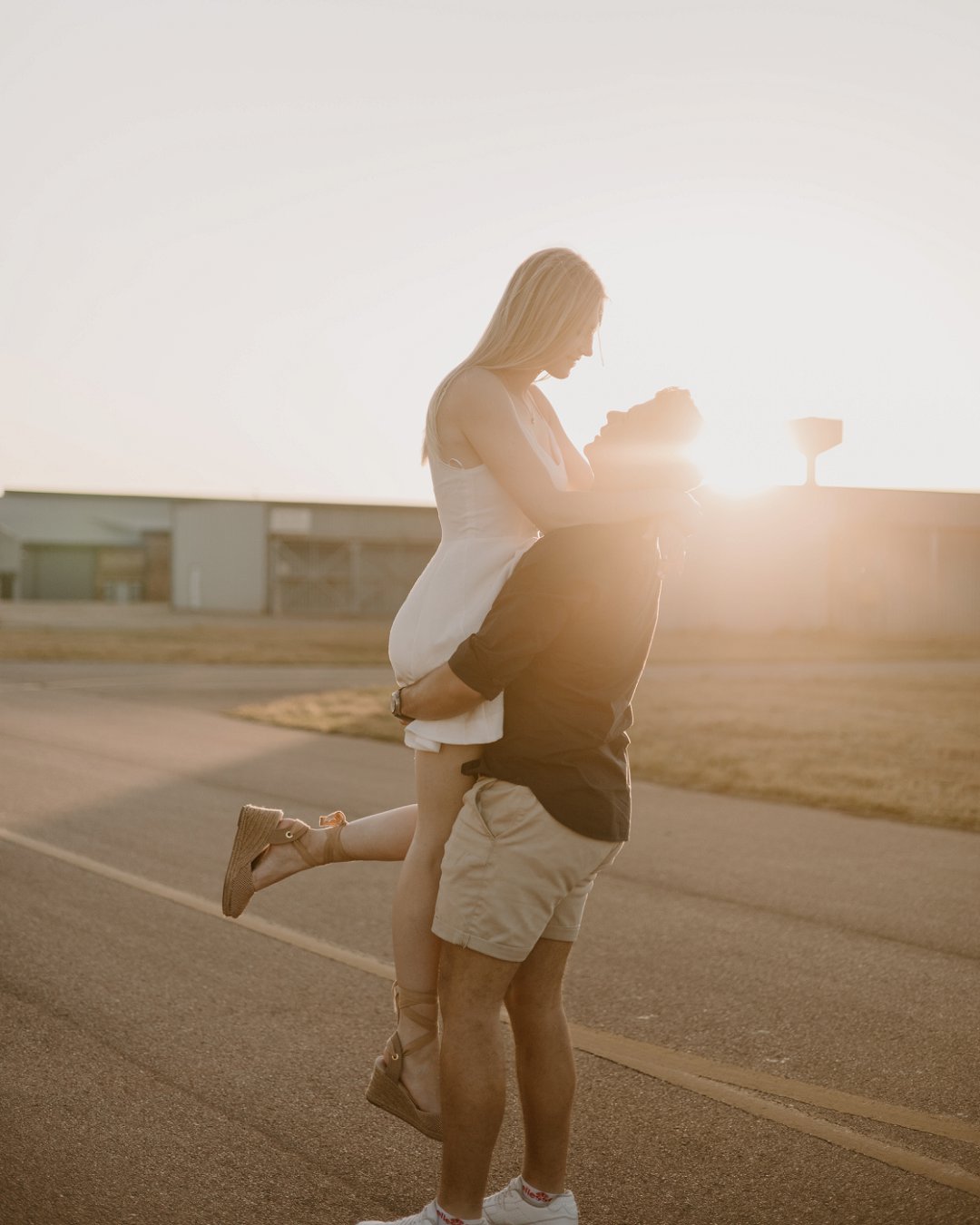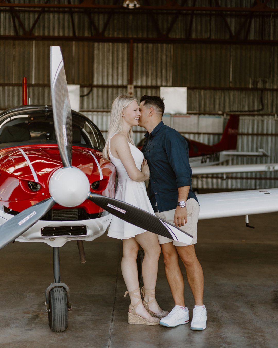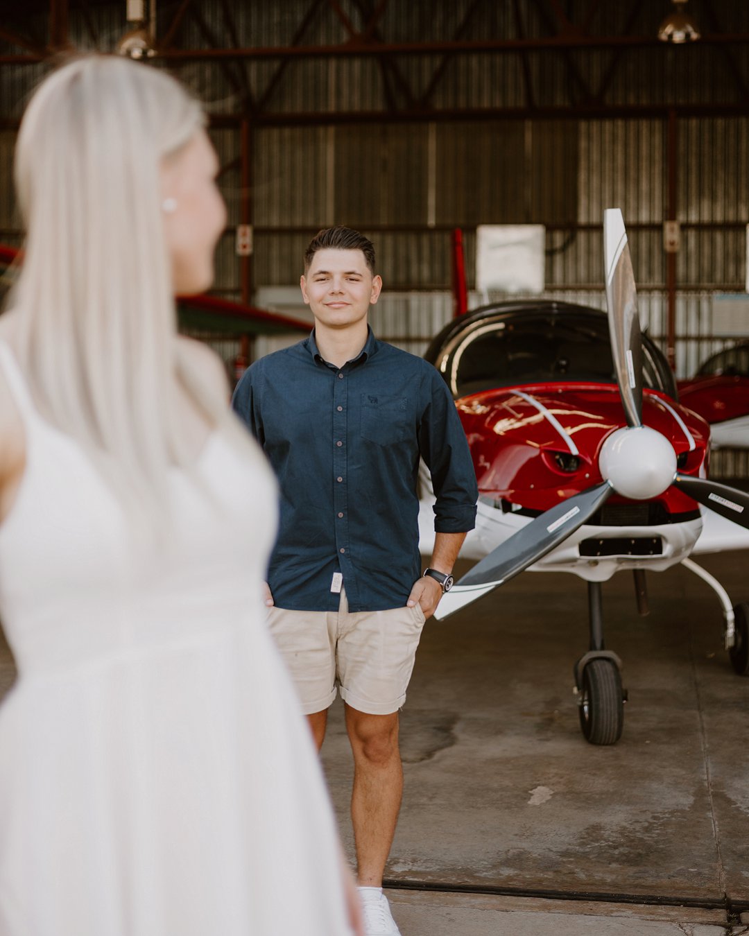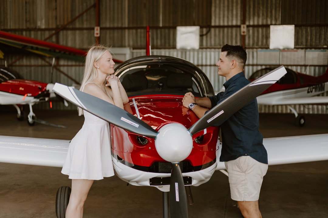 Hunter en Lana se fotosessie is werklik iets besonders. Die sagte oranje sonsaklig skep ’n romantiese, amper dromerige atmosfeer in die foto’s. En vir almal wat van vliegtuie hou, of dit bloot interessant vind, sal hierdie sessie beslis betowerend wees. Verskeie vliegtuie het as agtergrond gedien vir hul spesiale en betekenisvolle fotosessie.