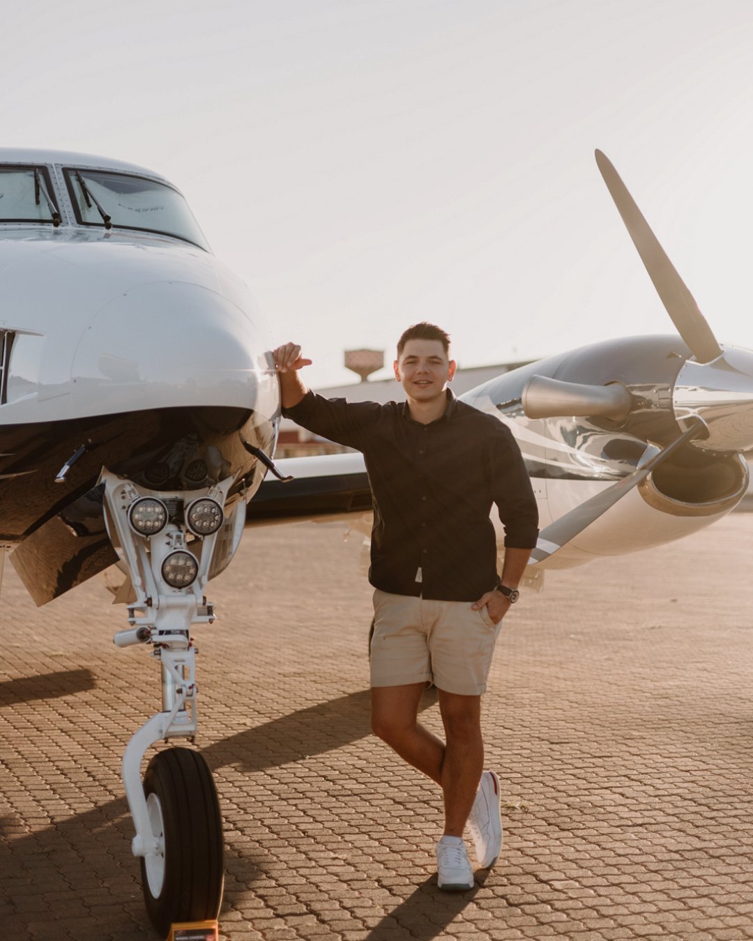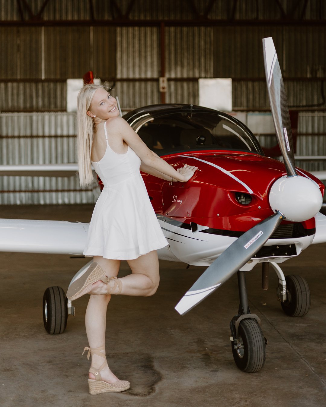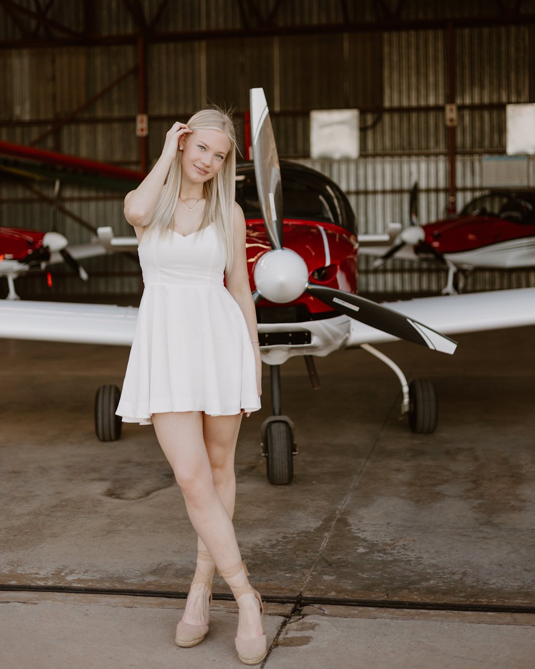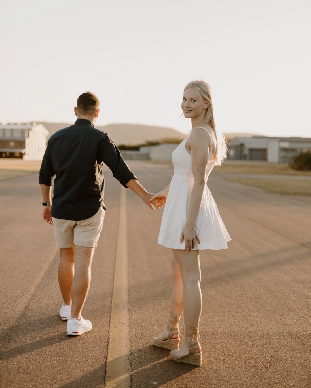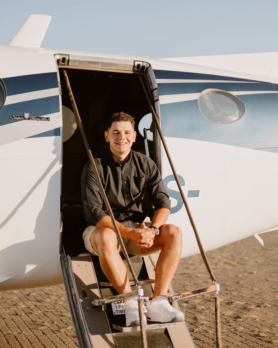 Hunter en Lana se fotosessie is werklik iets besonders. Die sagte oranje sonsaklig skep ’n romantiese, amper dromerige atmosfeer in die foto’s. En vir almal wat van vliegtuie hou, of dit bloot interessant vind, sal hierdie sessie beslis betowerend wees. Verskeie vliegtuie het as agtergrond gedien vir hul spesiale en betekenisvolle fotosessie.
