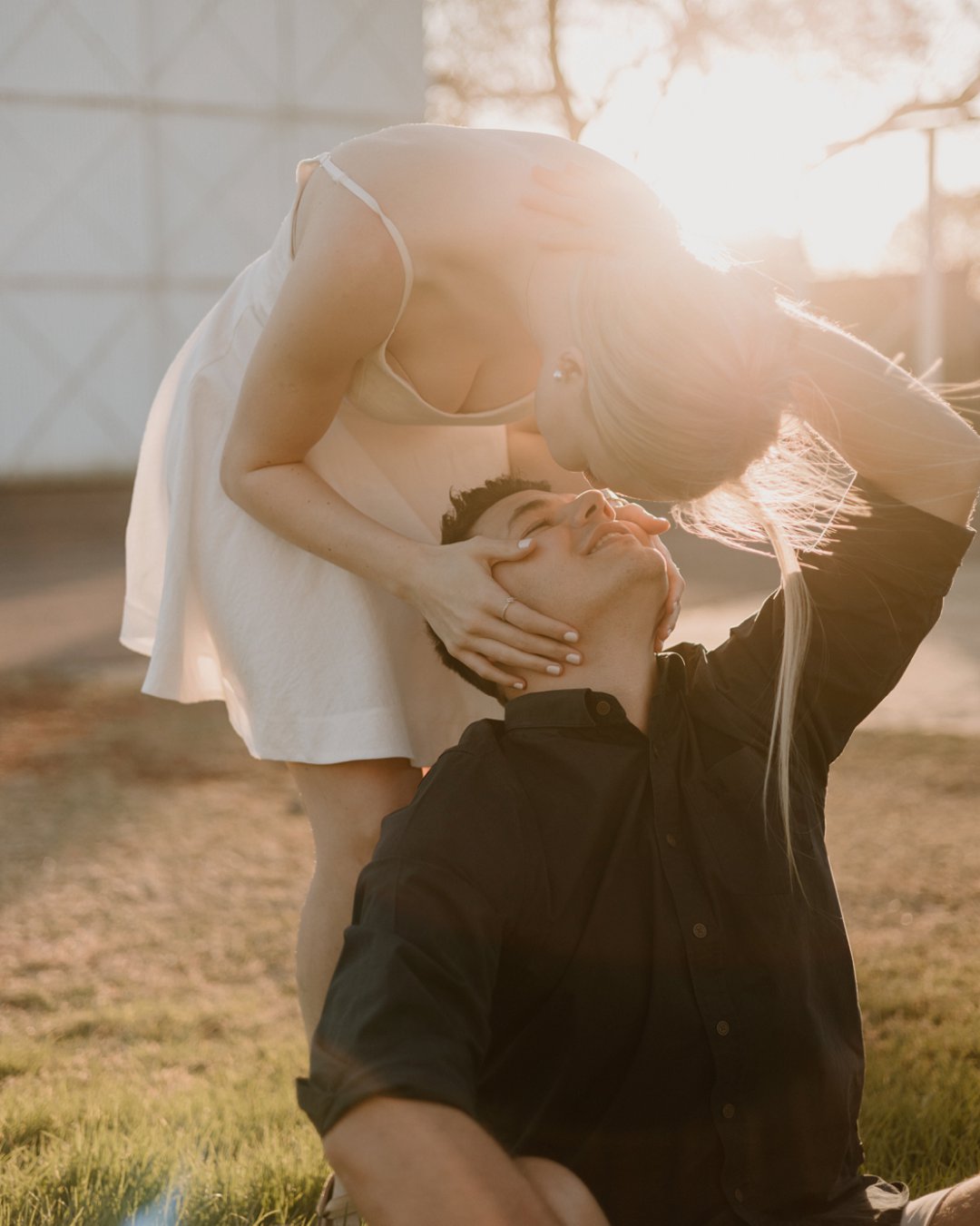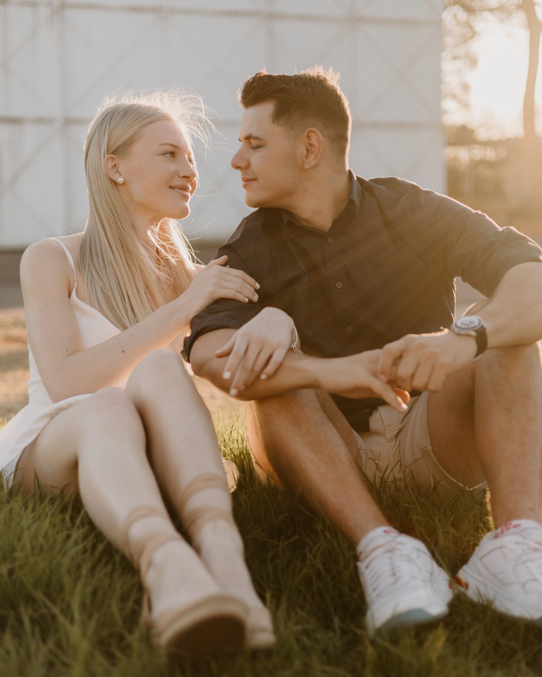 Kies ’n oulike ligging of tema waarvan julle albei hou, en trek mooi aan verkieslik in sagte, neutrale kleure. Lana se wit rokkie en Hunter se ligte khaki-broek met swart hemp was perfek vir ’n ontspanne, natuurlike sessie soos hierdie. Hoe gemakliker julle voel, hoe mooier lyk die foto’s, want ontspanning laat die egte emosies deurkom voor die kamera.