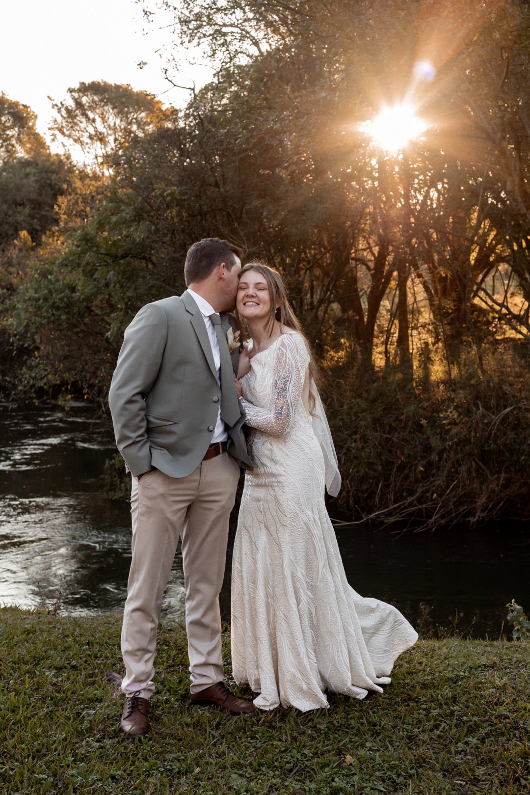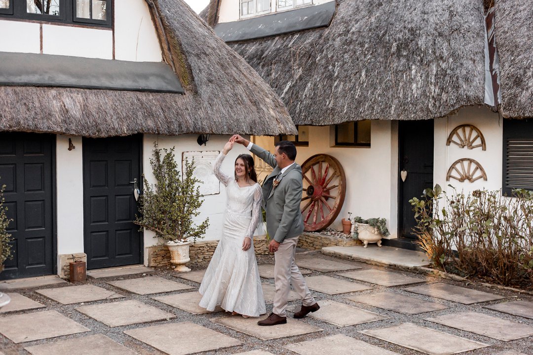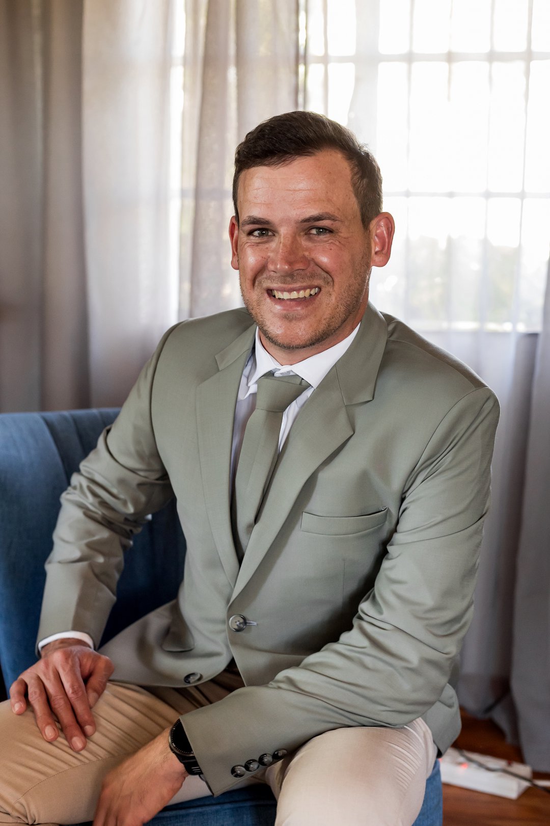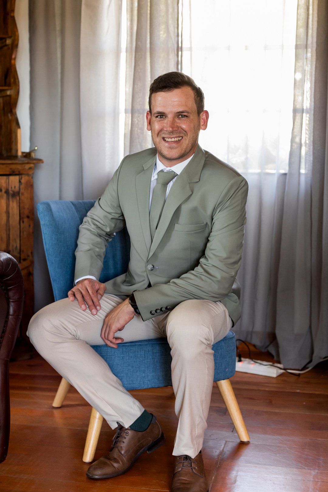 Chanell het almal se asem weggeslaan in haar pragtige trourok, versier met fyn kralewerk en elegante lang moue. Die toonbeeld van styl en romanse vir ’n wintertroue. Pierre het ewe sjarmant gelyk in sy stylvolle ligte broek, sagte groen baadjie en bypassende das, ’n kleurkombinasie wat perfek by die atmosfeer van hul betowerende dag gepas het.