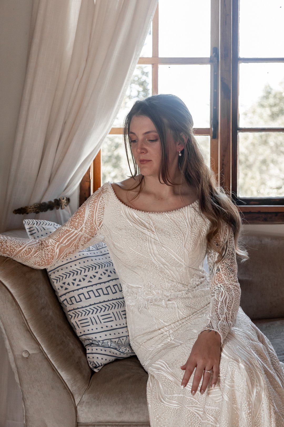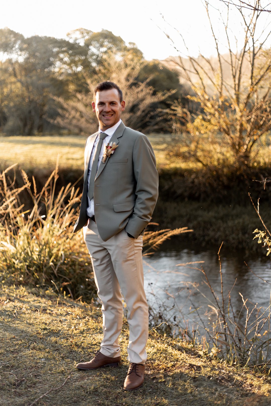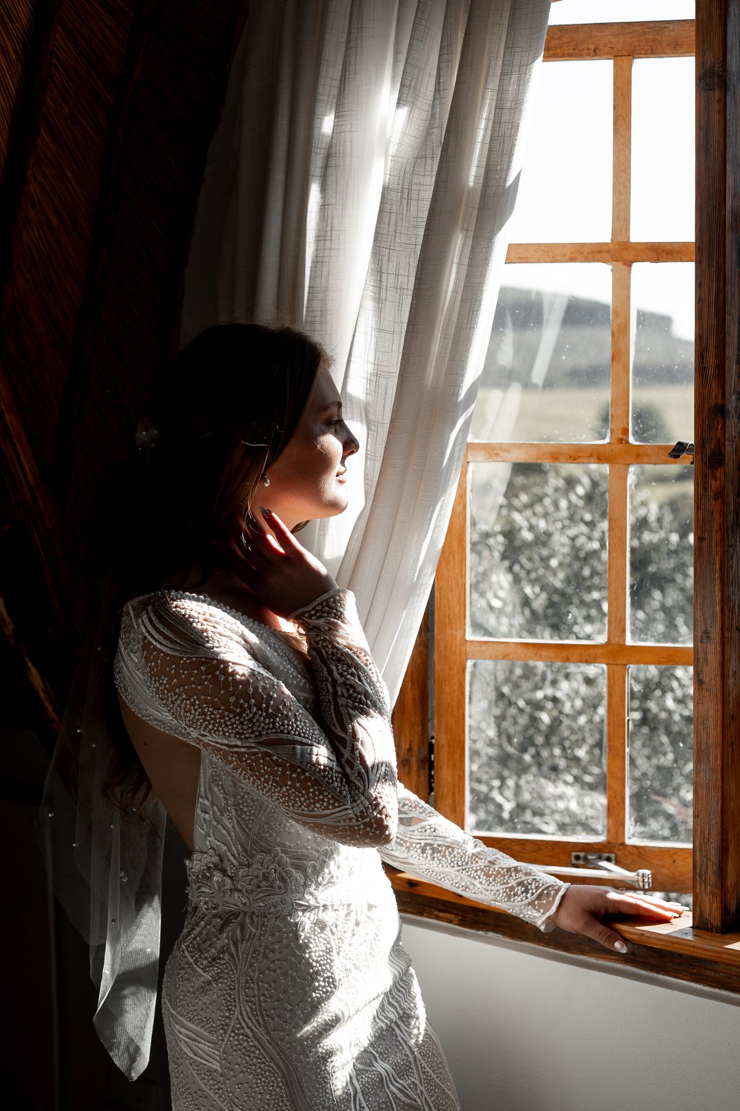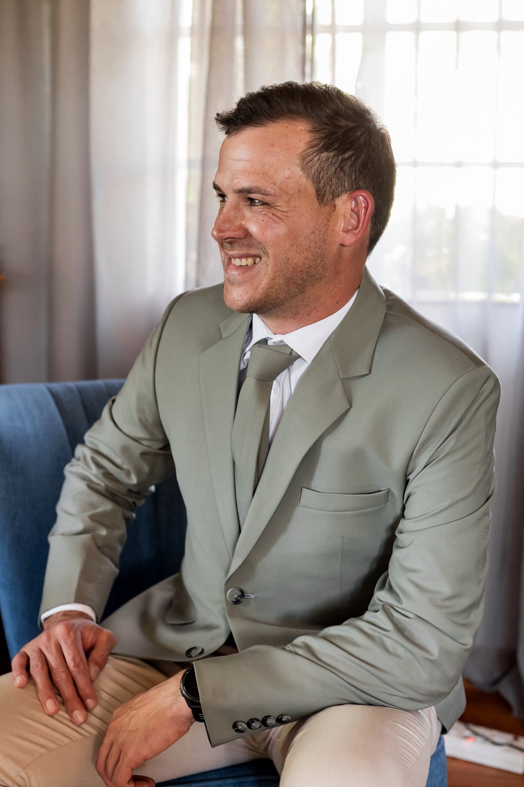 Chanell het almal se asem weggeslaan in haar pragtige trourok, versier met fyn kralewerk en elegante lang moue. Die toonbeeld van styl en romanse vir ’n wintertroue. Pierre het ewe sjarmant gelyk in sy stylvolle ligte broek, sagte groen baadjie en bypassende das, ’n kleurkombinasie wat perfek by die atmosfeer van hul betowerende dag gepas het.