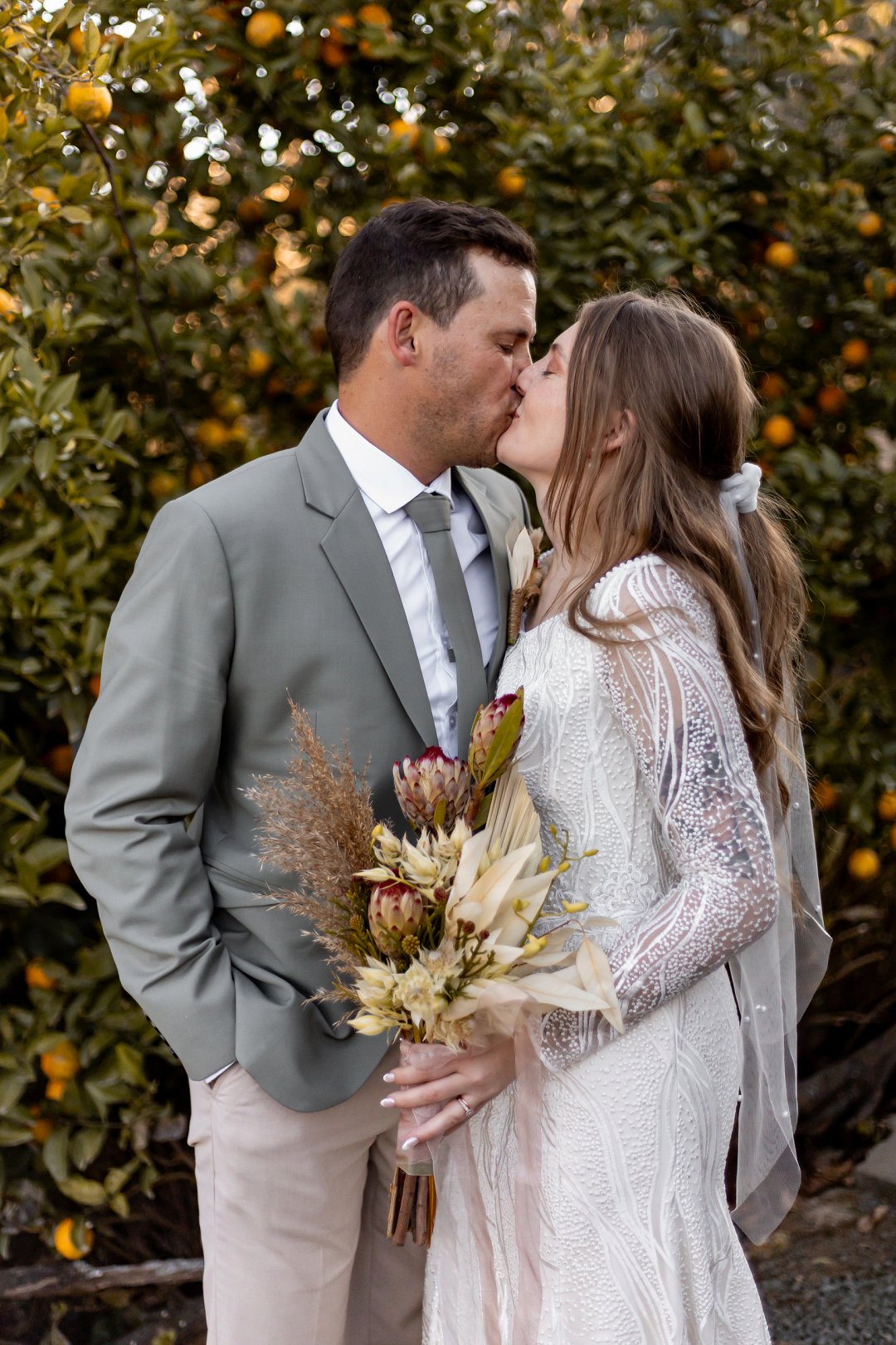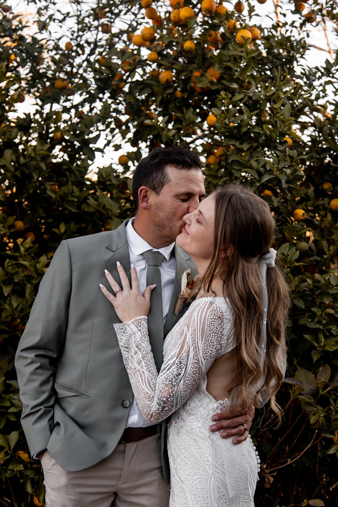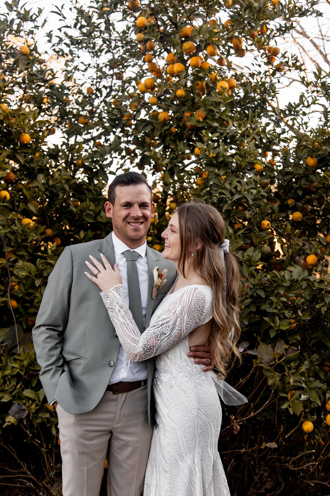 Ons is dol oor hul fotosessie. Die goue sonlig wat deur die bome en suurlemoenbome geskyn het, het die paartjie in ’n sagte lig gehul en die foto’s ’n elegante, dromerige gevoel gegee.