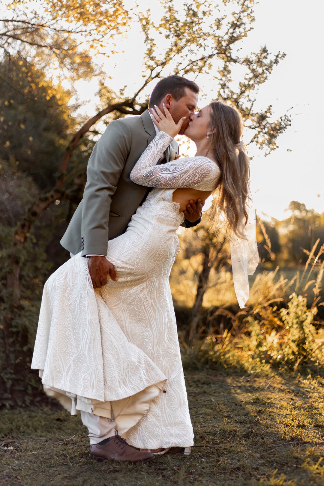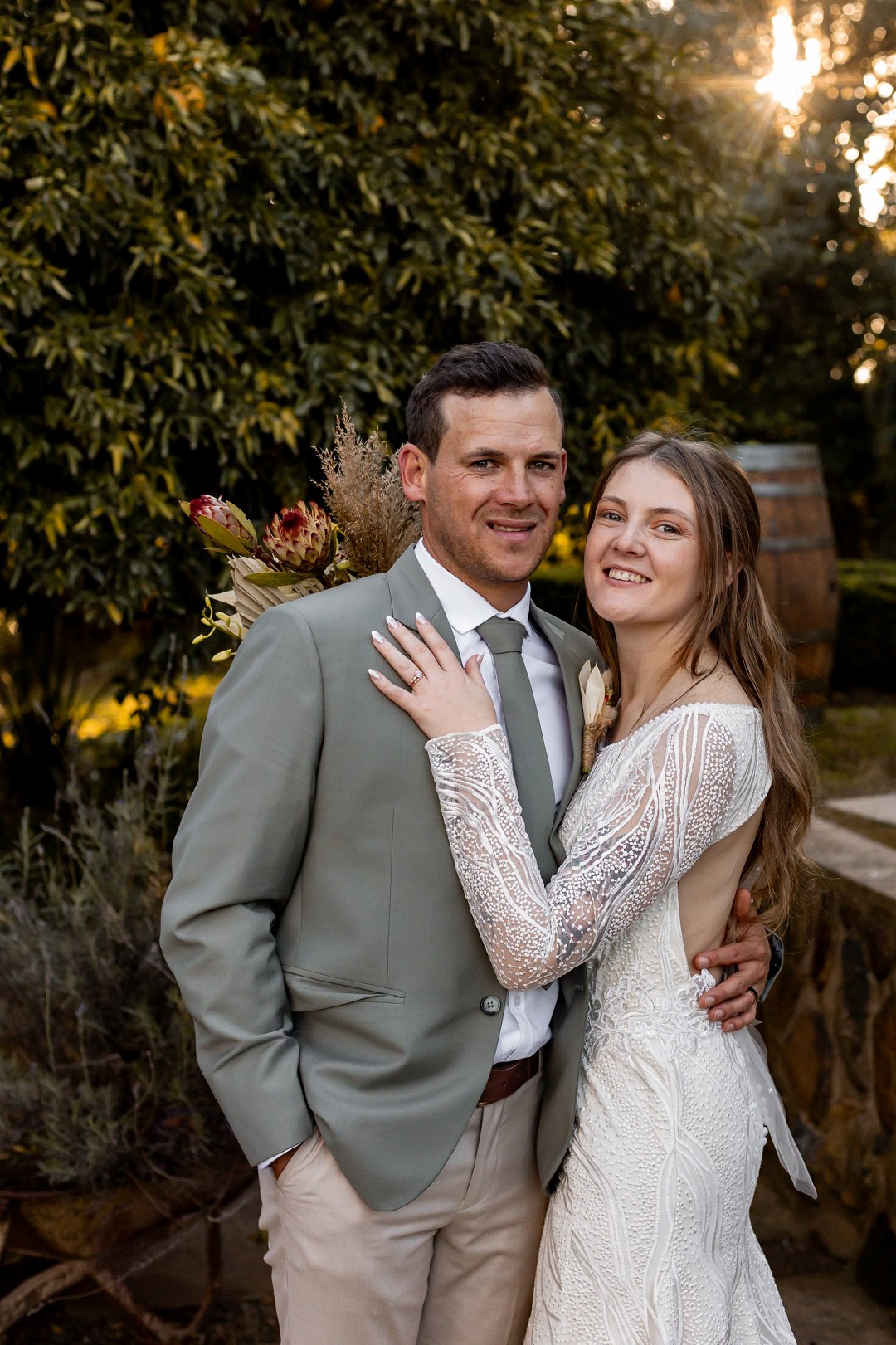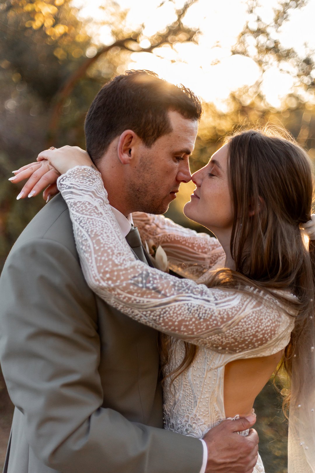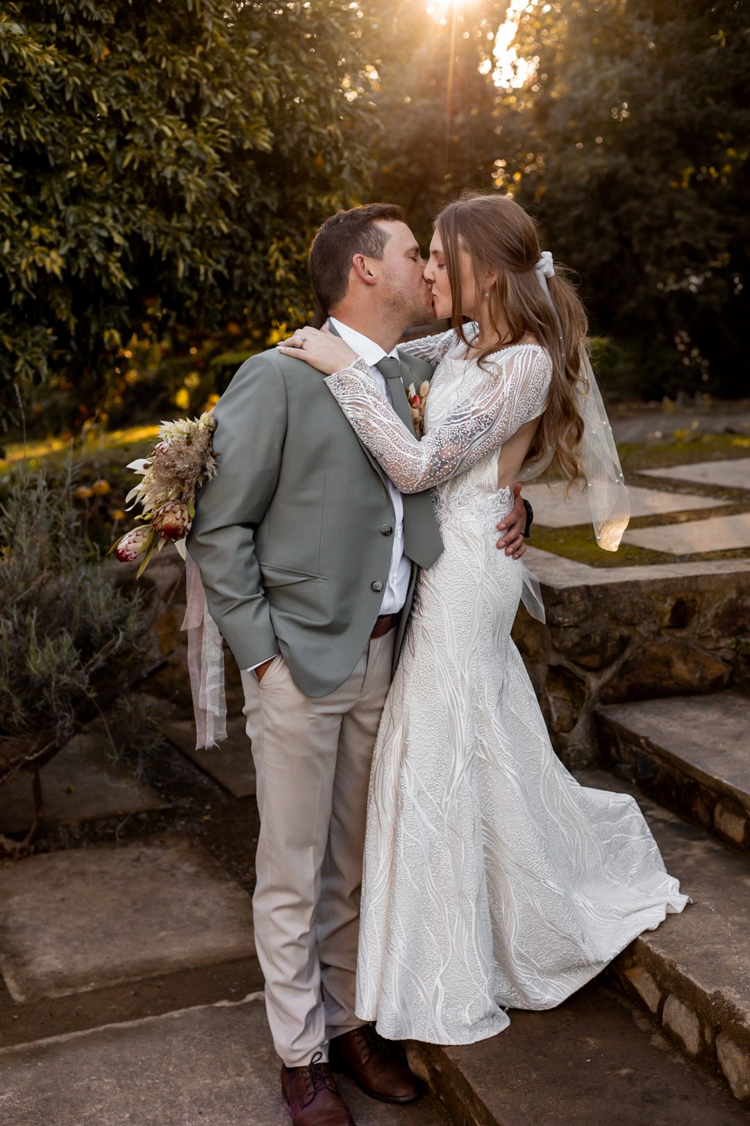 Ons is dol oor hul fotosessie. Die goue sonlig wat deur die bome en suurlemoenbome geskyn het, het die paartjie in ’n sagte lig gehul en die foto’s ’n elegante, dromerige gevoel gegee.