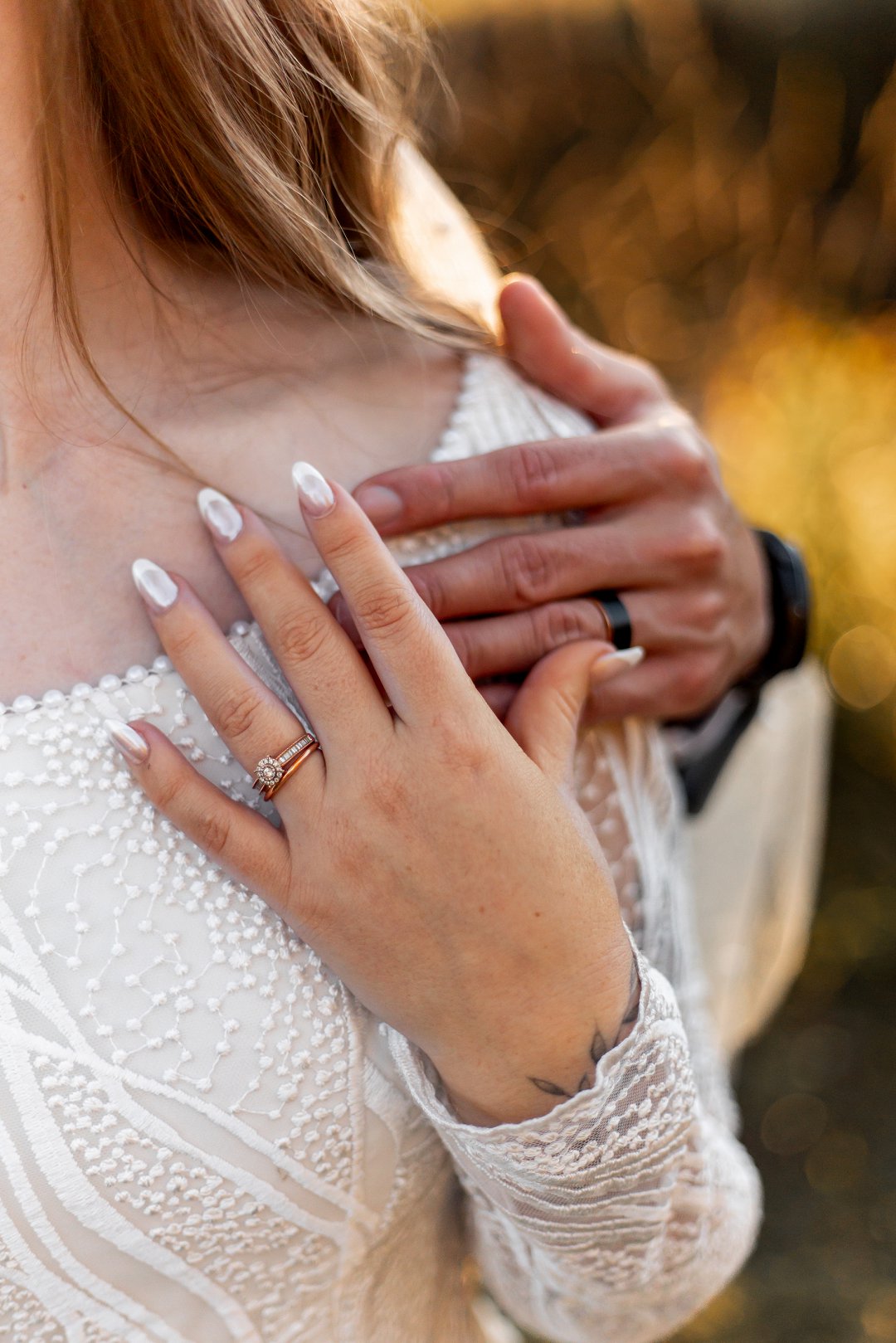 Ek was nog altyd bekend as ‘n kombinasie van “ou siel” en “gewone Jane” en ek voel Pierre het my persoonlikheid perfek met my ringe vasgevang. My verloofring is elegant en klassiek, met die band wat ’n spieëlafwerking het en die roosgoud wat sag terugglans. My trouring is eenvoudig en dun, ook in roosgoud, wat dit ’n tydlose, sagte voorkoms gee.