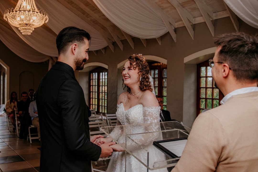 Die paartjie het hul geloftes afgelê by die pragtige Oakfield Farm, ’n bekende trouvenue in Muldersdrif, Gauteng. Die welige, versorgde tuine en tydlose klassieke argitektuur het die atmosfeer van hul dag ekstra besonders gemaak. Lauren het in ’n koets by die kapel aangekom, waar Jadyn en hulle gaste haar ingewag het in die pragtige dubbelvolume kapel.