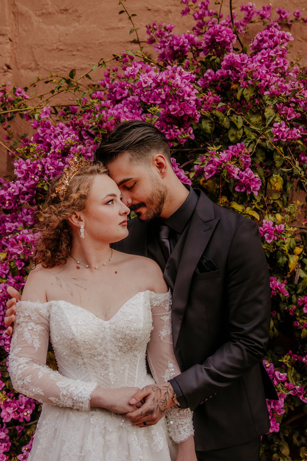 Dis ʼn gesofistikeerde maar warm atmosfeer – wat aardse kleure met romantiese blomme meng en verhef word deur klein luukse besonderhede. Ons wou hê dat die troue se styl ons altwee sal spieëlbeeld, dit was eenvoudig minimalisties en perfek.