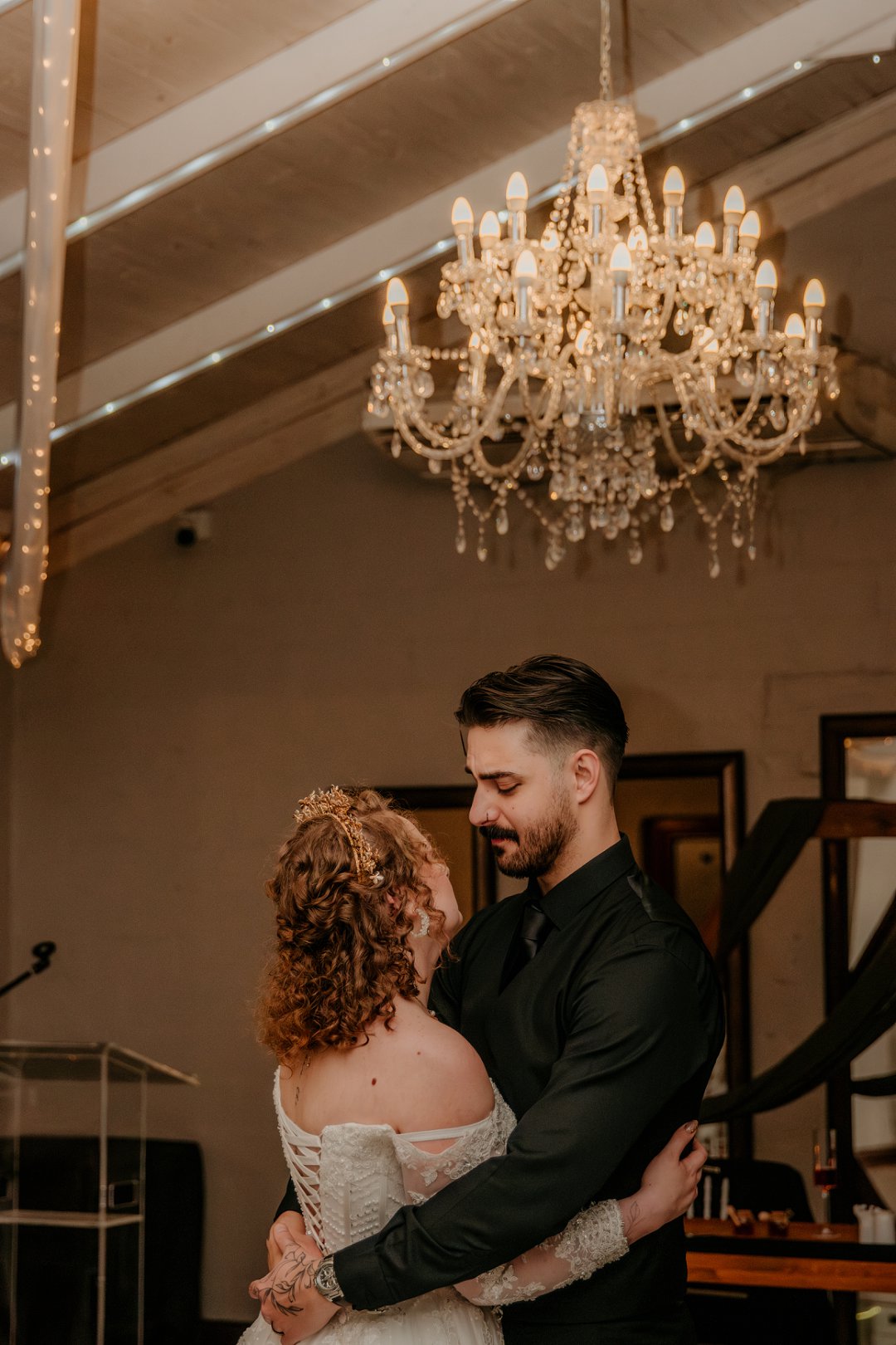 Lauren het eenvoudig beeldskoon gelyk en ons is heeltemal verlief op haar trourok wat perfek by haar styl aangesluit het. Die fyn detail op die lang moue het die rok daardie ekstra tikkie elegansie gegee. Ons dink ook haar swart skoene is ’n briljante keuse wat perfek pas by die strooimeisies se swart rokke. Jadyn het net so stylvol gelyk in sy swart-op-swart troupak, ’n elegante keuse wat pragtig by die paartjie se stylvolle troudag aansluit.