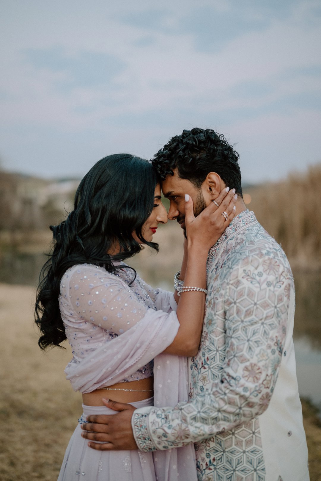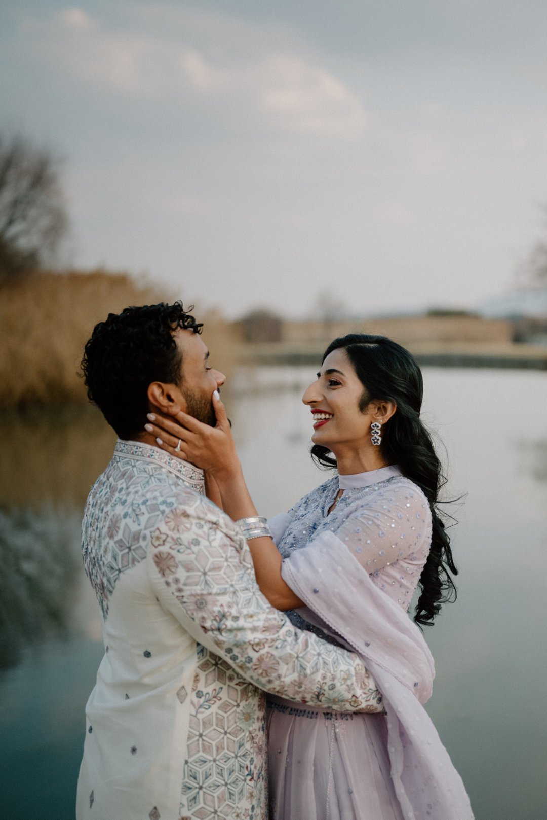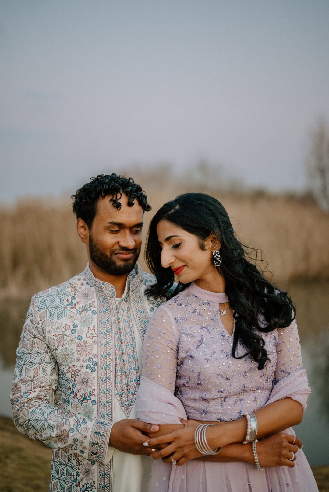 Om hul verlowing te vier, het hulle ’n pragtige fotosessie gehou in ’n park naby waar Elina grootgeword het. Omring deur die mooiste natuurskoon en sagte lig by sonsak, het hulle skitter in stylvolle uitrustings in sagte skakerings van pers en wit. Dit is vir ons altyd ’n vreugde wanneer paartjies soveel moeite doen met hul uitrustings.