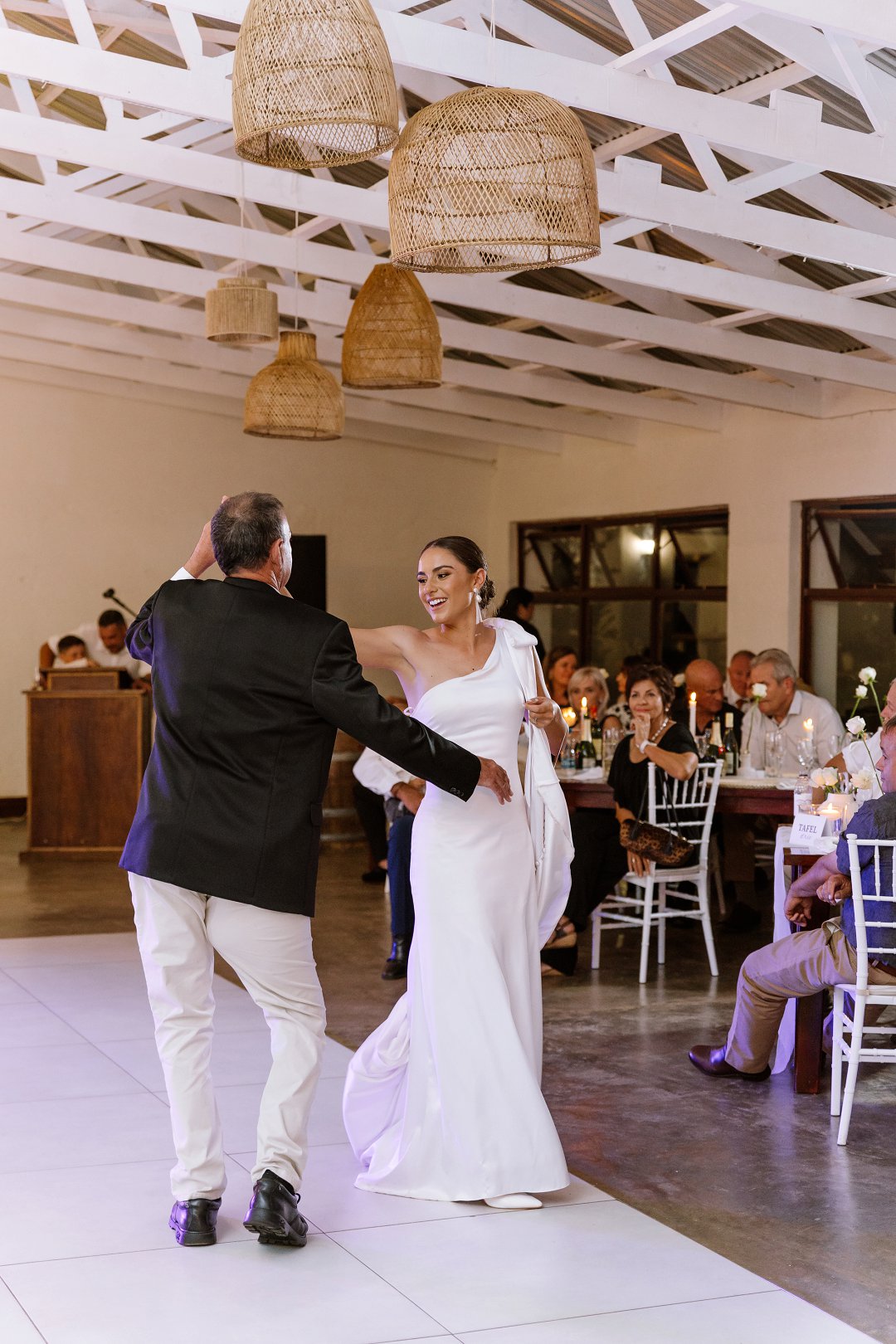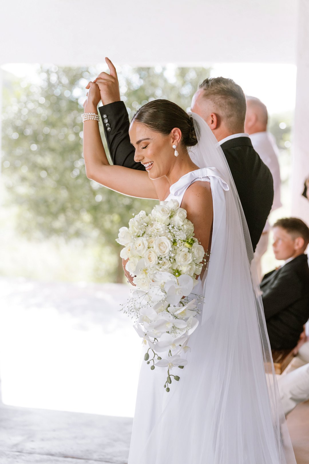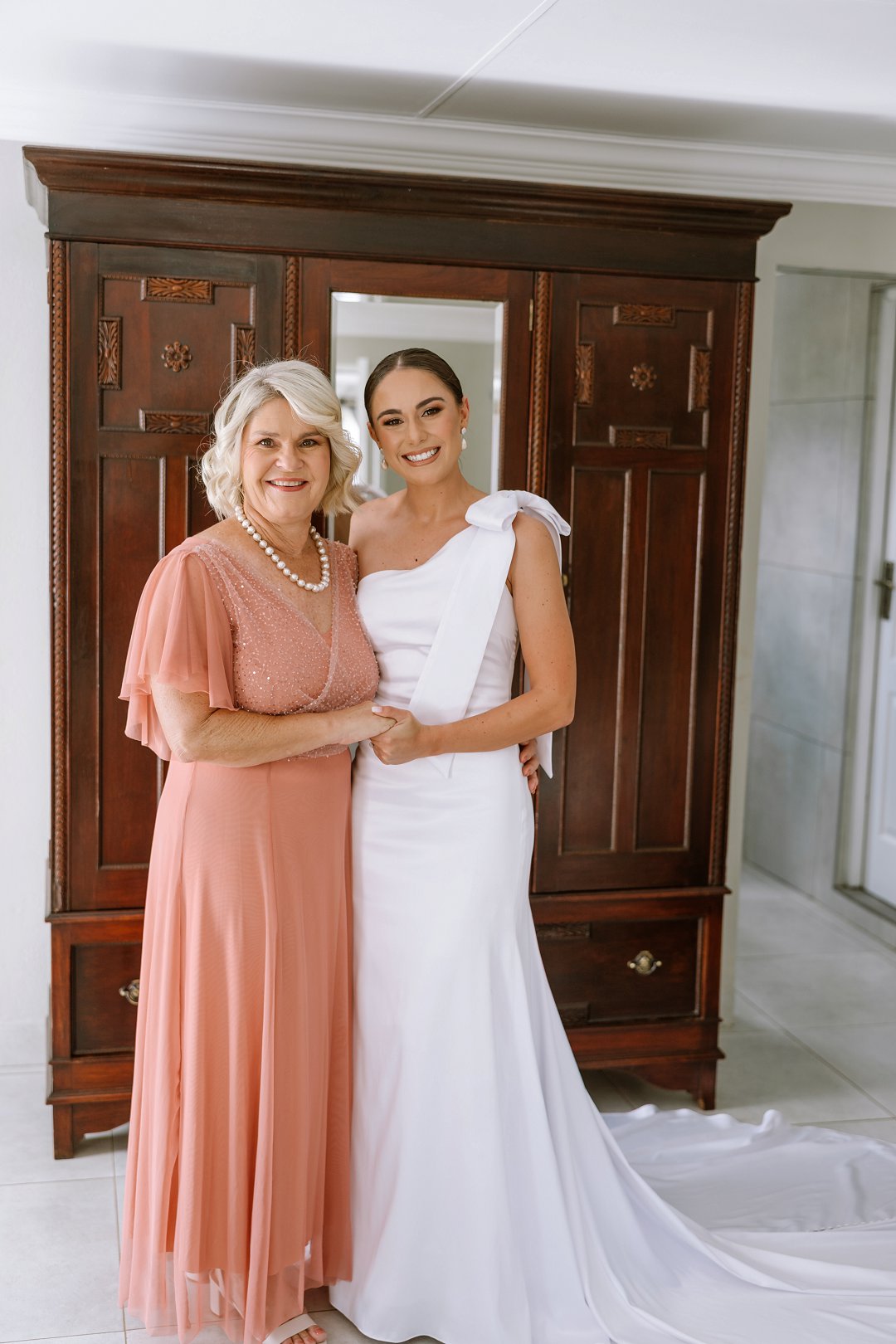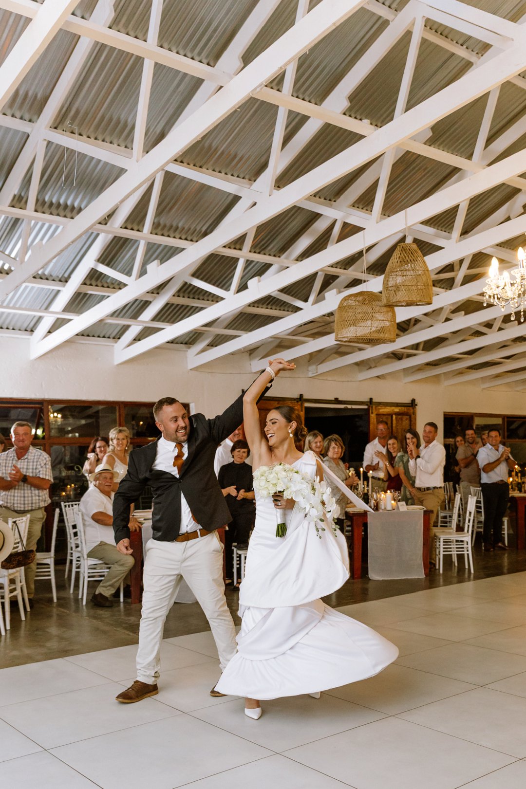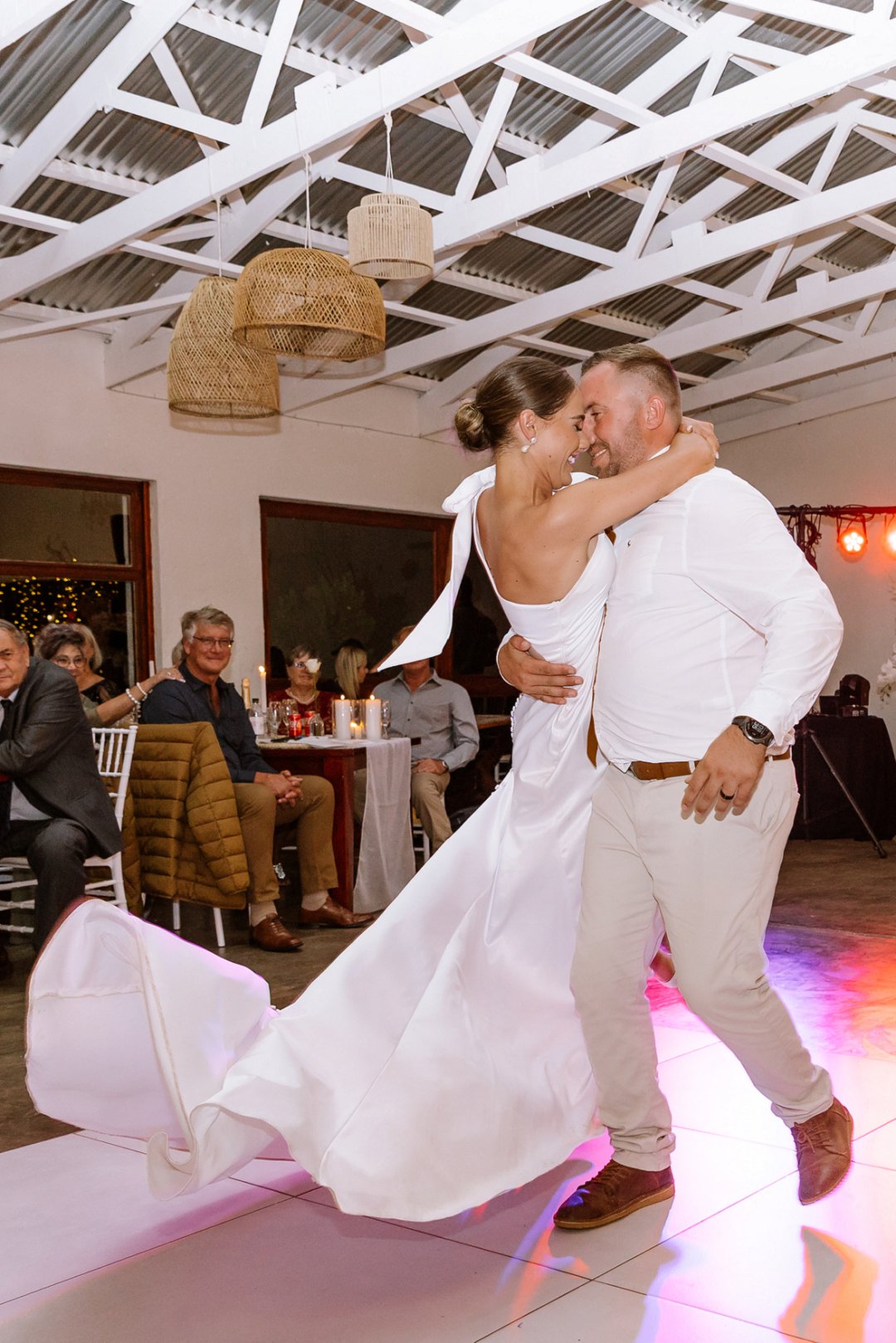 Natuurlik kom geen groot liefdesverhaal sonder ’n kinkel in die storielyn nie. Die middag voor die troue, toe ek die rok aantrek vir ’n laaste pas, het die ritssluiter heeltemal ingegee. Om 17:00 op ’n Vrydag het ek en my ma teruggehardloop dorp toe en deur een of ander wonderwerk ’n ontwerpswinkel oop gevind. Ons het dit net betyds reggemaak. Chaos? Ja. Maar ook ʼn oomblik wat ek nooit sal vergeet nie, ʼn herinnering dat liefde, soos die perfekte rok, soms ʼn bietjie inmekaarsteek verg.