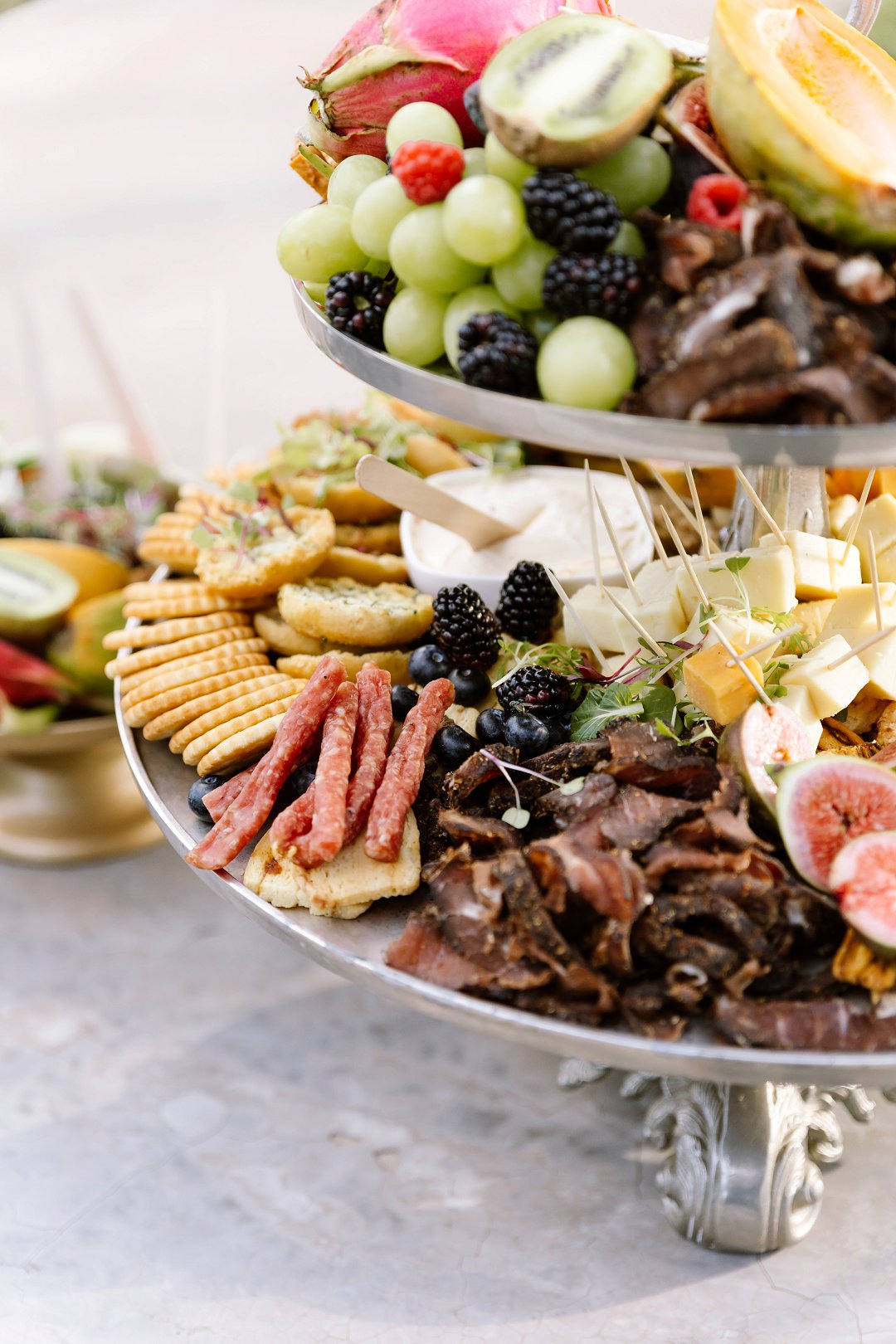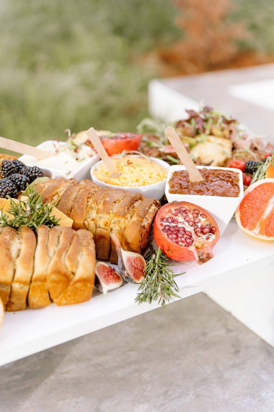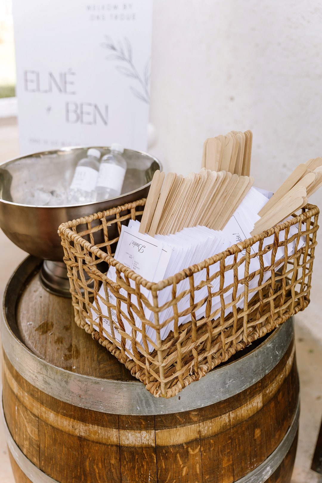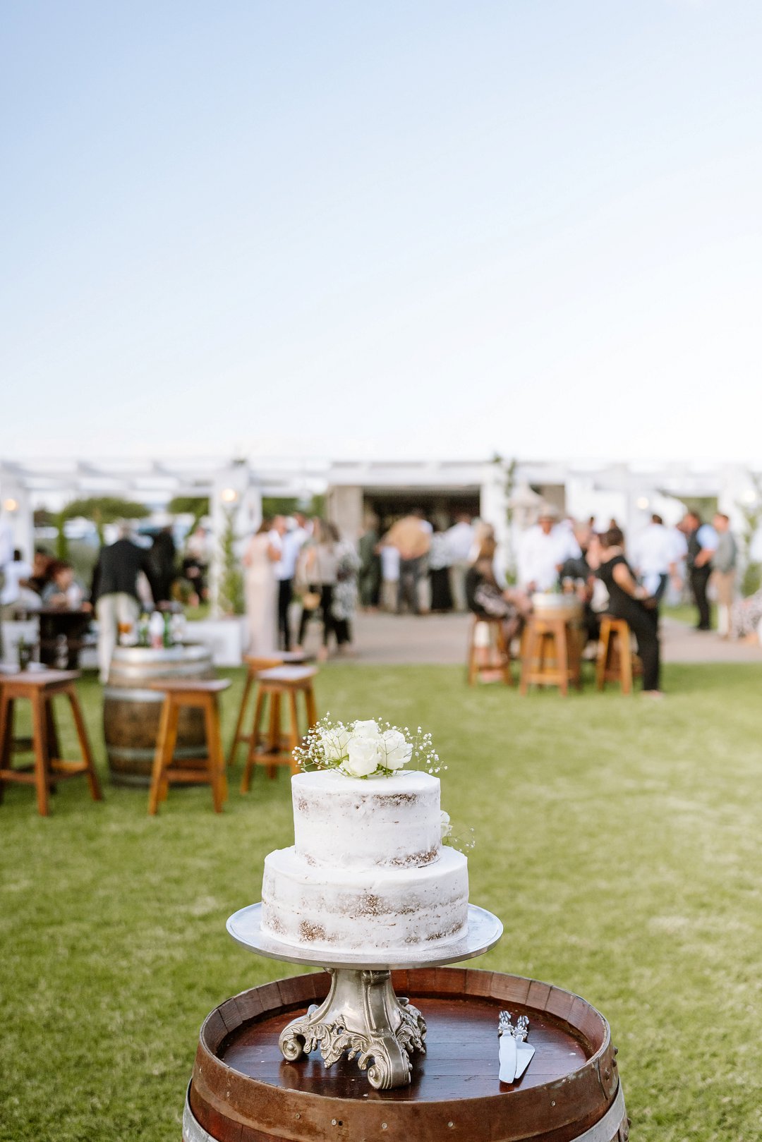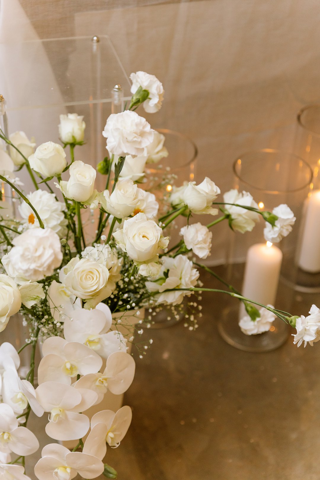 Die kleurskema was ’n huldeblyk aan die natuur, met skoon wit en vars groen as fokuspunte. Elné se visie was om ’n ruimte te skep wat vreedsaam, tydloos en onmiskenbaar hulle voel. Wit tafel linne en sagte wit kerse wat deur die aand geflikker het, het die toon vir ’n romantiese atmosfeer geskep. Agter die bruidstafel het feetjie liggies soos sterre geskitter, terwyl geweefde rottang lanterns wat van die plafon af gehang het, ’n subtiele natuurlike tekstuur bygevoeg het. In harmonie met die dekor het gaste in aardse kleure geklee gekom, wat verseker het dat die hele geselskap naatloos by die omgewing ingepas het.