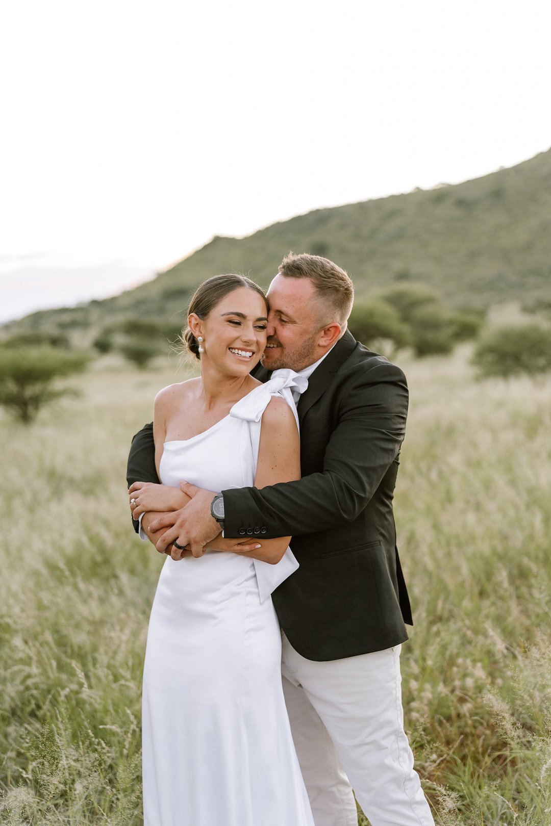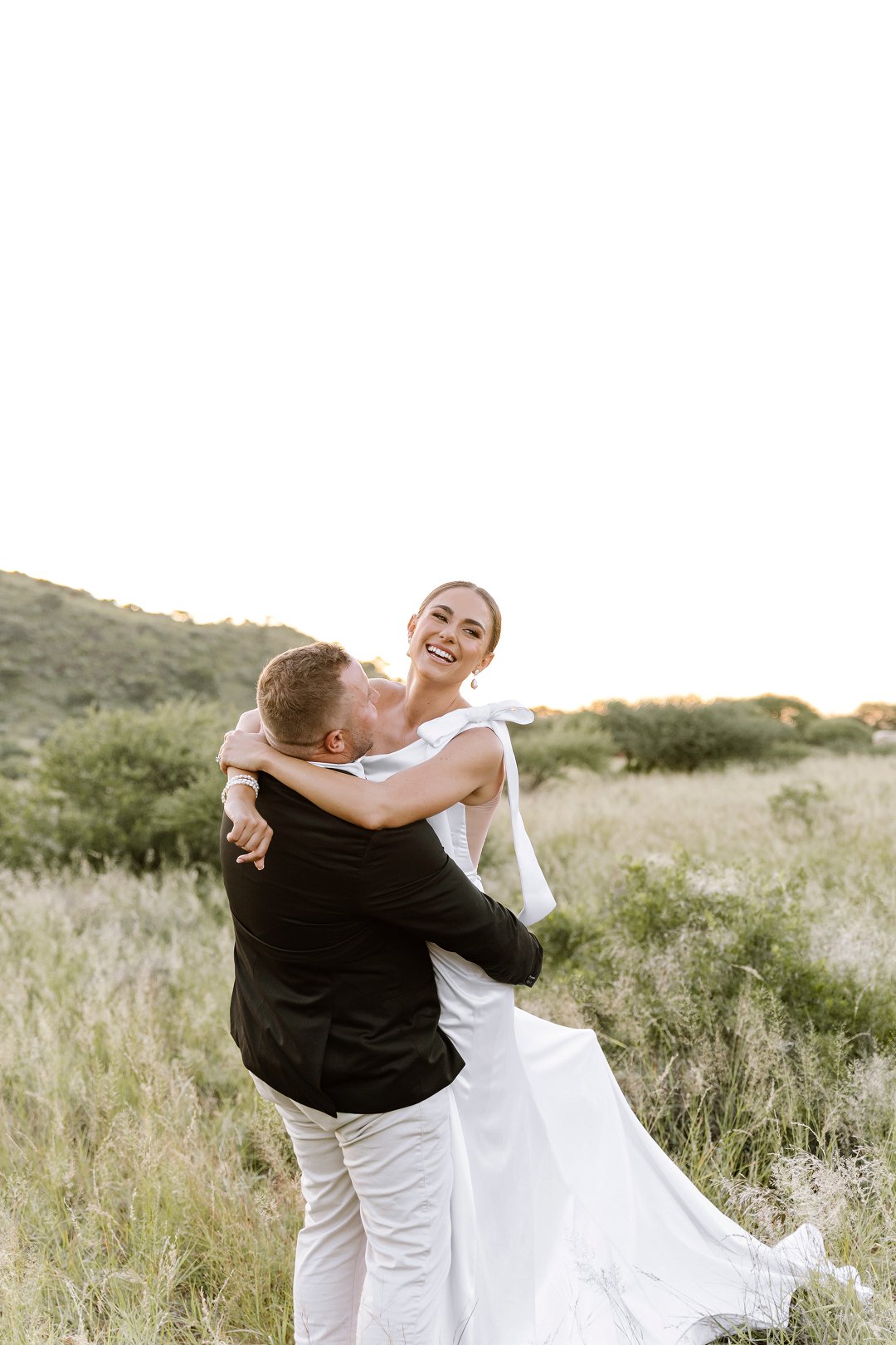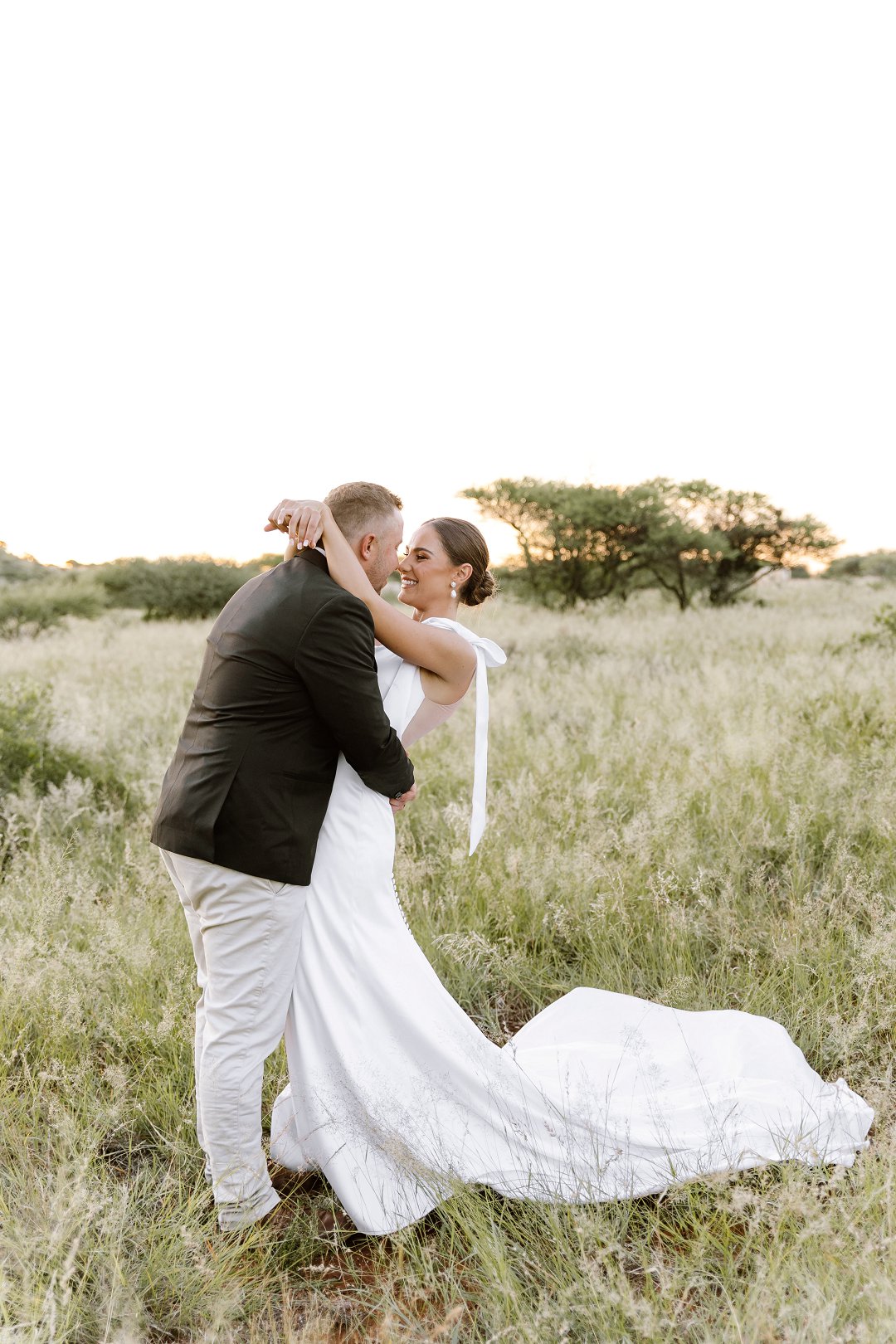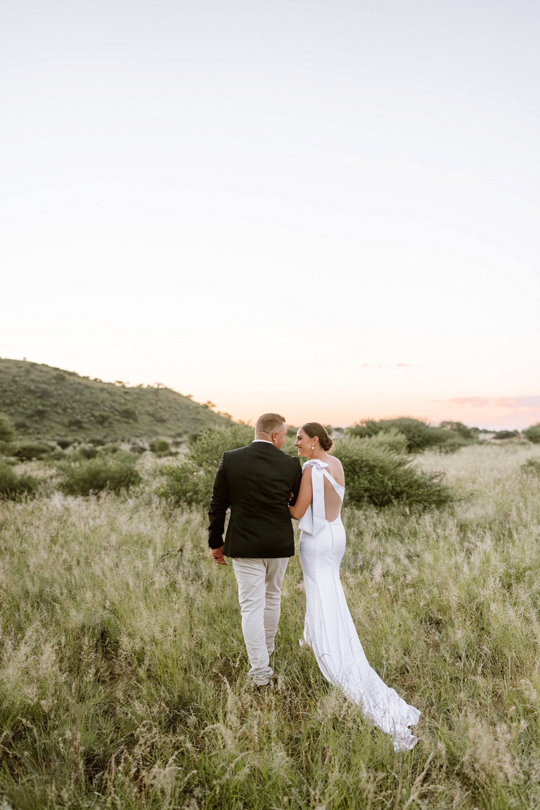 Rol af en geniet Ben en Elné se kalm en natuurlike troue in die Noord-Kaap.