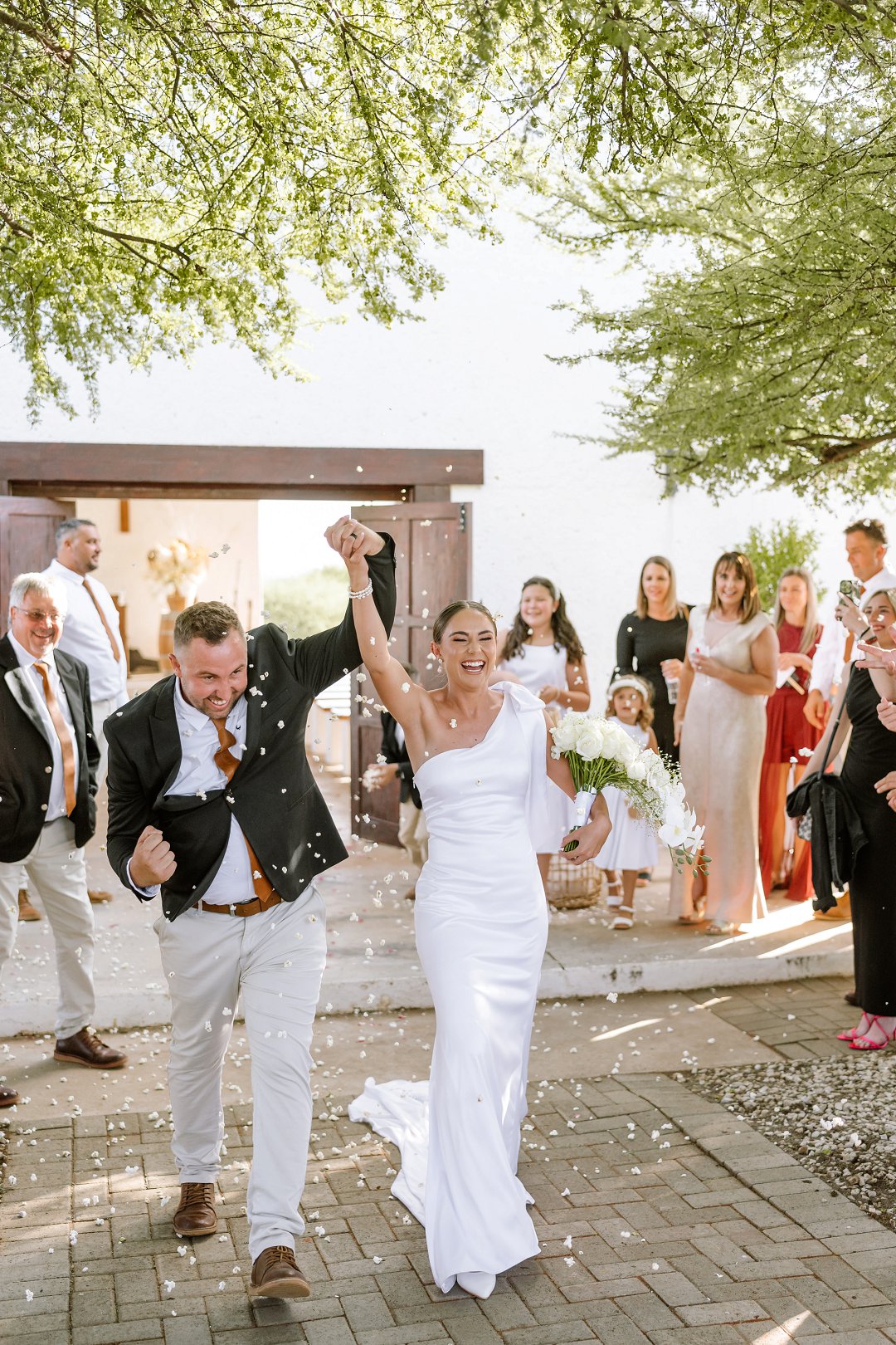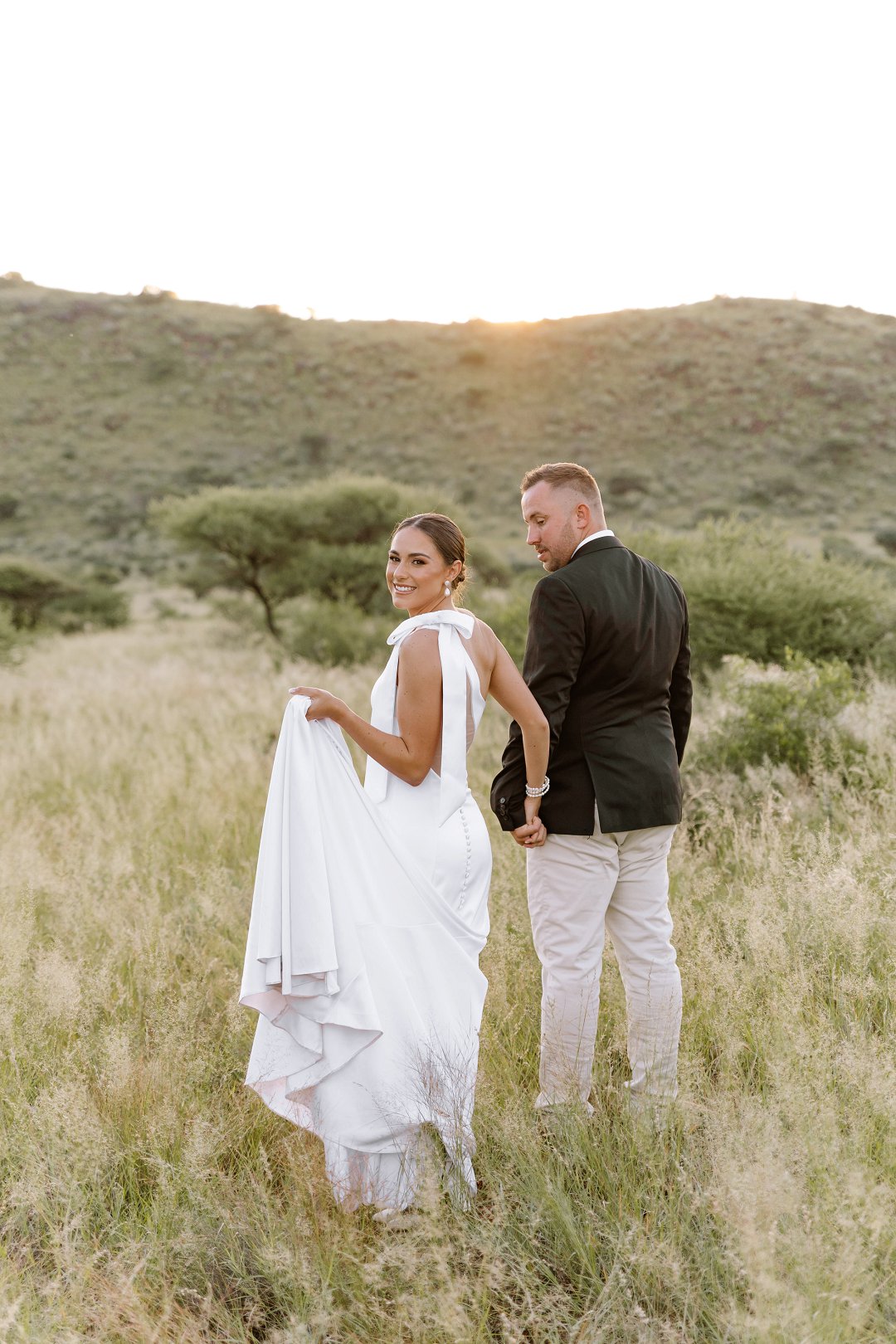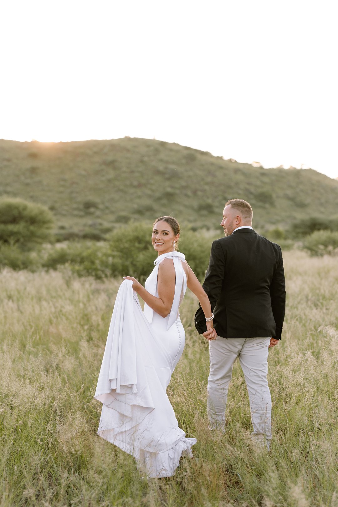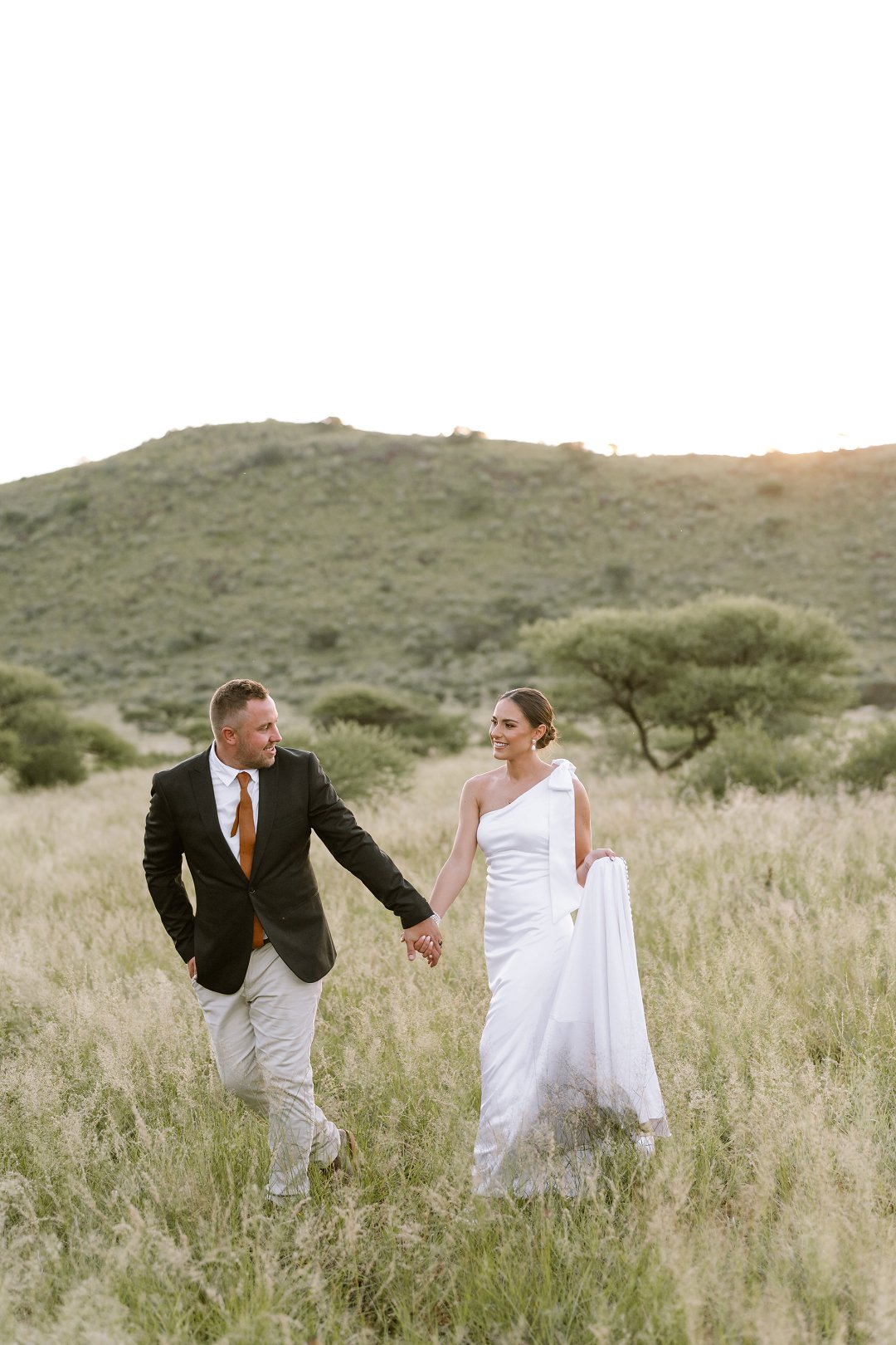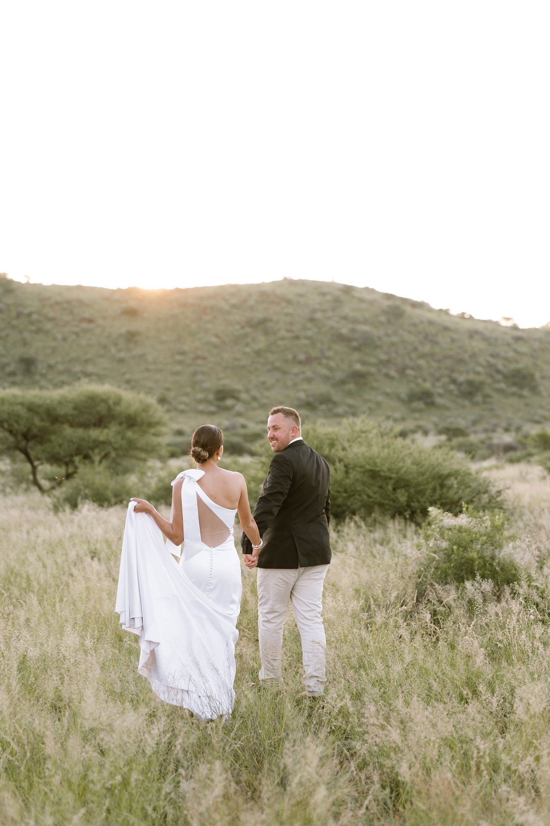Rol af en geniet Ben en Elné se kalm en natuurlike troue in die Noord-Kaap.