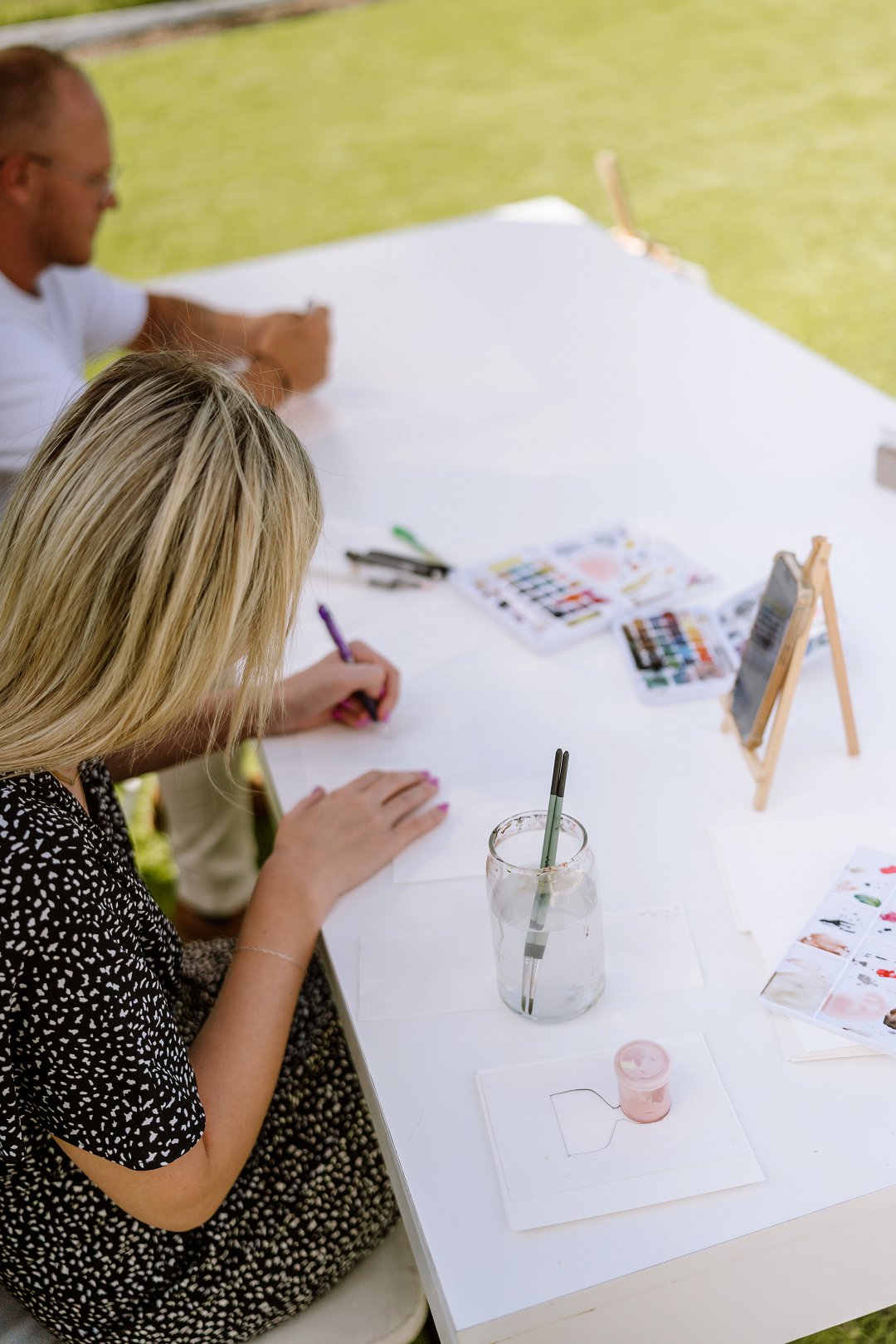 Met my kleurskema wou ek dit so natuurlik as moontlik hê. Groen en baie wit. Die gaste het ʼn versoek gehad dat hulle aardse kleure moet aanhê wat gaan inpas by die natuur. Vir die dekor het ek iets skoon, elegant en tydloos voorgestel, ʼn ruimte wat vreedsaam en vol liefde gevoel het. My hart was op alles wit gestel: wit tafellinne, wit blomme en sagte wit kerse wat saggies deur die aand geflikker het.