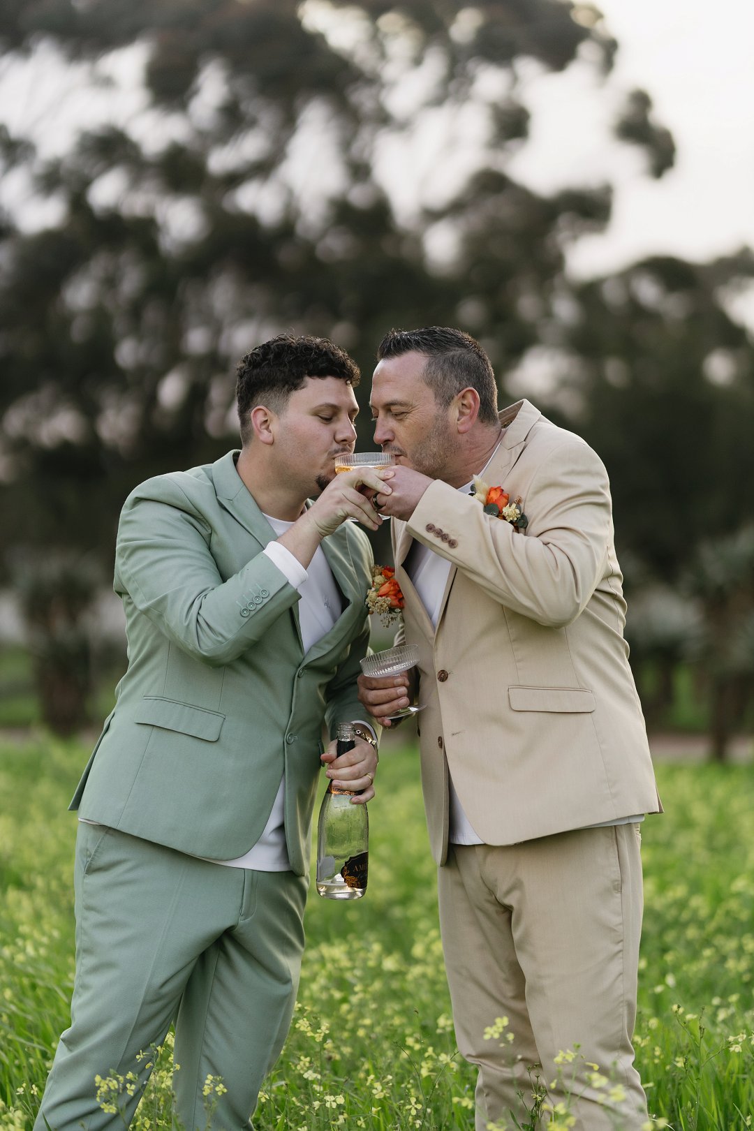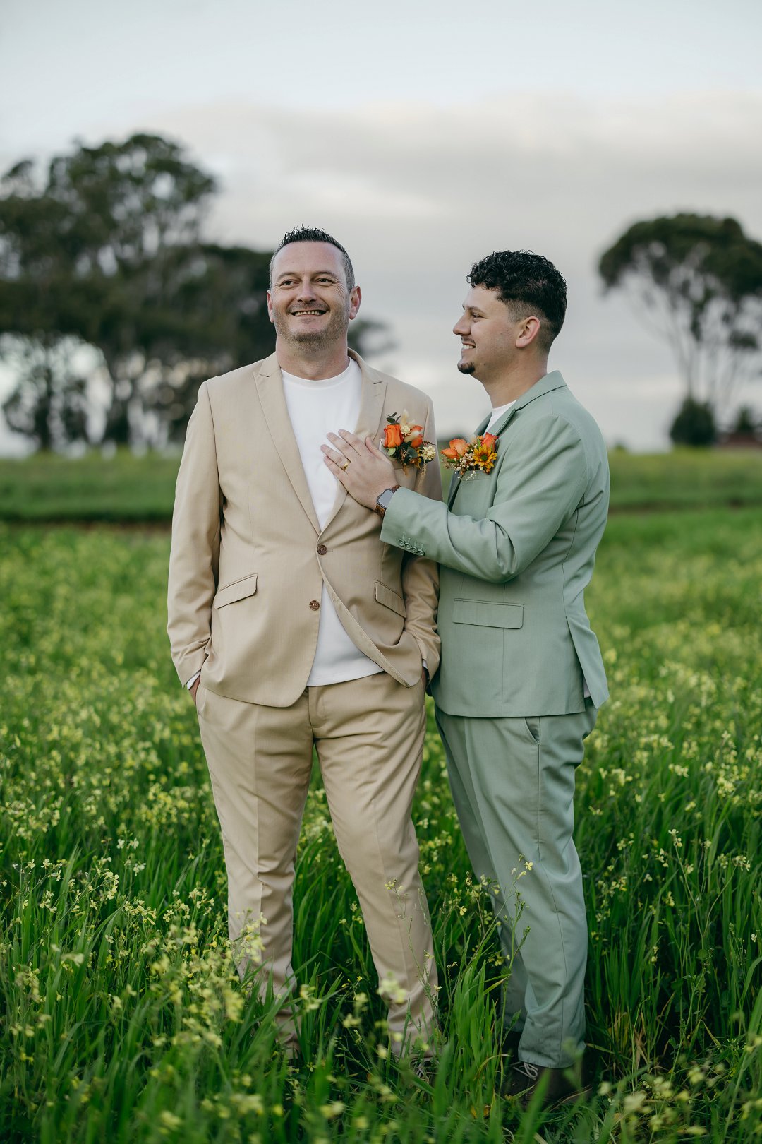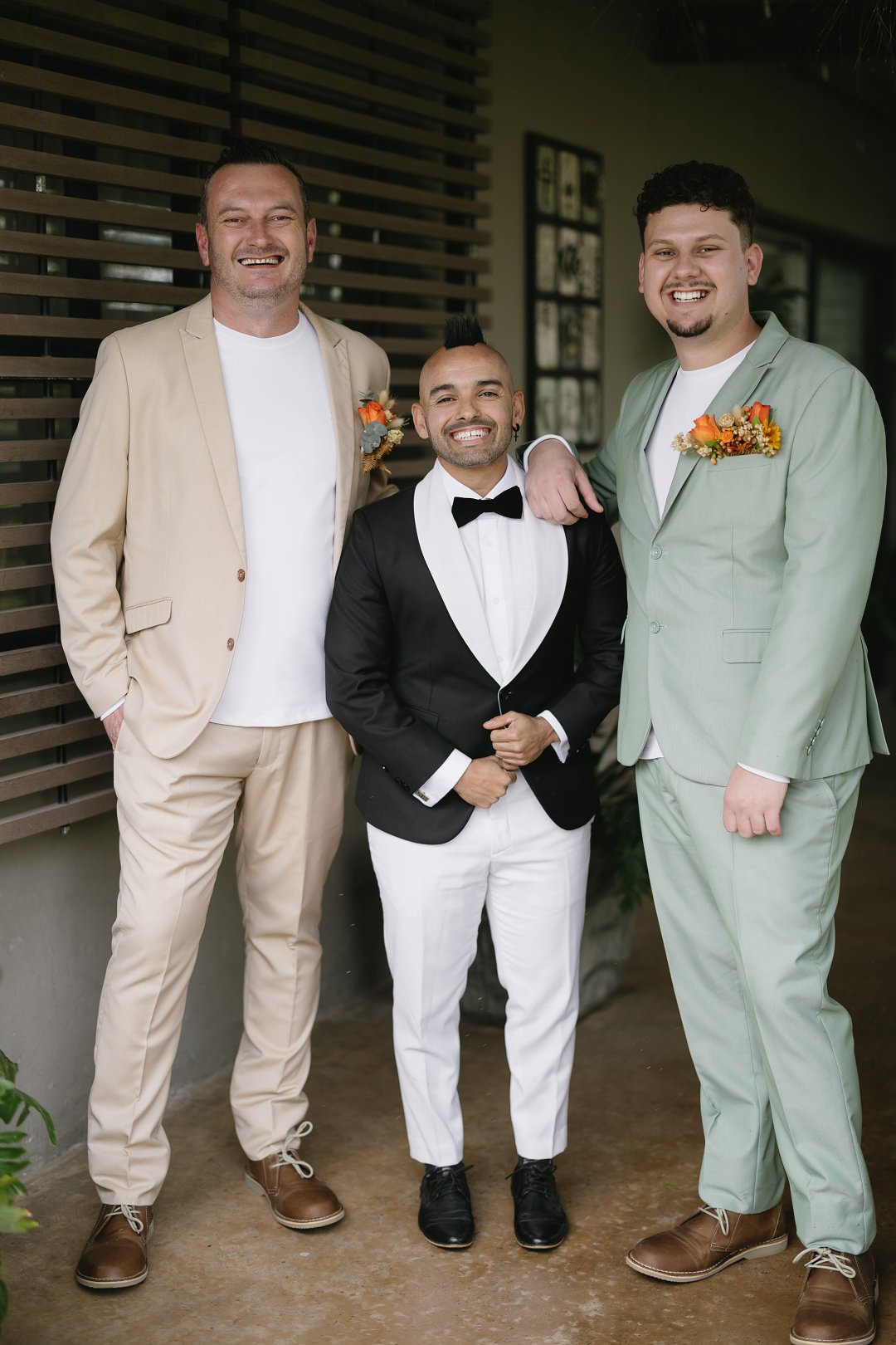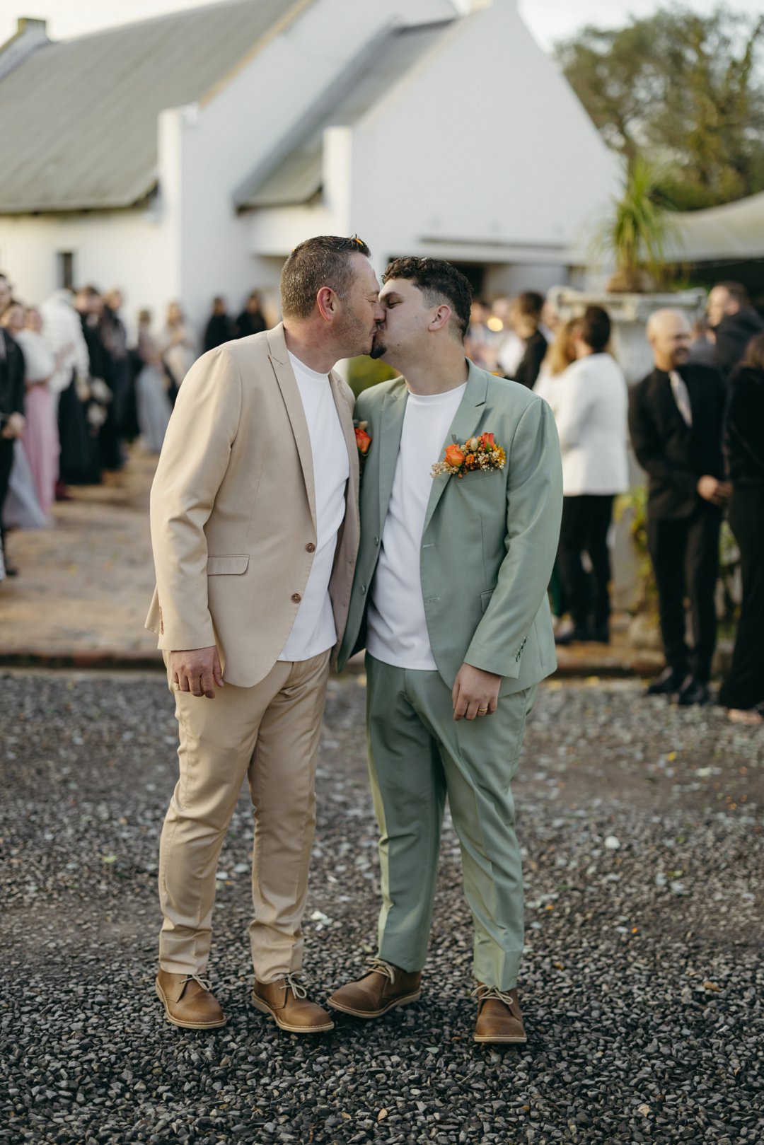 Wat hul uitrustings betref, het Petrus en Francois hul gaste uitgedaag met die tema “Out-do The Grooms”, terwyl hulle self pakke in Sage Green en Stone skakerings gedra het.