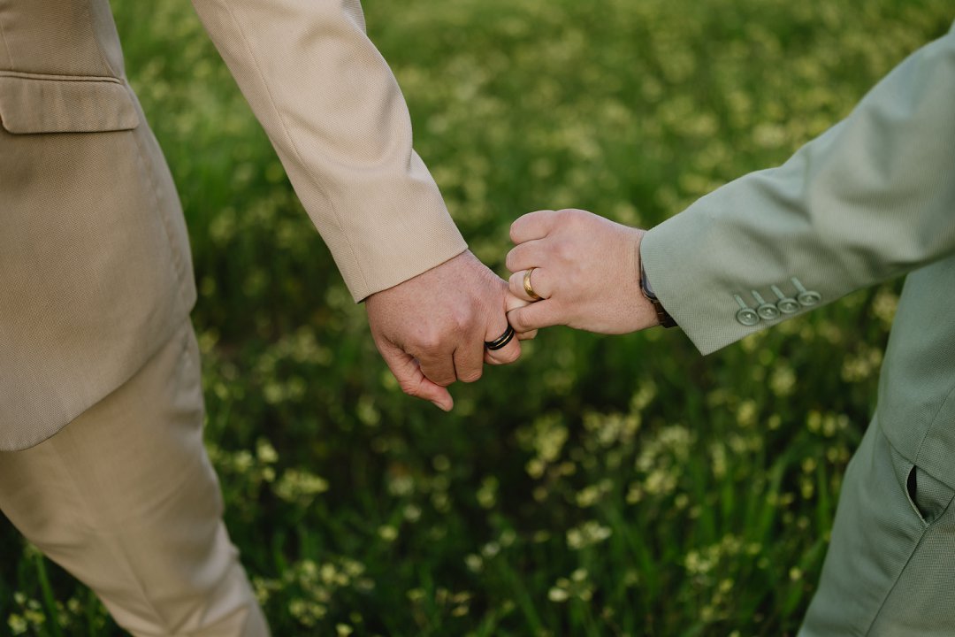 Ons het snaaks genoeg, toe ons begin praat oor trou, een aand saam in die bed gelê en na ringe gekyk. Elkeen van ons het ons eie unieke styl en ons het toe saam op ons ringe besluit. Beide ringe het hout in, wat vir ons die saamwees as paartjie simboliseer en ons herinner dat ons mekaar se anker is en mekaar regop en sterk hou, net soos die wortels van ’n boom.