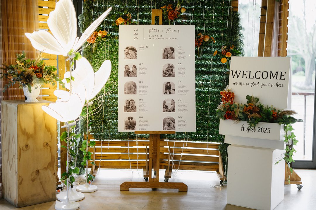 Petrus en Francois se troue was meer as net ’n seremonie, dit was ’n opregte samesyn van vriende en familie. Elke detail, van die wisselende hoogtes van die kerse tot die speelse, interaktiewe oomblikke, het hul reis saam én hul nuwe begin gevier.