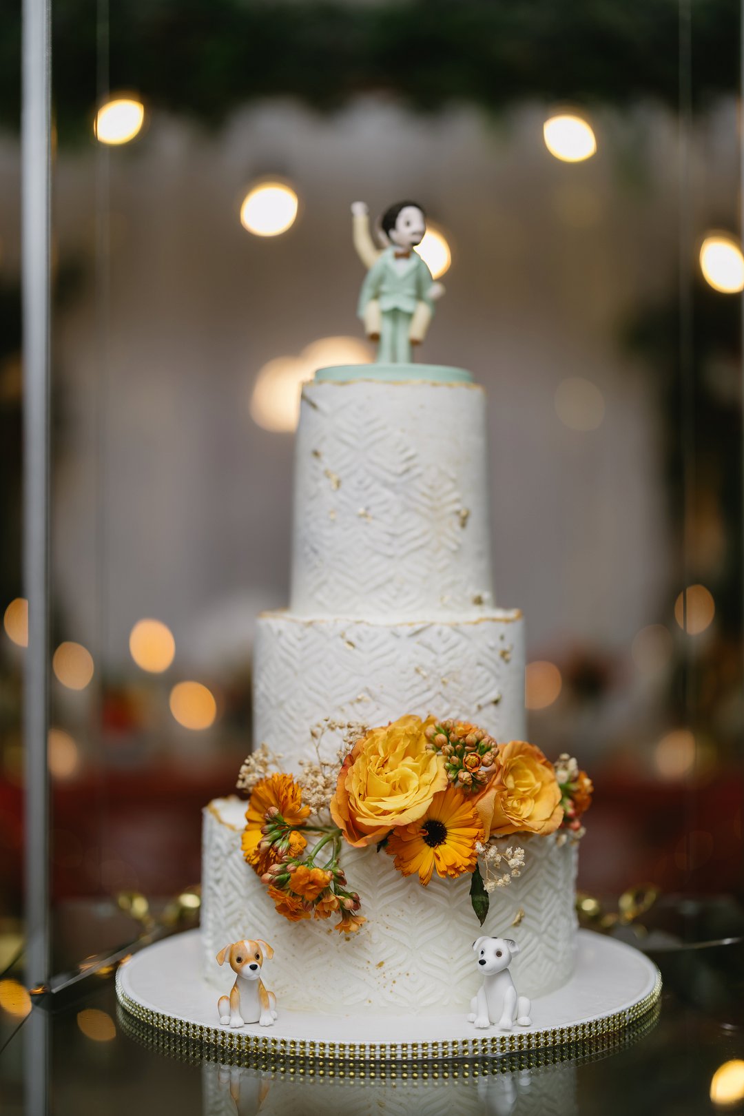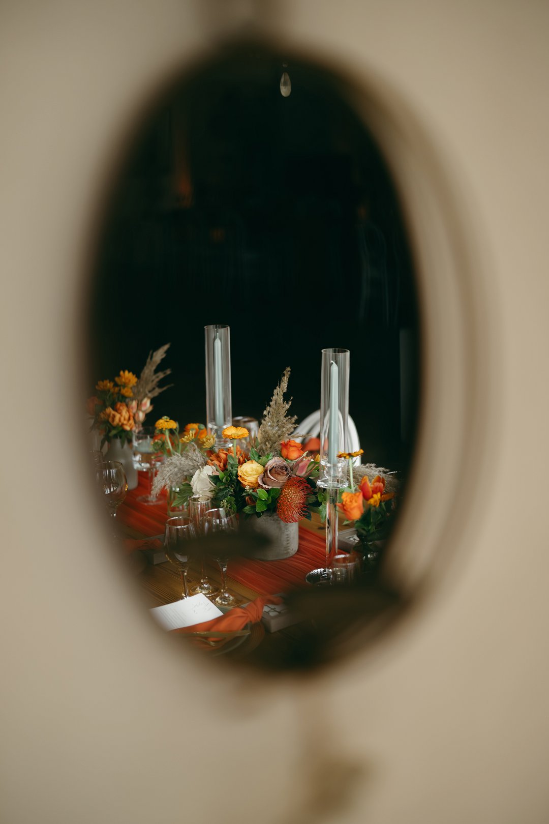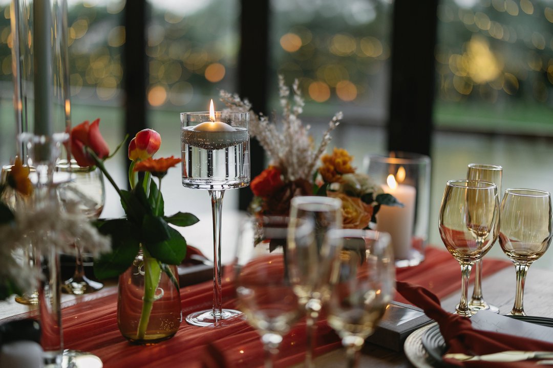Die klein, fyn besonderhede – die hoogte van die kerse, die hoeveelheid lig, selfs die hoogte van die blomrangskikkings – is sorgvuldig beplan om ’n gevoel van intimiteit te skep sonder om die samehorigheid van die gaste te belemmer. Jy moes voel jy is by ’n troue, maar terselfdertyd by ’n gemaklike, liefdevolle kuier saam jou beste vriende.