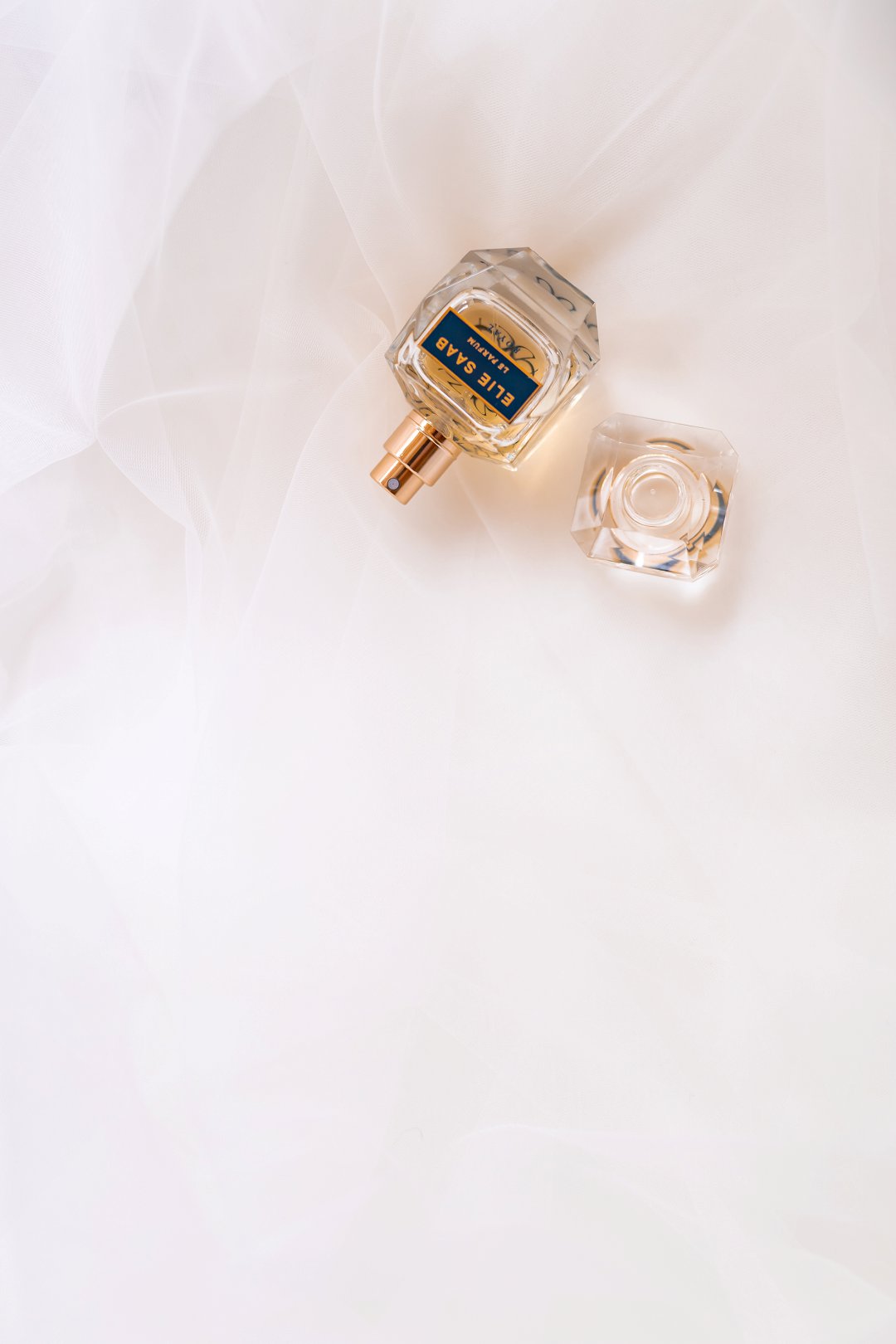 Materiaal: Geborduurde blomlace, Chantilly-lace, lyngewerk, glinsterende tulle en tulle.
