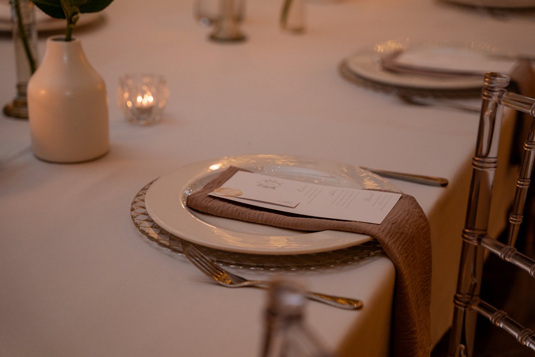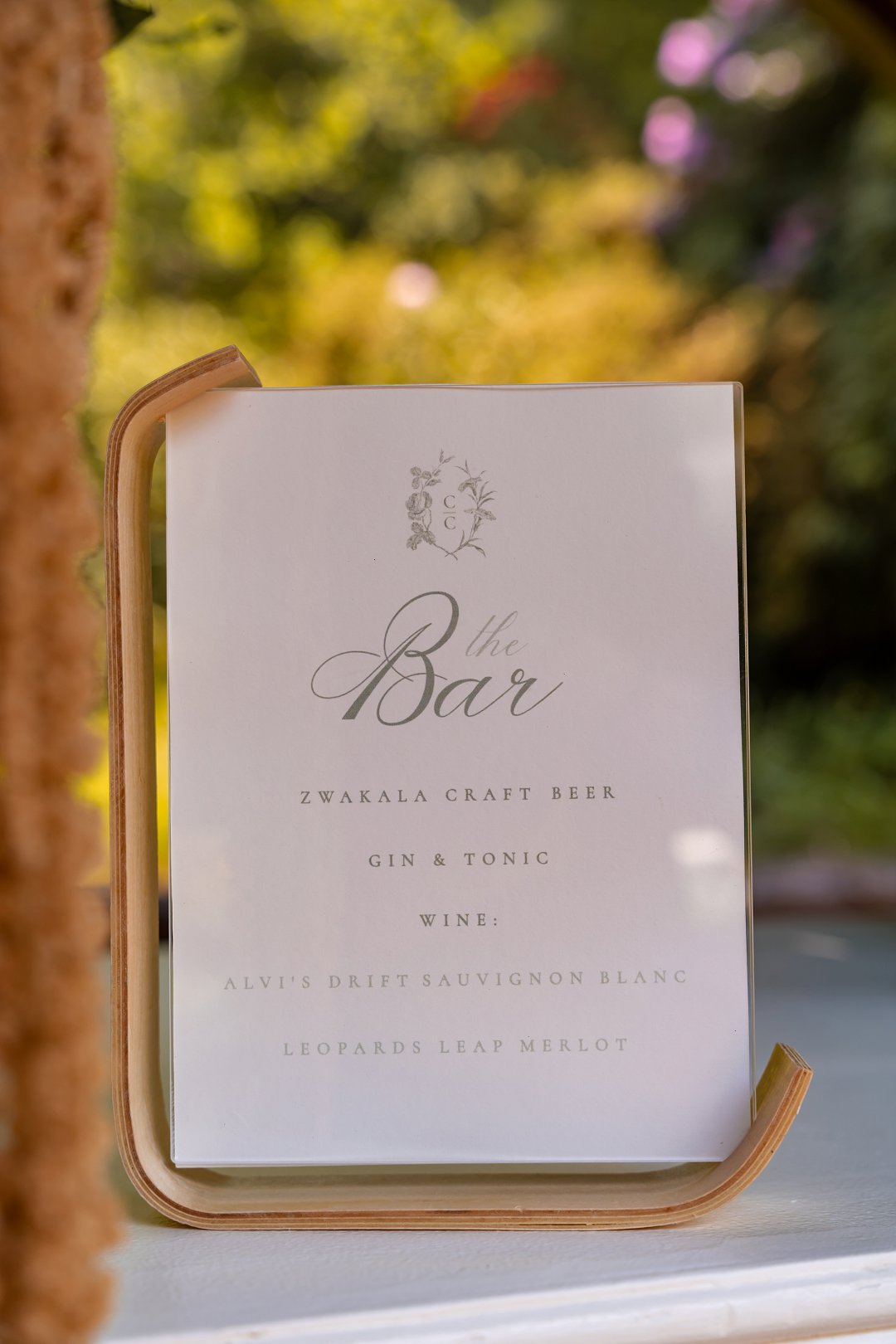 Ek het iets klassiek en elegant gewens, met net ’n bietjie boho. Die blomme was hoofsaaklik wit rose en gyp en die algehele kleurskema vir die dekor het wit, nude en ’n bietjie saliegroen ingesluit. Die venue is in ’n pragtige, groot tuin met ryk, weelderige groen en die wit blomme het daarteen so pragtig uitgestaan.