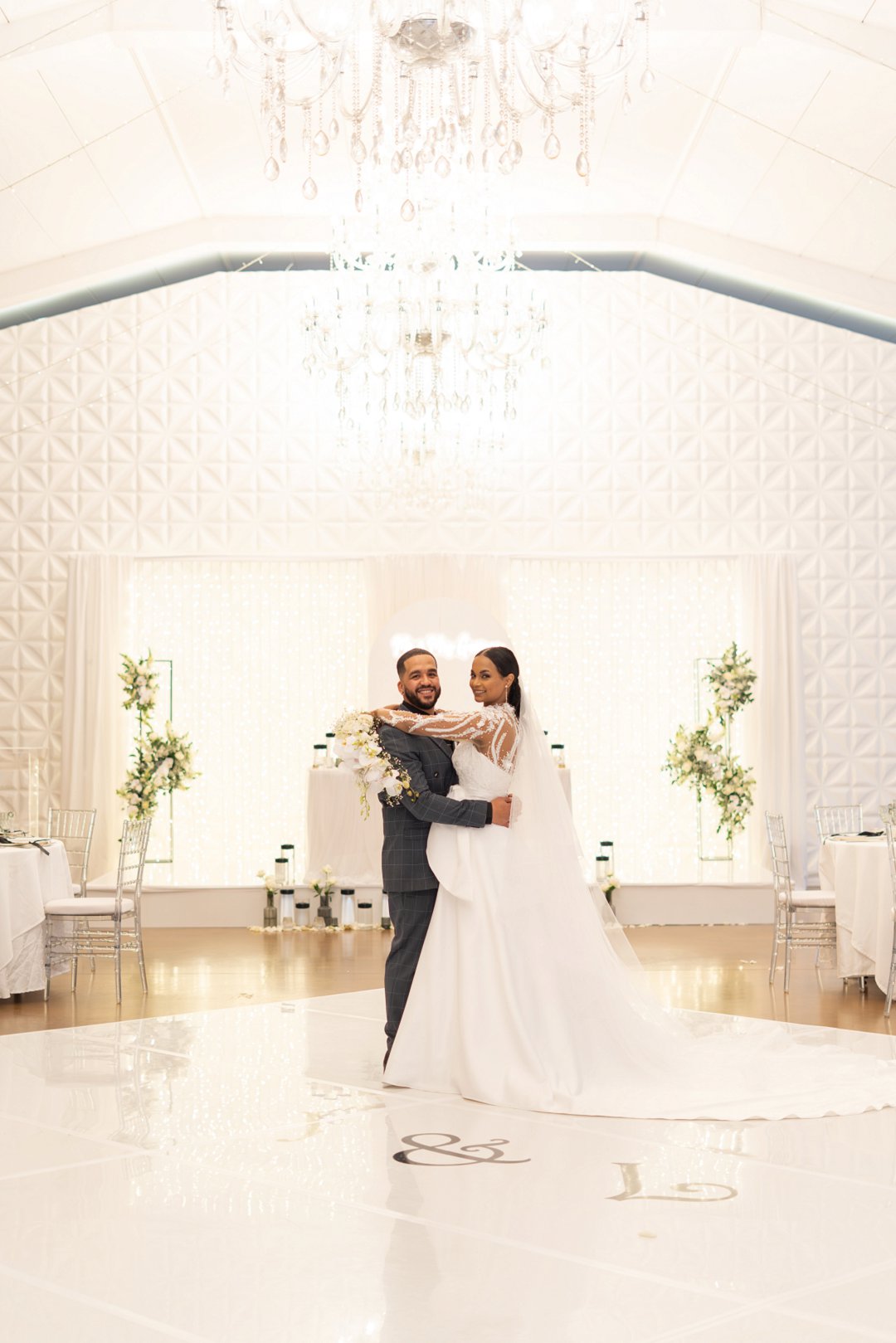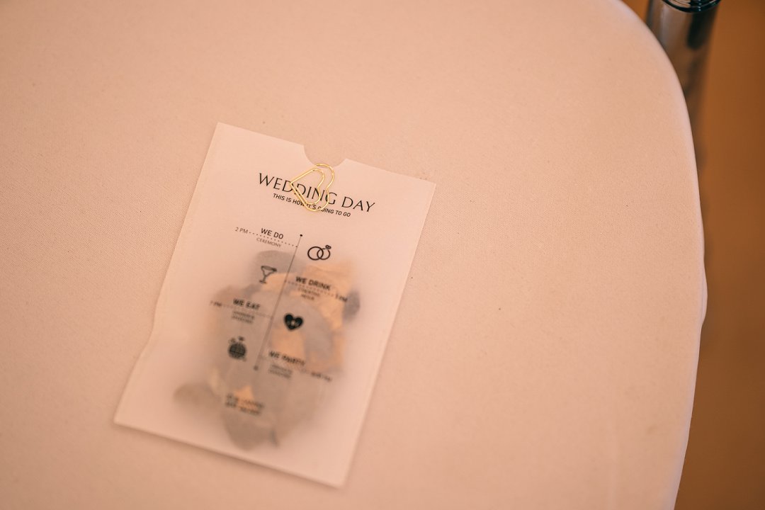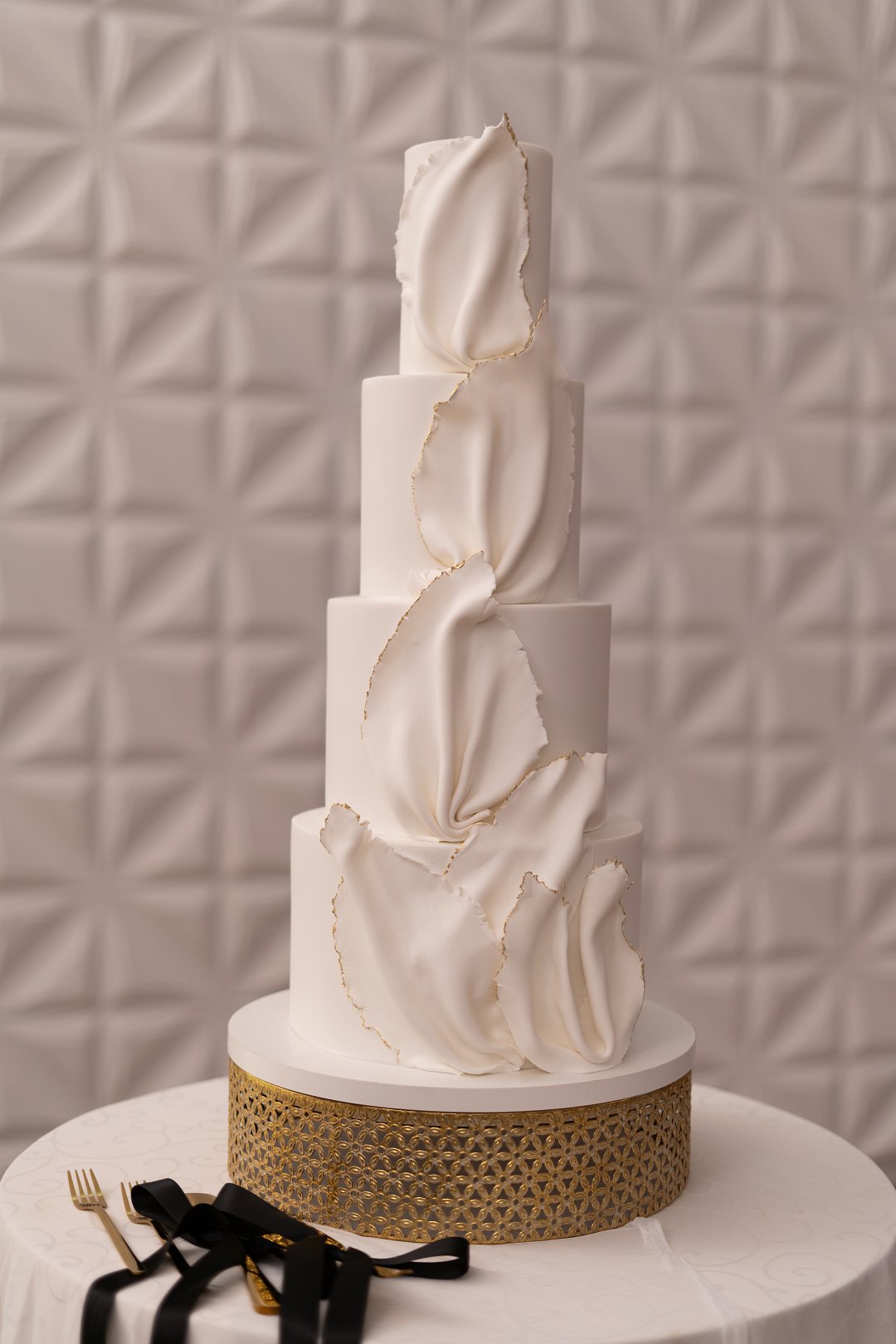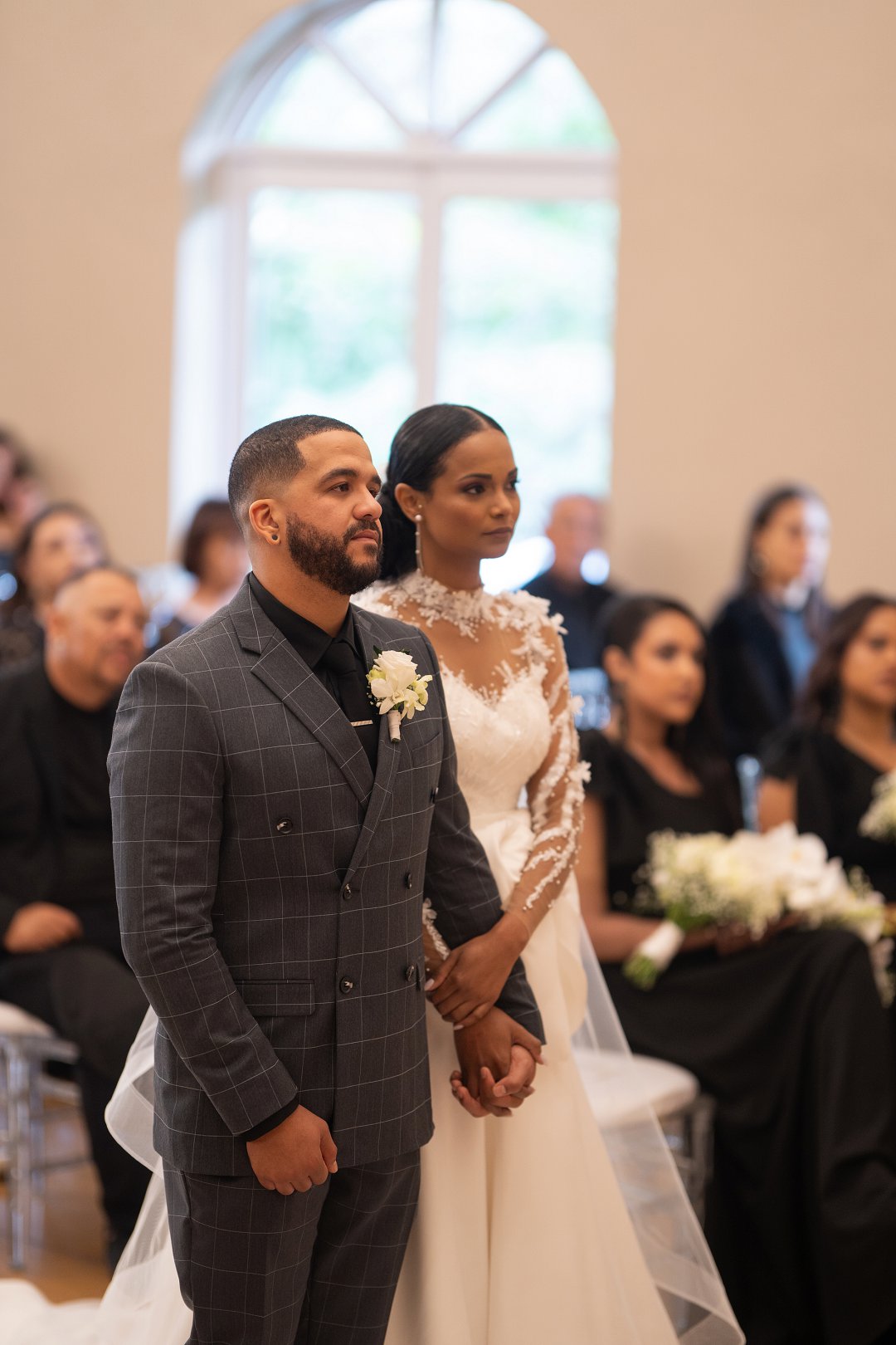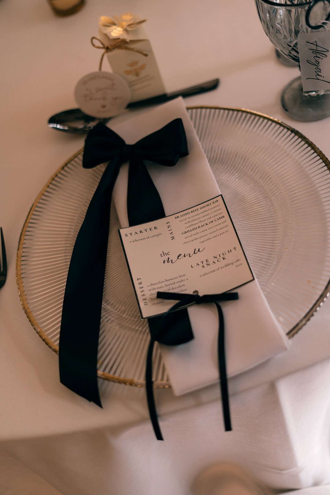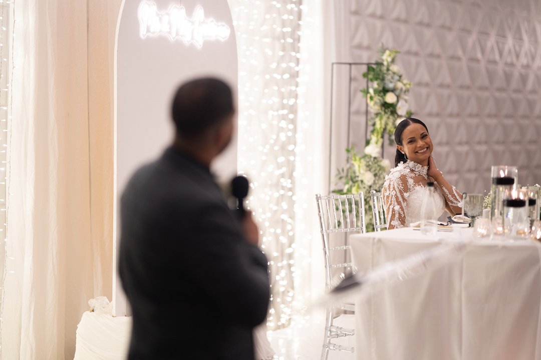 Die dekor het ’n minimalistiese swart-en-wit palet gevolg. Vars wit blomme en tafel elemente het ’n skoon, kontemporêre gevoel geskep, terwyl swart aksente ’n stylvolle kontras gebied het. Elke detail is doelbewus gekies om ’n rustige, gesofistikeerde atmosfeer te skep waar liefde die middelpunt kon wees.