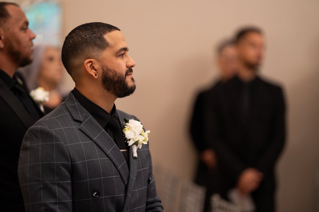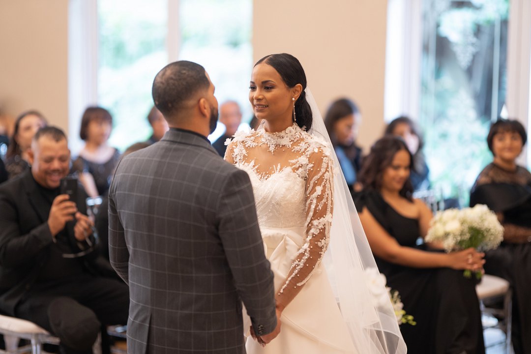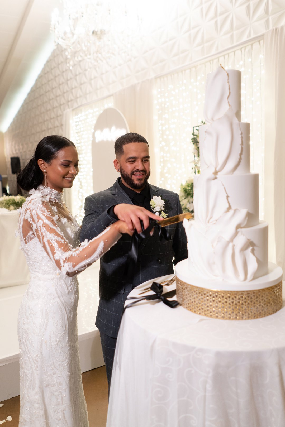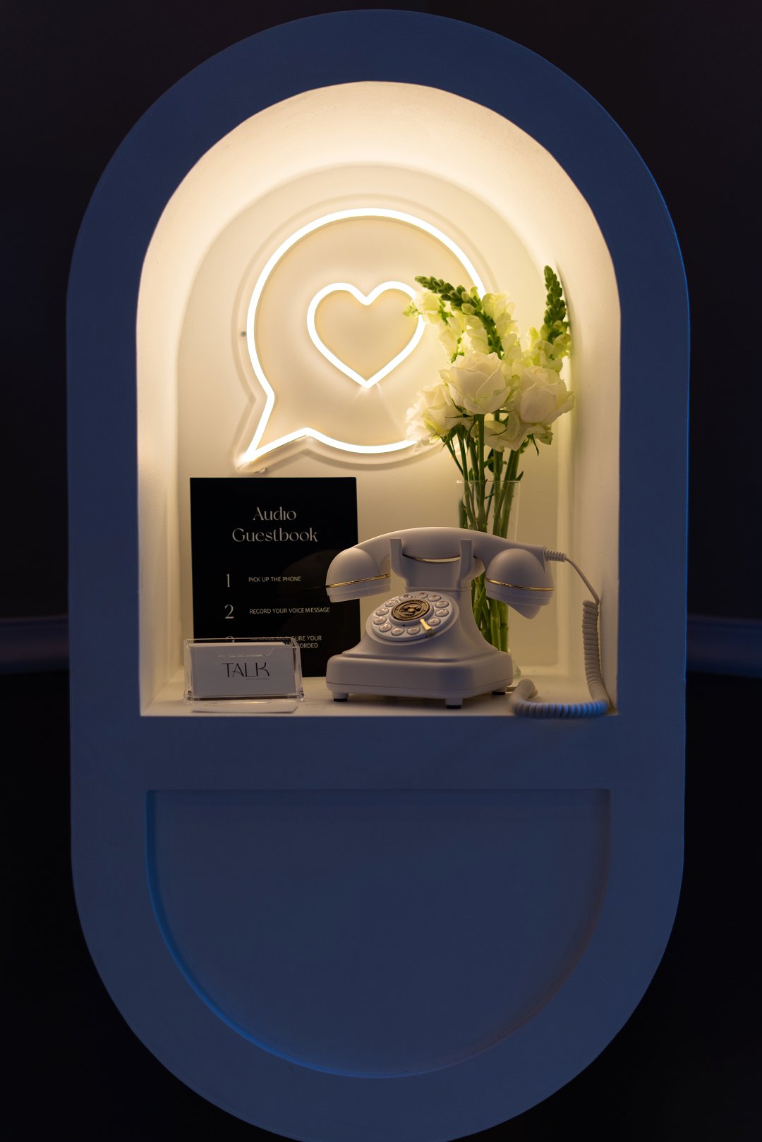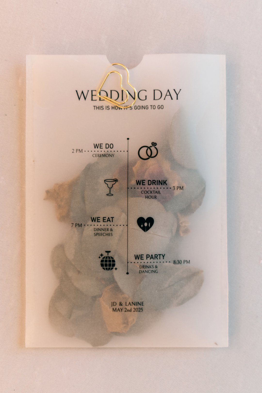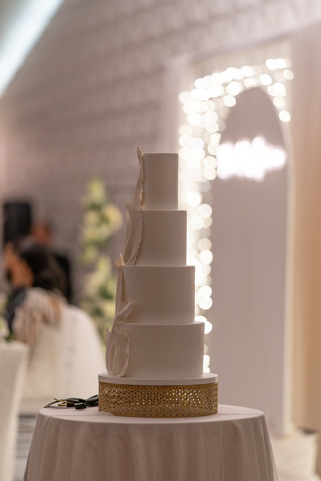 Die dekor het ’n minimalistiese swart-en-wit palet gevolg. Vars wit blomme en tafel elemente het ’n skoon, kontemporêre gevoel geskep, terwyl swart aksente ’n stylvolle kontras gebied het. Elke detail is doelbewus gekies om ’n rustige, gesofistikeerde atmosfeer te skep waar liefde die middelpunt kon wees.