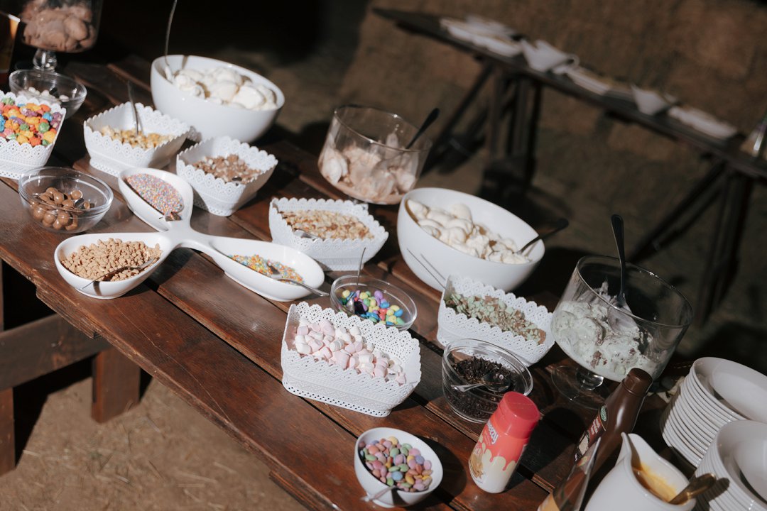 Ons het gegaan vir ʼn rustieke, plaas, plat op die aarde tussen die skape en stof gevoel! Ons onthaal was letterlik onder die Klein Karoo sterre en langs die skaap kraal in die stof. Die kleur skema was wit, sage groen, bruin en goud, alles met die idee om so natuurlik en plaas as moontlik te voorkom.