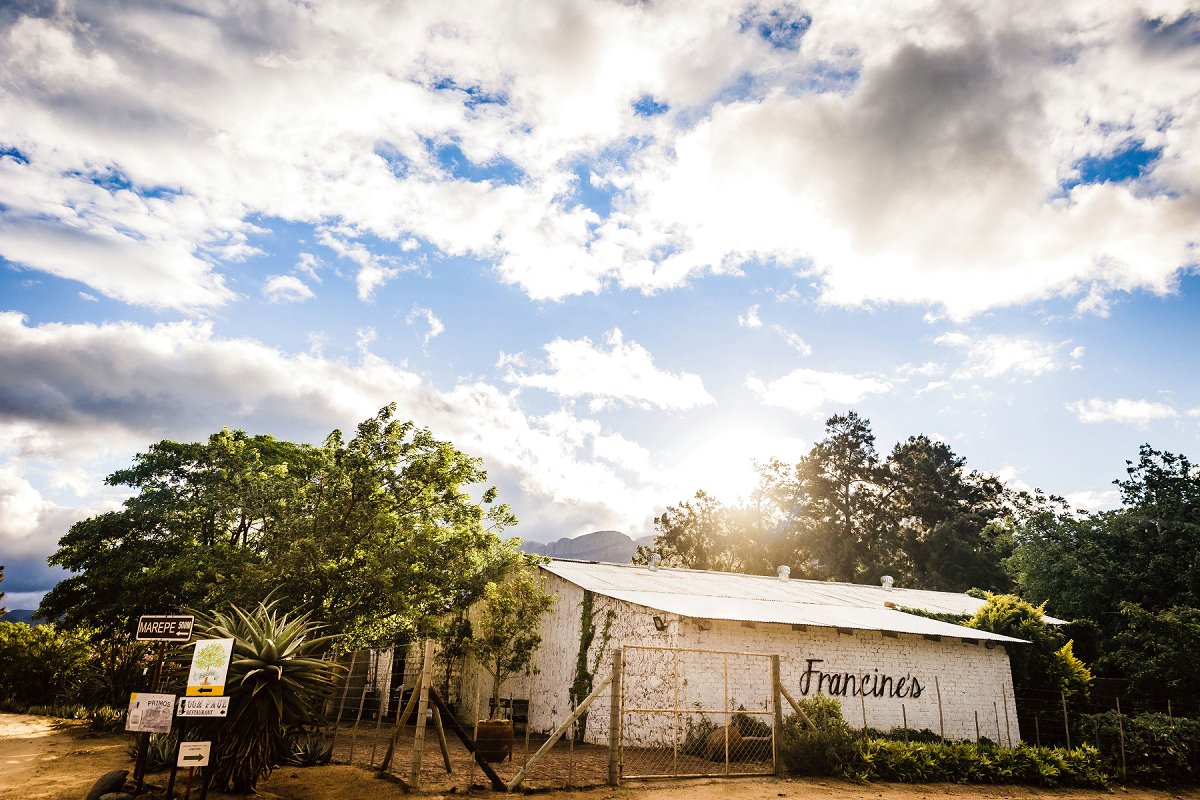 Francine’s Venue & Farmhouse is geleë in die pragtige Laeveldstreek van Limpopo. Dit is naby die dorpie Hoedspruit, ʼn buurman van die Nasionale Krugerwildtuin, ongeveer 400km vanaf Pretoria en Johannesburg. Die venue is op ʼn werkende sitrusplaas met die geur van lemoene en pomelo’s wat vars in die lug hang. Hier vorm die majestueuse Drakensberg asook die bekende Blyde Canyon, die asemrowende agtergrond van jou troue. ʼn Ou tabakstoor wat uit die vorige eeu dateer is omskep tot ʼn prentjiemooi onthaal-fasiliteit en dit alles vorm die ideale agtergrond vir die mees onvergeetlike foto’s.