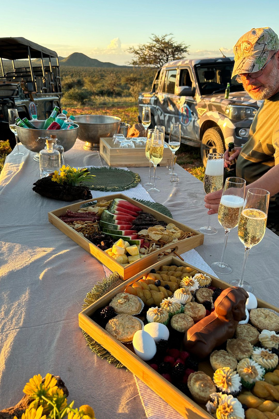 Die trou pakkette sluit spesiale ervaringe in soos wildrit-sundowners, kleiduifskiet en tradisionele Kalahari-braaivure. ʼn Romantiese sundowner-rit vir die bruidspaar op hul eenjarige huweliksherdenking is deel van die ervaring.