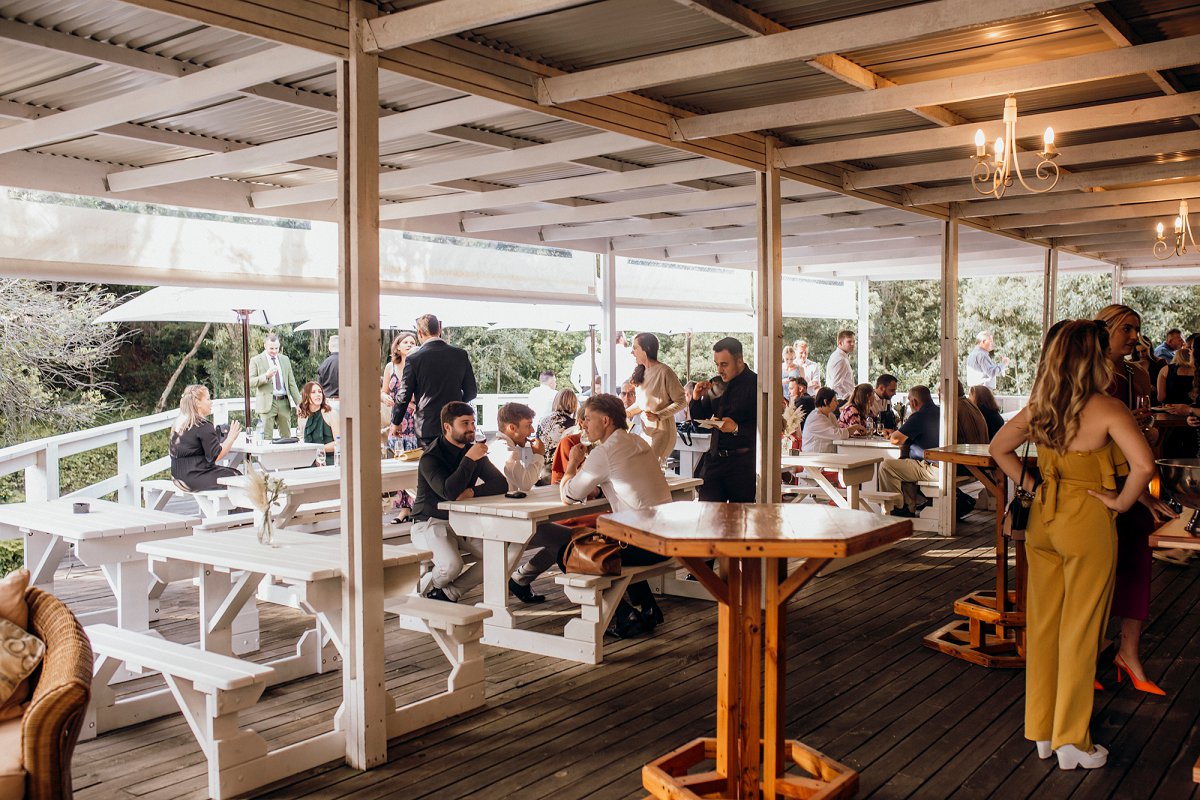 Terwyl jy jou troufoto’s laat neem, word jou gaste genooi om ʼn drankie of twee te drink in die pragtige voordrankies area. Die kroeg is op die perseel, en die dek kyk uit oor die pragtige woud en kloof.